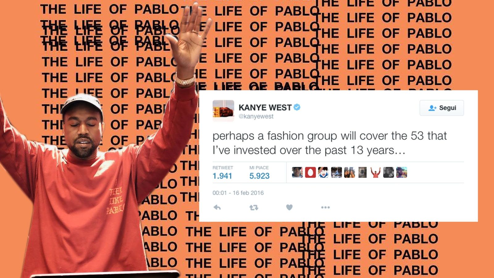Recentemente Kanye ha pubblicato un tweet che ha scioccato parecchi e ha fatto sorgere diverse domande, affermando di avere un debito personale di 53 milioni. TMZ Reports ha affermato che ovviamente Kanye ha speso un sacco di soldi per promuovere se stesso, ma non è assolutamente in debito di 53 milioni, anzi le fonti del sito ammettono che quella cifra sarebbe la quantità di denaro spesa da Kanye per le sue tre stagioni Yeezy. Il rapper ha poi twittato che miliardari e “hedge fund guys” lo hanno contattato per investire e promuovere i suoi progetti. E’ stato inoltre riferito dallo stesso Kanye che non ha ottenuto alcun profitto dalla creazione della prima collaborazione con Nike, perché aveva finanziato lui stesso il progetto.