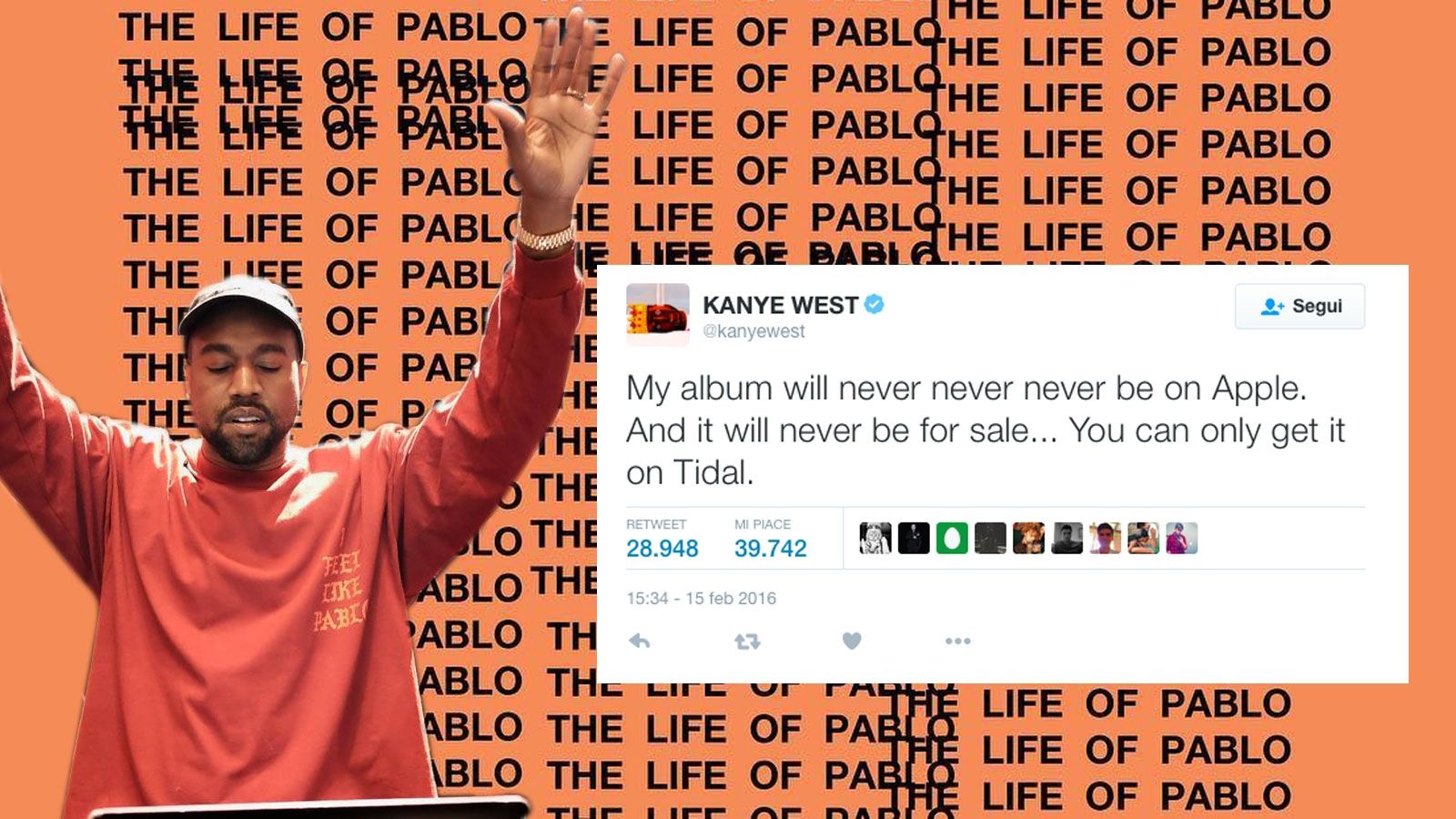 Così come ha implorato il fondatore di Facebook di investire nelle sue idee, Kanye ha supplicato anche i fan che volevano ascoltare il nuovo album di iscriversi alla piattaforma Tidal - l’unico servizio musicale dove potete ascoltare e scaricare The Life Of Pablo. Dopo qualche ora dalla richiesta di Kanye via Twitter, Tidal è diventata la number one app scaricata in US. Ricordiamo che Tidal è un servizio di proprietà di Jay-z che in precedenza aveva avuto anche l’esclusiva di ANTI, il nuovo album di Rihanna.