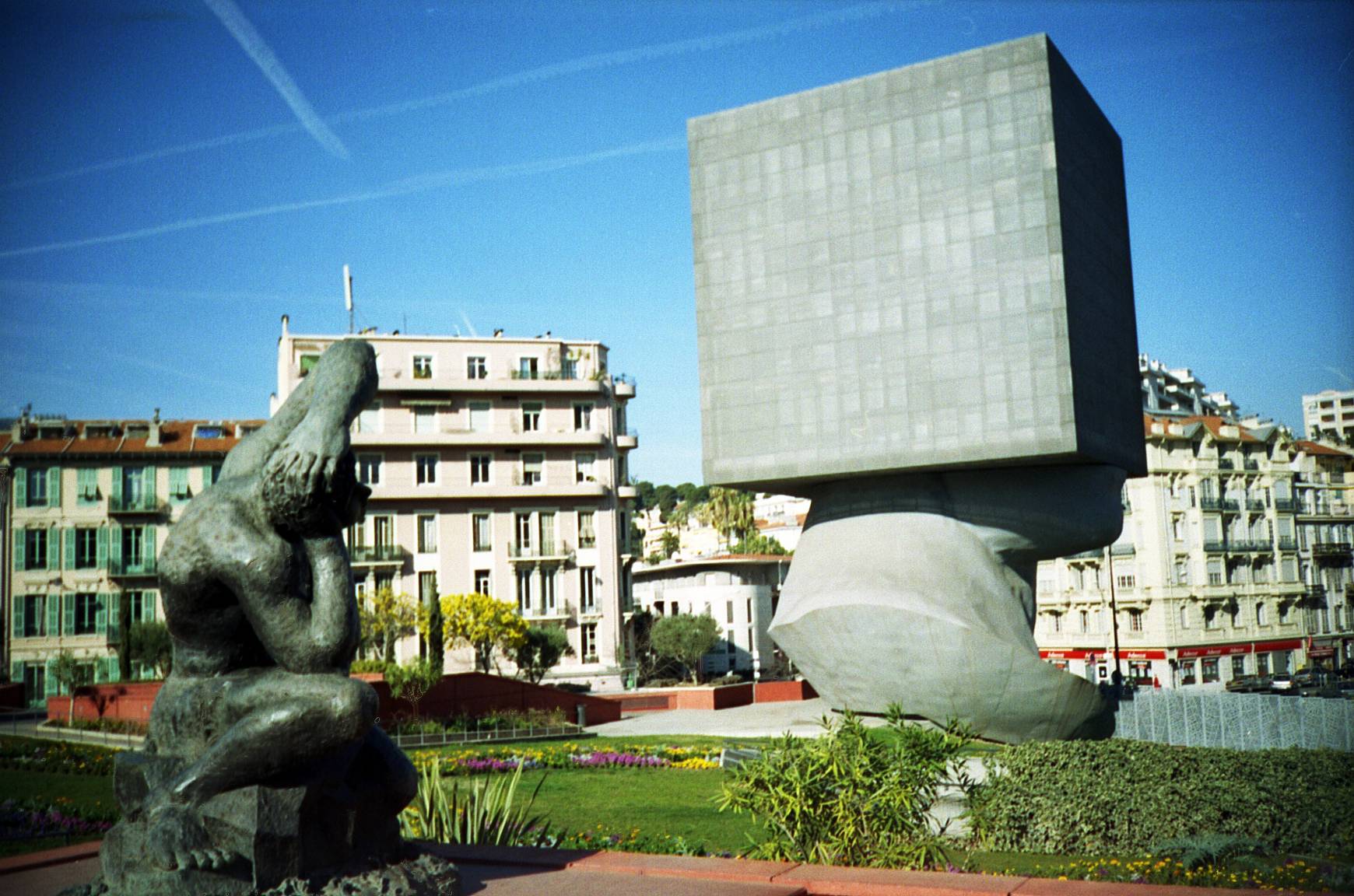 Famosa anche come “Thinking Inside the Box", quest’opera si trova a Nizza ed è stata progettata dall’artista marsigliese Sacha Sosno in collaborazione con gli architetti Francis Chapus e Yves Bayard.