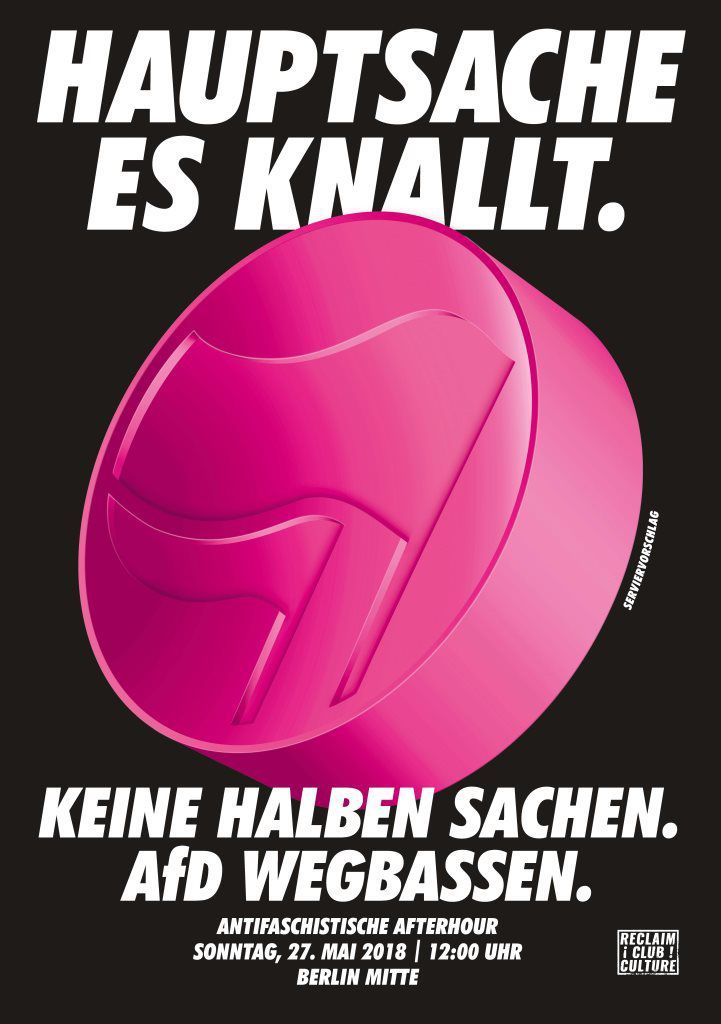 "Non siamo disposti a tollerare la continua pressione dell'estrema destra contro semplicemente tutto ciò che la scena dei club di Berlino sta rappresentando. Quindi invitiamo tutti a sfondare la loro marcia il 27 maggio con una dimostrazione musicale."