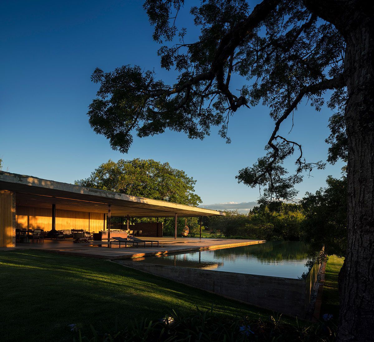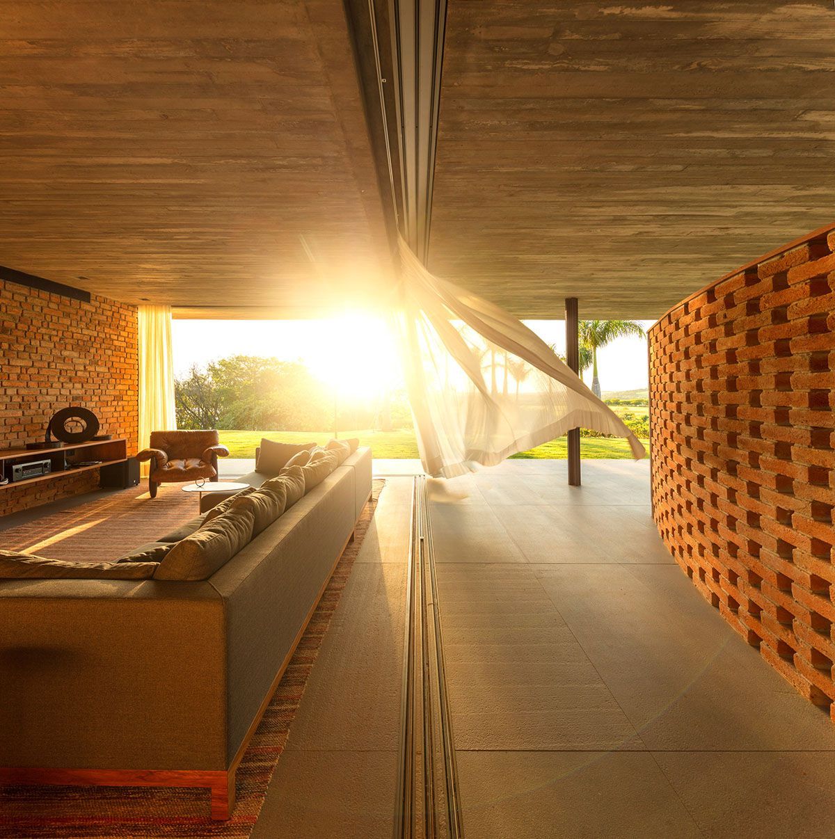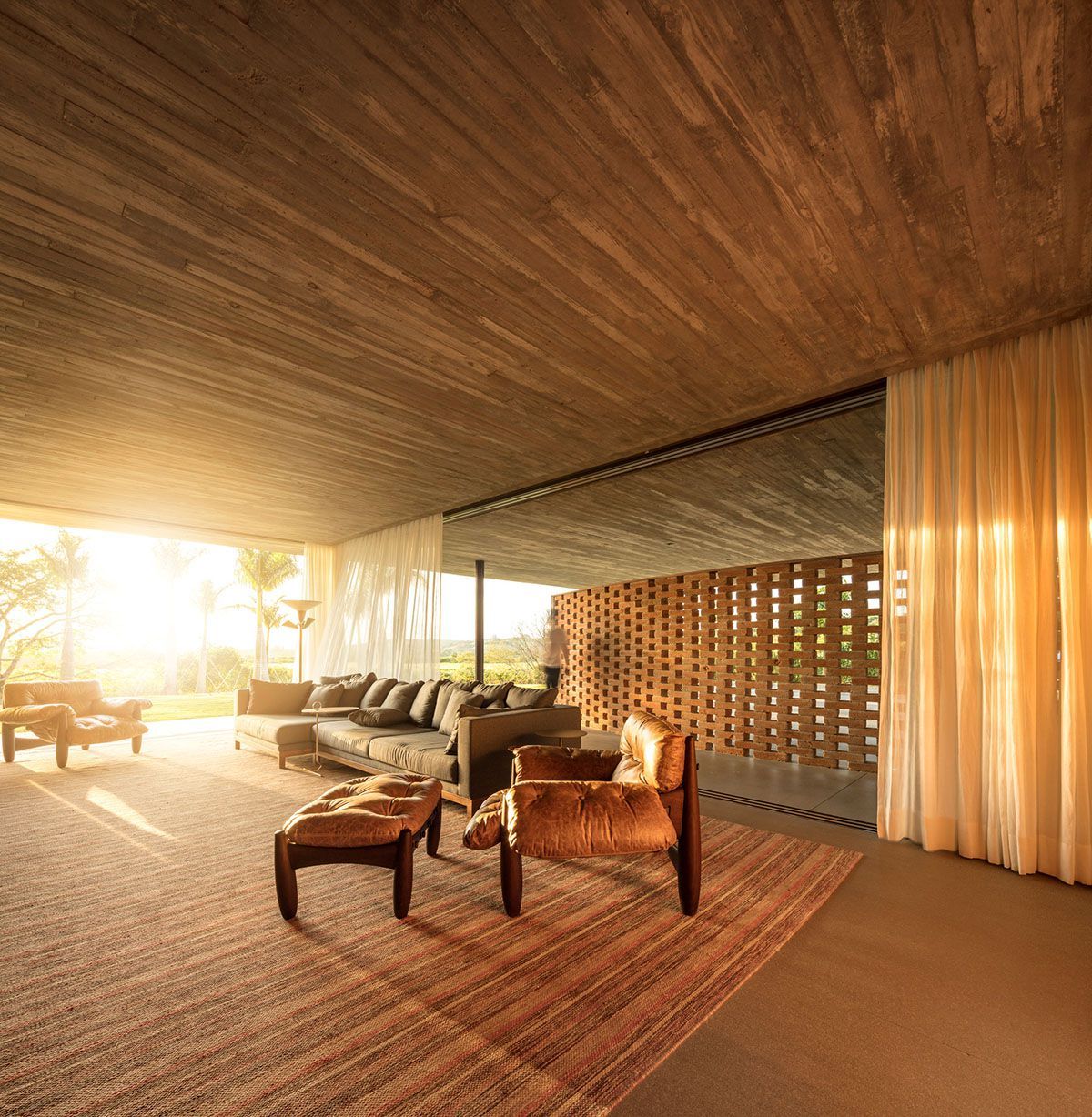 Al crepuscolo la luce dorata del Brasile sembra scorrere attraverso l'intera casa.