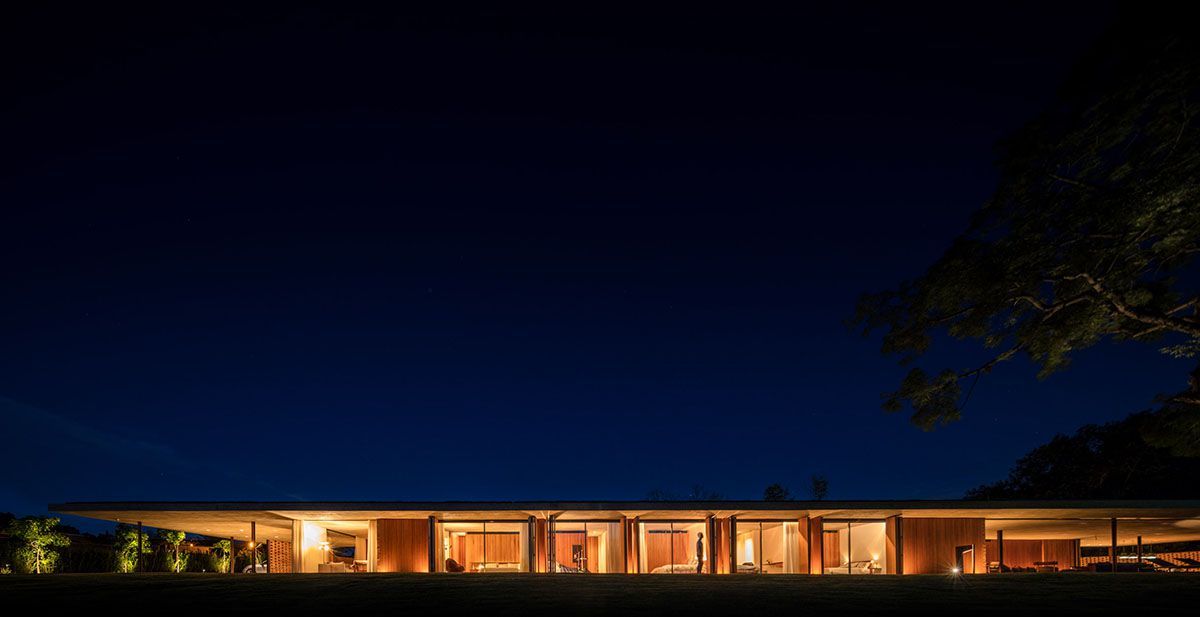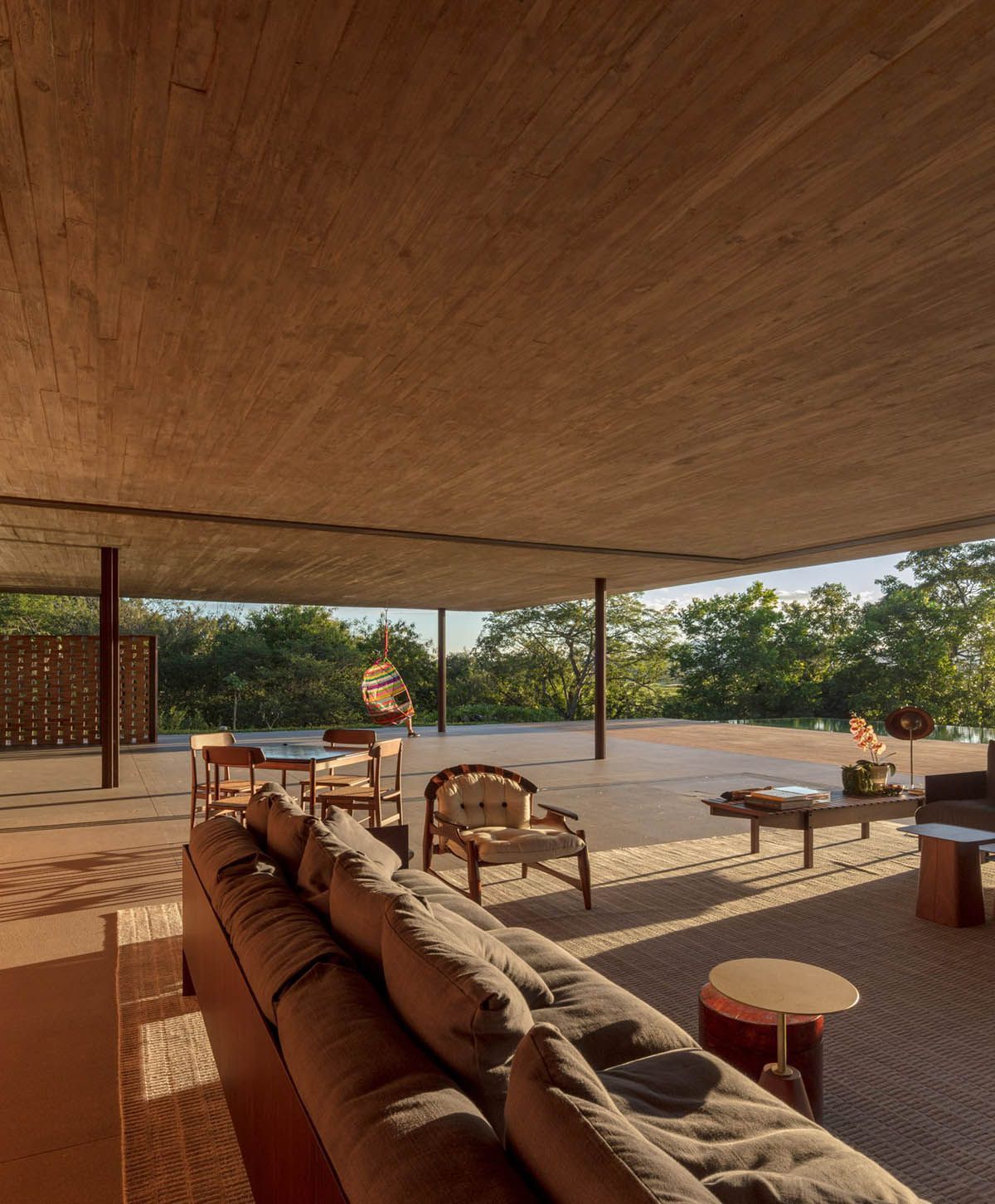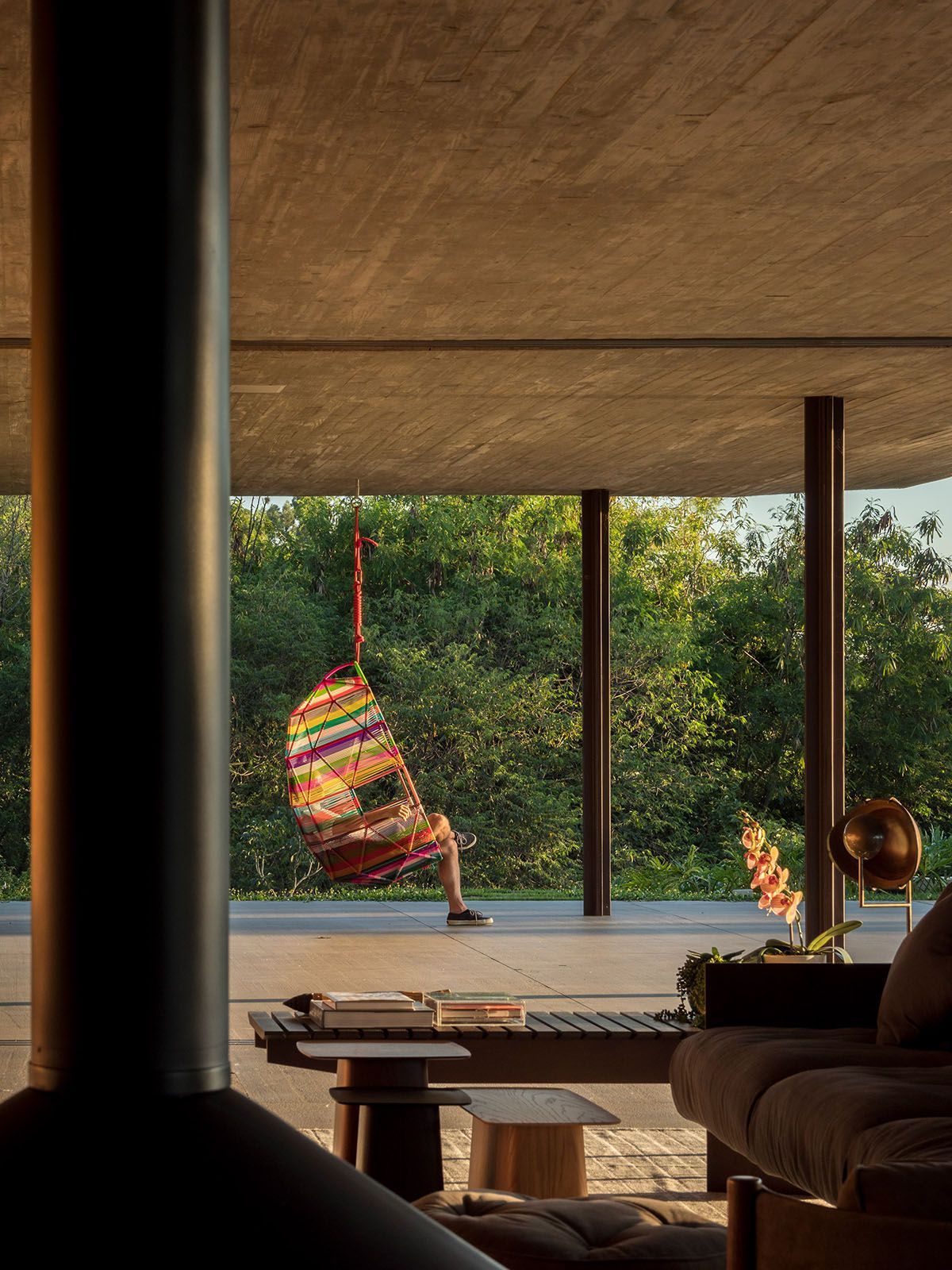 Al crepuscolo la luce dorata del Brasile sembra scorrere attraverso l'intera casa.