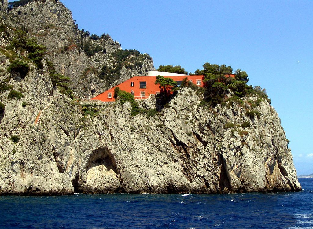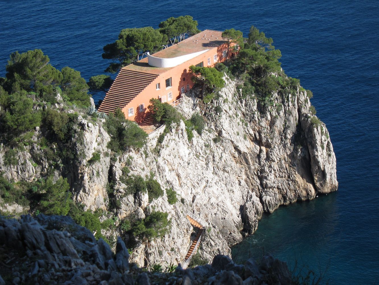 Con queste parole Alberto Moravia descrive Villa Malaparte, dimora del giornalista e scrittore Curzio Malaparte incastonata sul promontorio roccioso di Punta di Masullo (70 metri di lunghezza e 15 di larghezza), davanti ai Faraglioni di Capri.