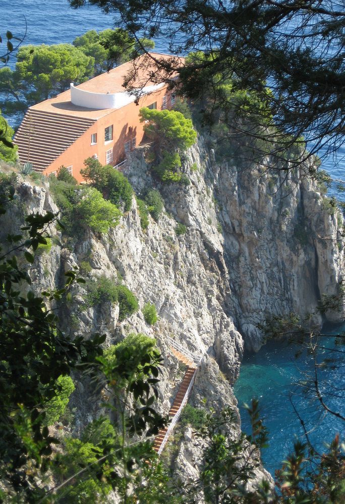 Questa casa isolata, esclusa, raggiungibile solo per mezzo di un percorso tortuoso di scalini tagliati nella roccia, è considerata uno dei capolavori dell’architettura moderna, un gioiello di design di impianto razionalista ideato negli anni Trenta del secolo scorso e inaugurato nel 1943.