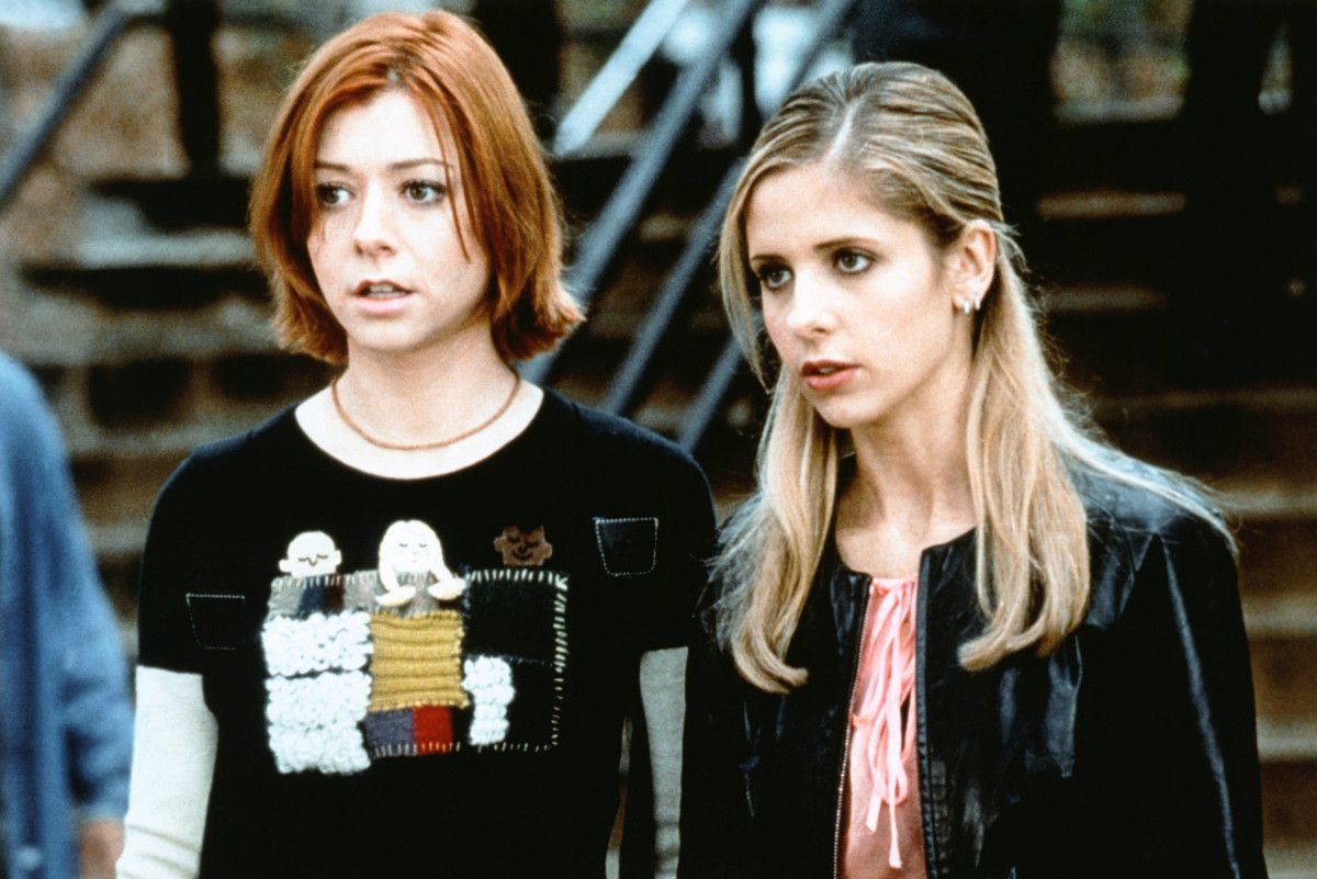 Bionda, minuta, con le mollette tra i capelli e il lucidalabbra scintillante, sembra una sedicenne qualunque. In realtà è “la prescelta”, l’ultima discendente di una stirpe di cacciatrice di vampiri. Nella sua missione è aiutata dalla "Scooby Gang": l’imbranato Xander (Nicholas Brendon), la timida strega Willow (Alyson Hannigan aka Lily in How I Met Your Mother ), la snob Cordelia (Charisma Carpenter), il musicista licantropo Oz (Seth Green), il bibliotecario-osservatore Giles (Anthony Head), il tormentato vampiro con l’anima Angel (David Boreanaz, protagonista dello spinoff di Buffy, Angel, ma anche interprete di Booth in Bones) e Spike (James Marsters), il vampiro a cui Billy Idol ha copiato il look.