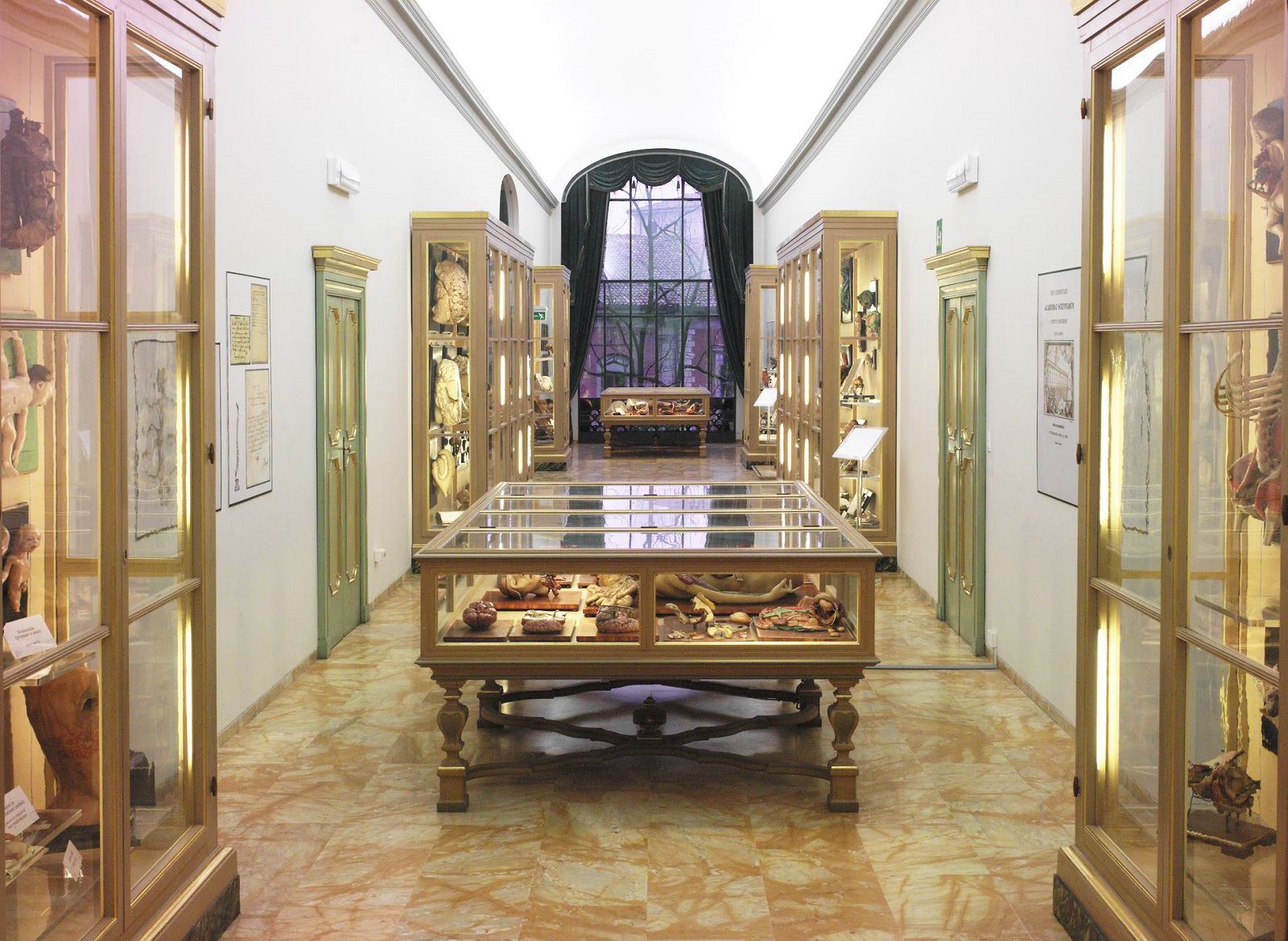 Una wunderkammer dove il ruolo principe è delle pregiate cere anatomiche, opere di artisti del settore come Clemente Susini (autore anche delle cere della Specola di Firenze), Giuseppe Astorri e Cesare Bettini. L'Università di Bologna è stata, infatti, la prima istituzione a creare una serie di modelli anatomici di cera per i propri studenti di medicina, un tecnica, quella di utilizzare la ceroplastica per questo scopo, nata ufficialmente nel 1742 quando Papa Benedetto XIV commissionò all’accademico Ercole Lelli il progetto di una Camera Anatomica che contenesse statue e modelli del corpo umano.