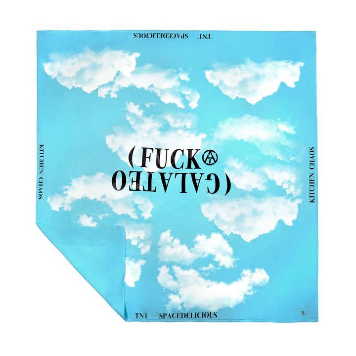 Fuck Galateo è un'ode a gustare i pasti e dimenticare ogni tipo di etichetta mentre viene proiettata nel perfetto cielo azzurro, per un'esperienza paradisiaca. Questi articoli hanno una loro storia, che inizia nella lavanderia industriale della famiglia di Maurizio, dove tovaglie e tovaglioli venivano usati come parte di un servizio di noleggio per ristoranti e alberghi. Ogni pezzo è stato rivisitato, personalizzato con colori e stampe artigianali e ognuno è diverso dall'altro. La linea Spaceciccio invece è nata per gravitare nella galassia Spacedelicious. Disponibile in due dimensioni, Small e Big. Per un Natale fuori dal mondo!