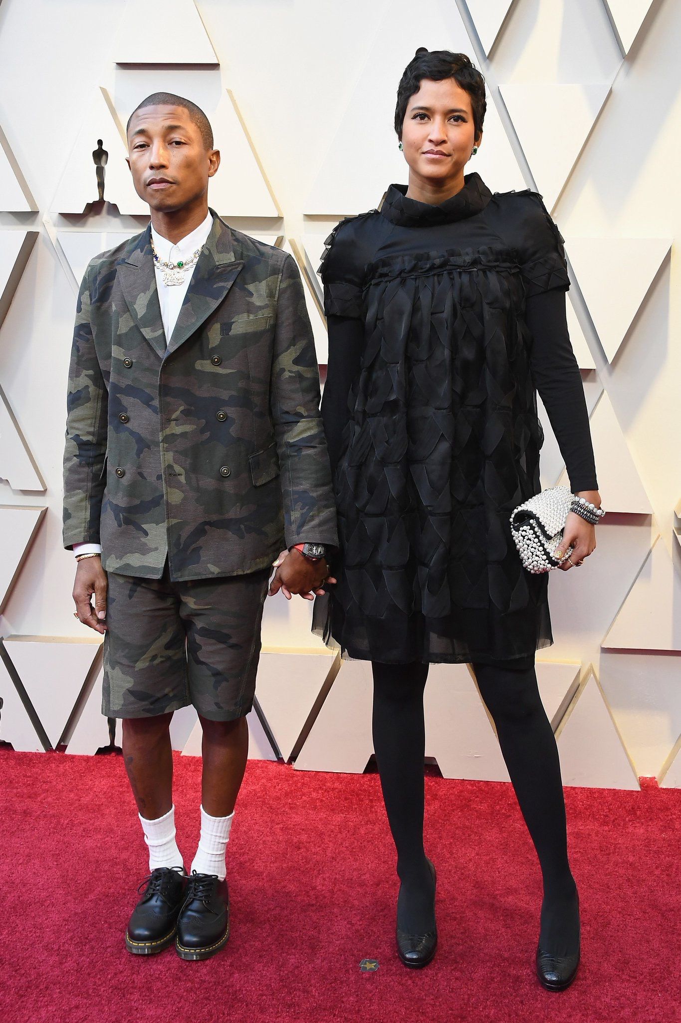 Pharrell Williams, musa di Karl Lagerfeld, re del mondo, agli Oscars in shorts e Dr. Martens. Quando ti puoi permettere di fare assolutamente quel che ti pare. Su le mani.