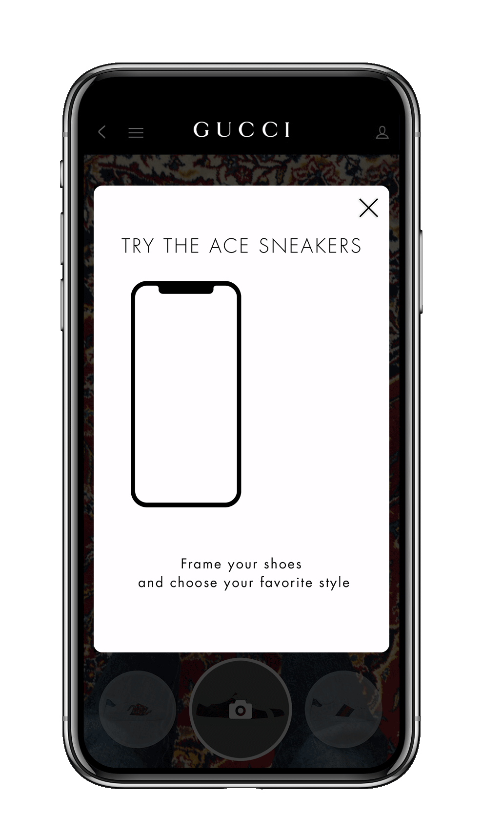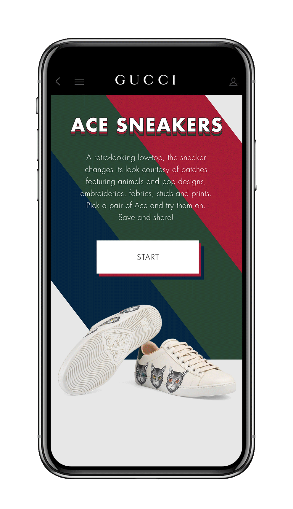 La nuova funzionalità dell'app di Gucci è semplice da usare e molto intuitiva: gli utenti possono scegliere tra diverse versioni di Ace Sneaker sullo schermo, e puntando poi la fotocamera verso i propri piedi sarà possibile visualizzare come le sneaker starebbero ai piedi. Grazie al collegamento diretto con il sito gucci.com, i clienti potranno poi comprare direttamente le sneaker provate attraverso la realtà aumentata. Gli utenti potranno inoltre scattarsi delle foto con le sneaker ai piedi e postarle sui propri social media.