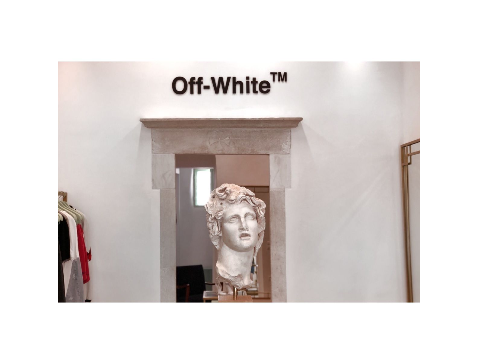 Inaugurato lo scorso anno con una capsule collection esclusiva ispirata al Mediterraneo, lo store di Off-White situato al 18 di Kalogera Street rispecchia i colori, bianco, blu e verde mare, dell’isola, ma anche la sua storia con le statue greche che spuntano tra stand e scaffali. L’ambiente è in bilico tra il minimalismo street delle creazioni di Virgil Abloh e elementi barocchi come il lampadario di cristalli, le statue o il tappeto con la scritta “Feel the sand”.