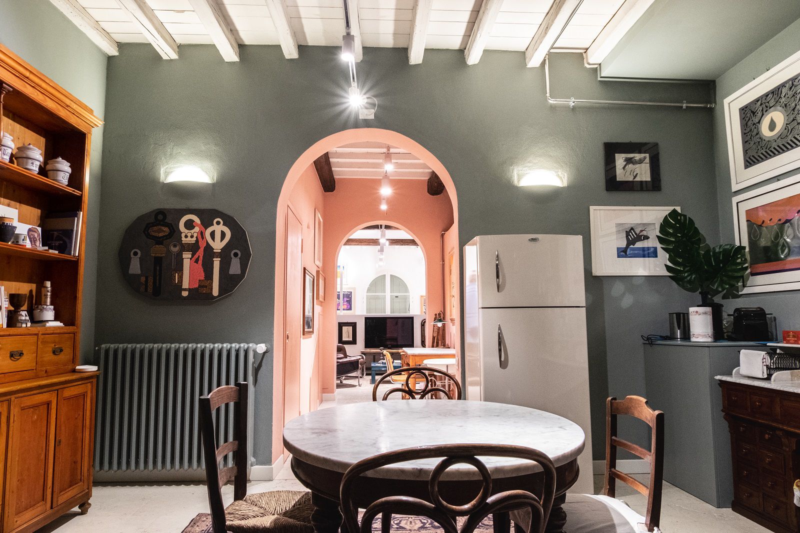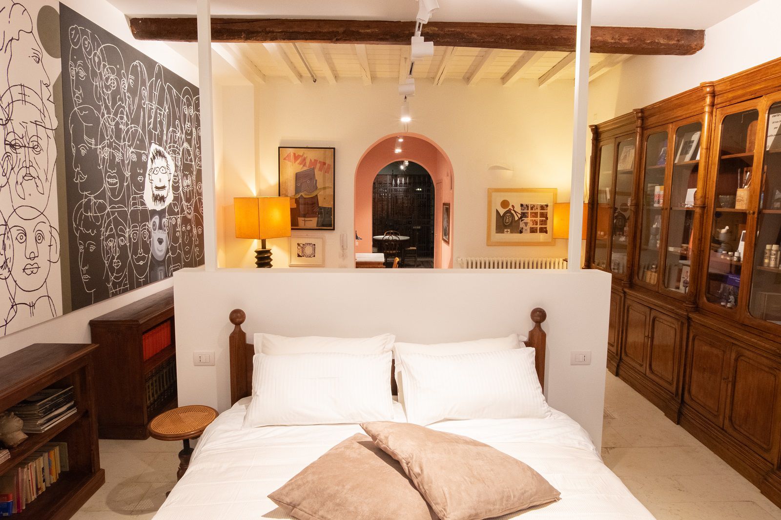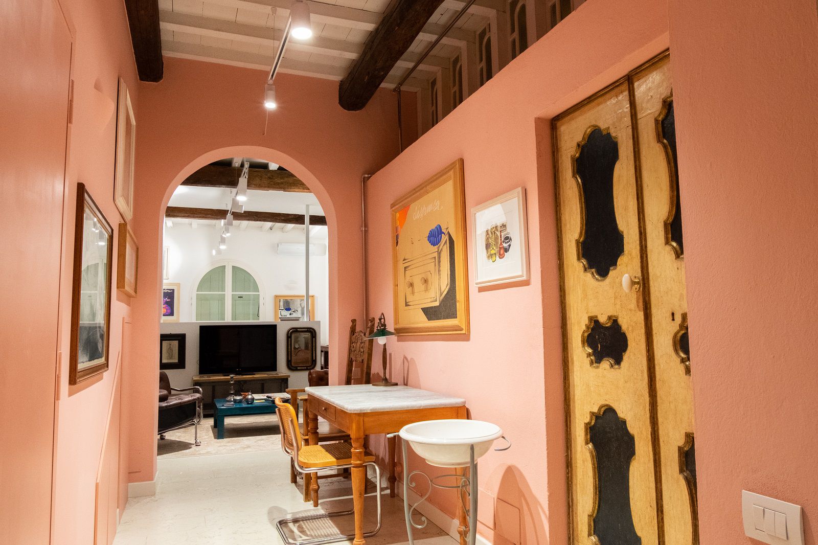 Bologna è una città bellissima. Con i suoi pregi e i suoi difetti. Con l’ampia Piazza Maggiore circondata da portici, con i suoi edifici medievali e rinascimentali come la Fontana del Nettuno, le Torri degli Asinelli e la Basilica di San Petronio, con gli studenti che affollano via Zamboni e il profumo di cucina che si mischia ai rumori metropolitani. Sono tante le sue anime e tanti sono i segreti che nascondono le sue strade. Uno speciale è racchiuso nel cuore del Ghetto Ebraico, dietro un pesante portone in legno. Quello che ora è un suggestivo loft open space di più di 110mq al piano terra di una tipica palazzina Bolognese, fino a qualche anno fa studio di uno più grandi Pittori degli ultimi 100 anni, Concetto Pozzati