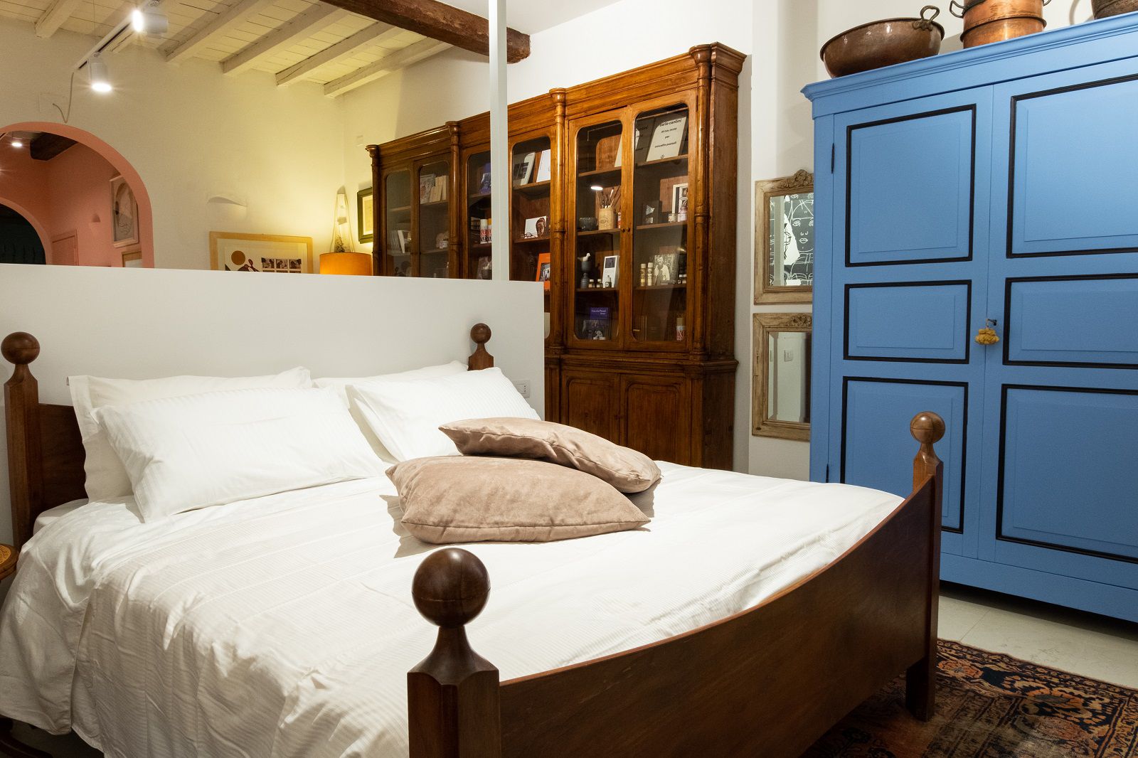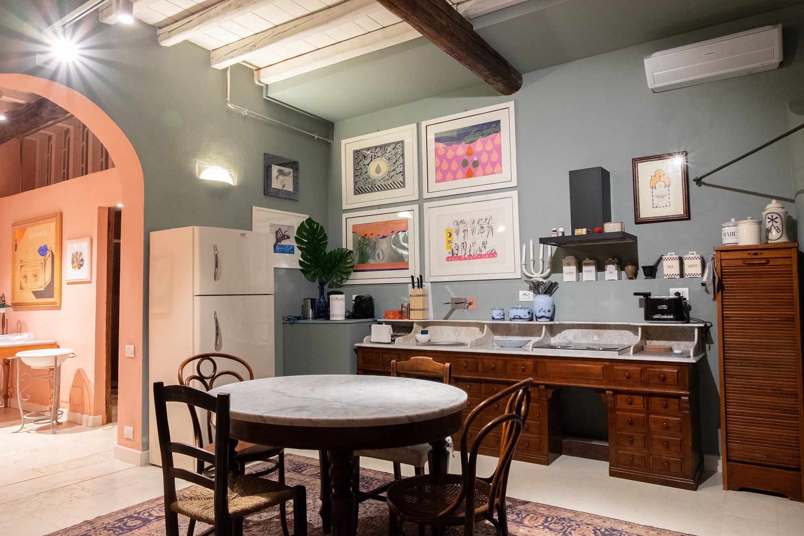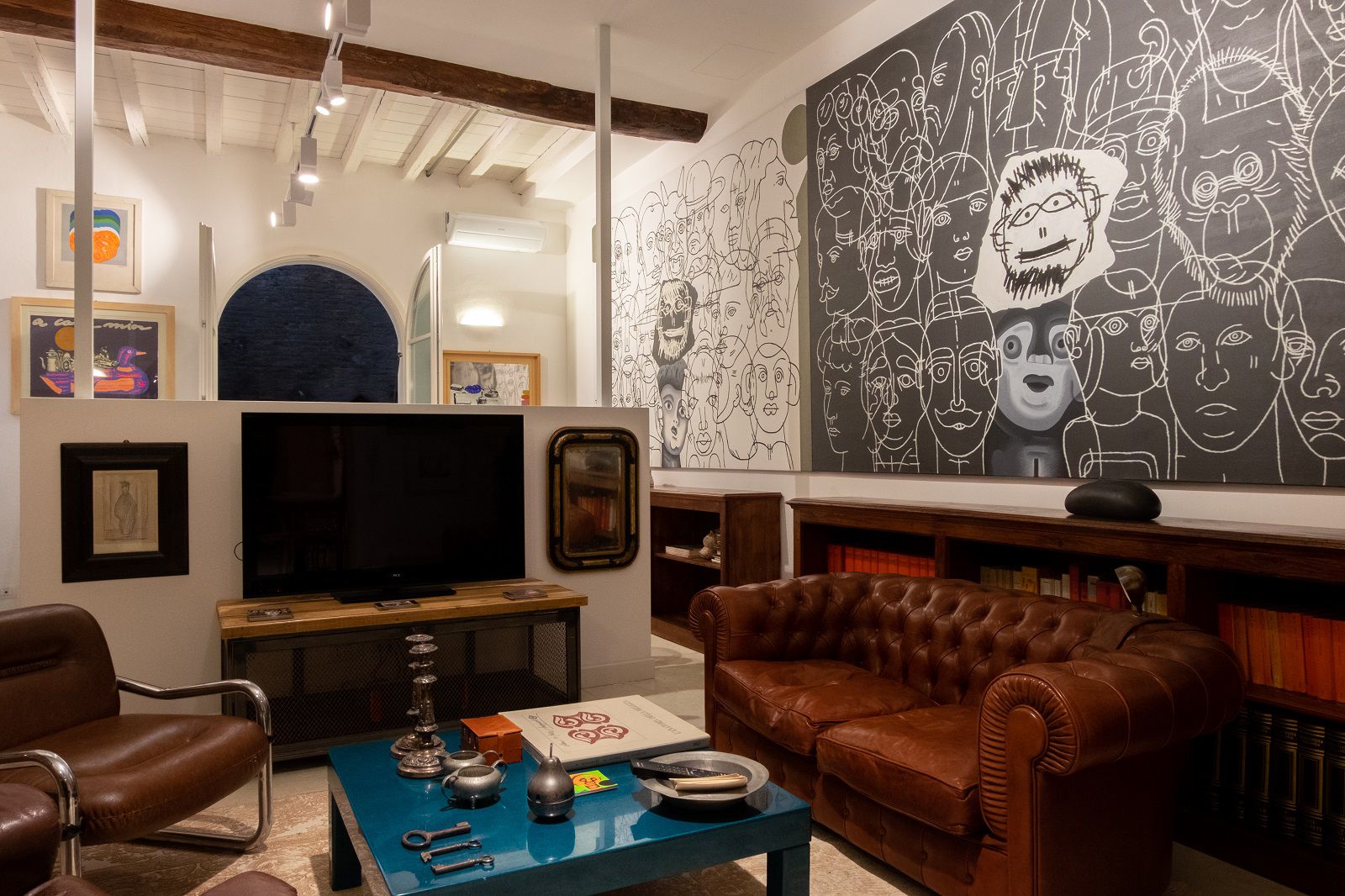 Bologna è una città bellissima. Con i suoi pregi e i suoi difetti. Con l’ampia Piazza Maggiore circondata da portici, con i suoi edifici medievali e rinascimentali come la Fontana del Nettuno, le Torri degli Asinelli e la Basilica di San Petronio, con gli studenti che affollano via Zamboni e il profumo di cucina che si mischia ai rumori metropolitani. Sono tante le sue anime e tanti sono i segreti che nascondono le sue strade. Uno speciale è racchiuso nel cuore del Ghetto Ebraico, dietro un pesante portone in legno. Quello che ora è un suggestivo loft open space di più di 110mq al piano terra di una tipica palazzina Bolognese, fino a qualche anno fa studio di uno più grandi Pittori degli ultimi 100 anni, Concetto Pozzati
