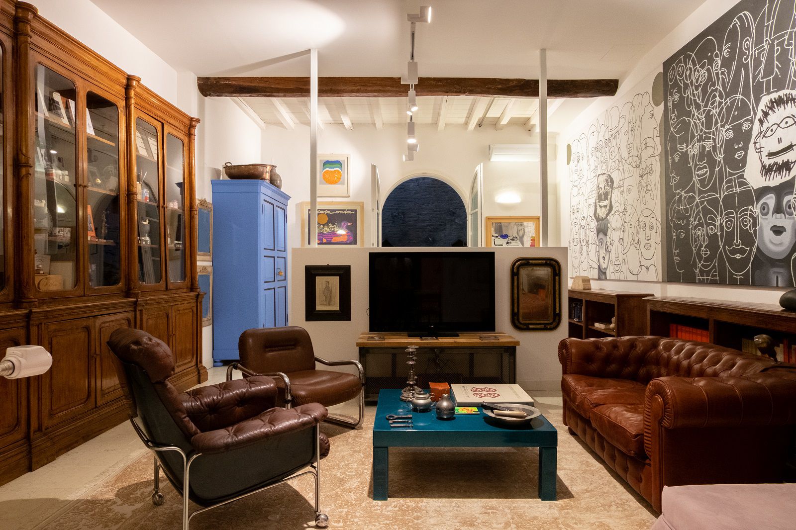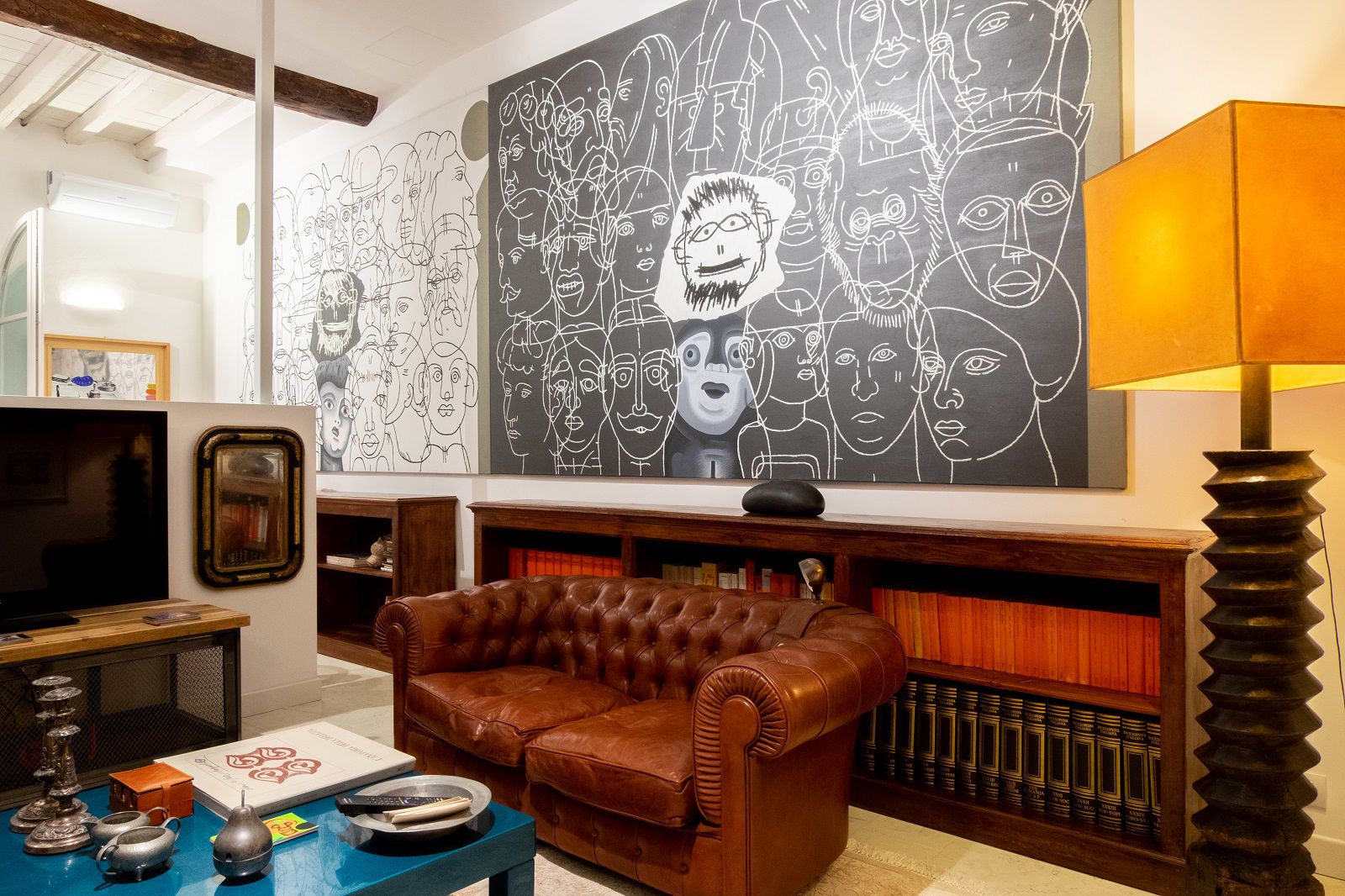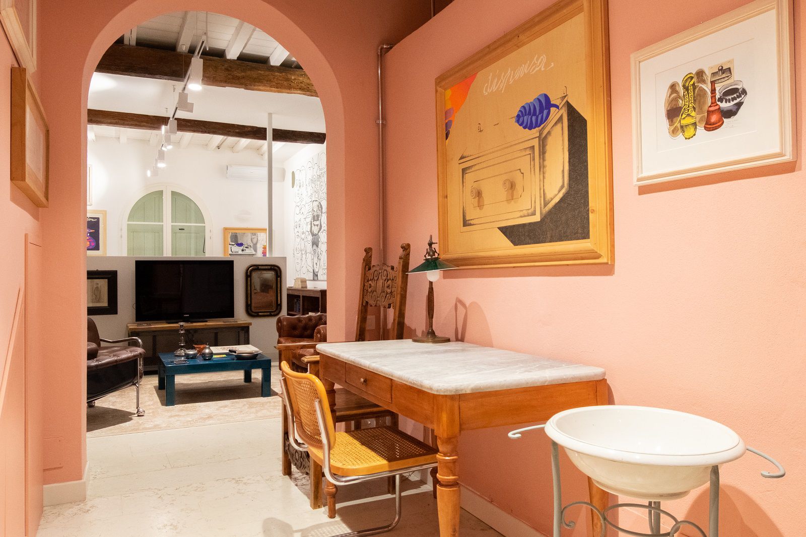 Certo, in questo spazio composto da angolo cottura e sala da pranzo, bagno, soggiorno e letto matrimoniale che affaccia sul patio c’è ogni moderna comodità, dal frigorifero alla lavatrice, dalla tv full hd all’aria condizionata di ultima generazione, dal wi fi al courtesy kit, ma la presenza del “corsaro della pittura”, seppure discreta, sussurrata, si respira nei dettagli. Non ci sono astrusi ed eccentrici mobili di design, ma mobili vintage rivisitati, quadri pop appesi alle pareti e piccoli oggetti che, appoggiati su mensole e scaffali, raccontano l’eredità culturale dell’uomo. I libri d'autore, i pennelli, i vasetti di pittura con macchie di colore incrostato sono l’eco di un amore viscerale per il proprio “mestiere”, per l’arte e, come i colori frammentati e bellissimi di un caleidoscopio, proiettano stralci di un passato affascinante. Sta a chi decide di alloggiare qui scegliere se approfondire e scoprire di più sull’uomo che ha fatto nascere la pop art in Italia o se godersi semplicemente i confort e l’atmosfera unica di questo loft. Bastano pochi click su Airbnb per iniziare il viaggio. Dove vi condurrà lo deciderete varcata la soglia di questo spazio nel cuore di Bologna.