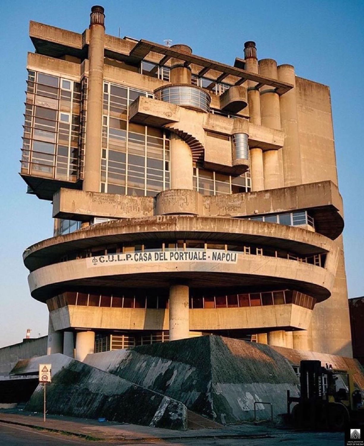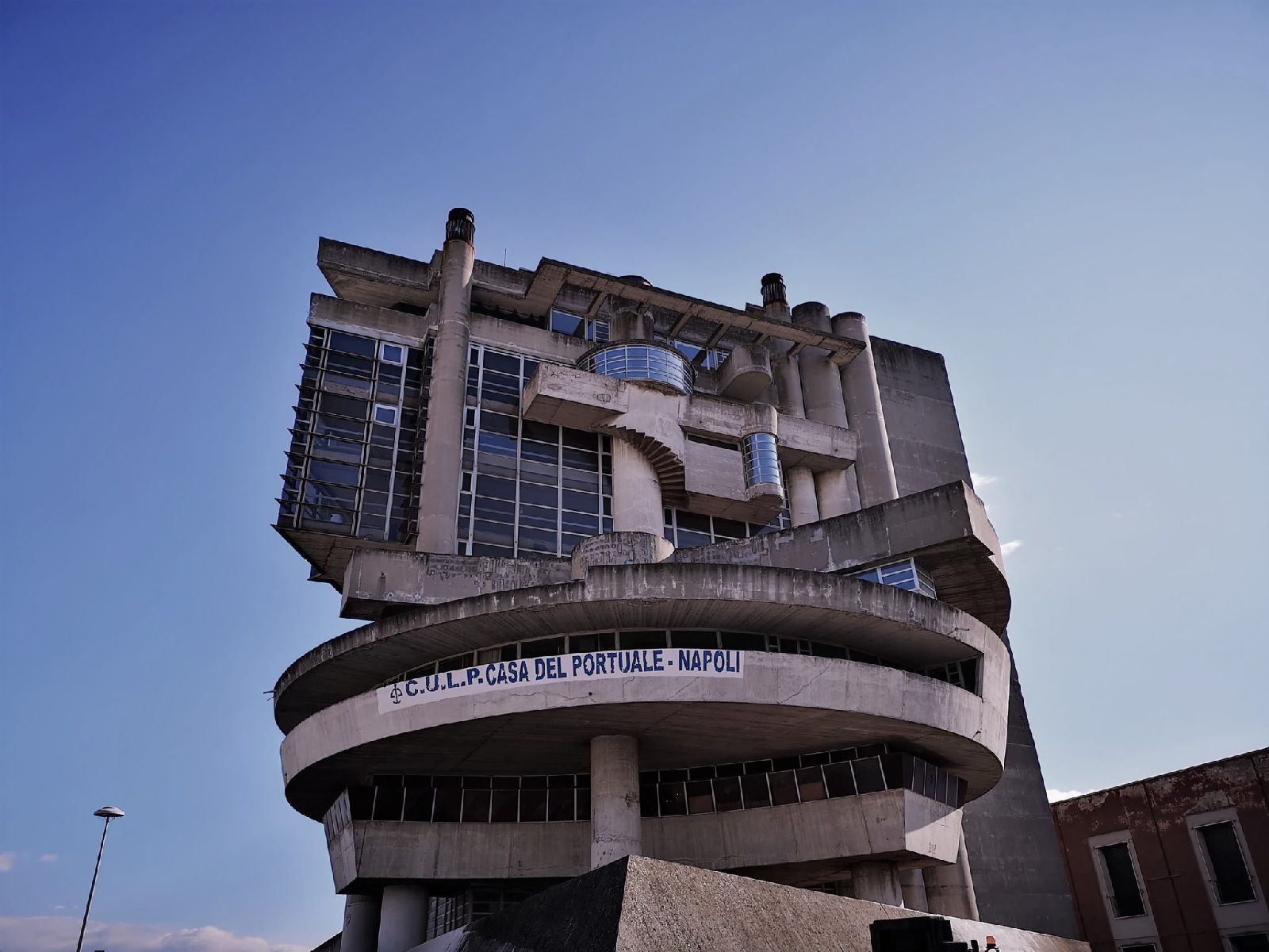 L’esempio perfetto di questa visione è un edificio recentemente tornato sotto i riflettori grazie alla cultura pop: la Casa del Portuale. La costruzione è apparsa nella terza stagione di Gomorra e nel video di Liberato per la canzone Tu t’e scurdat' 'e me.