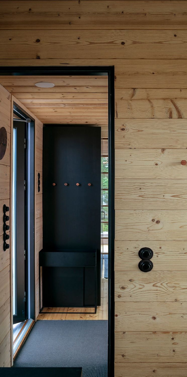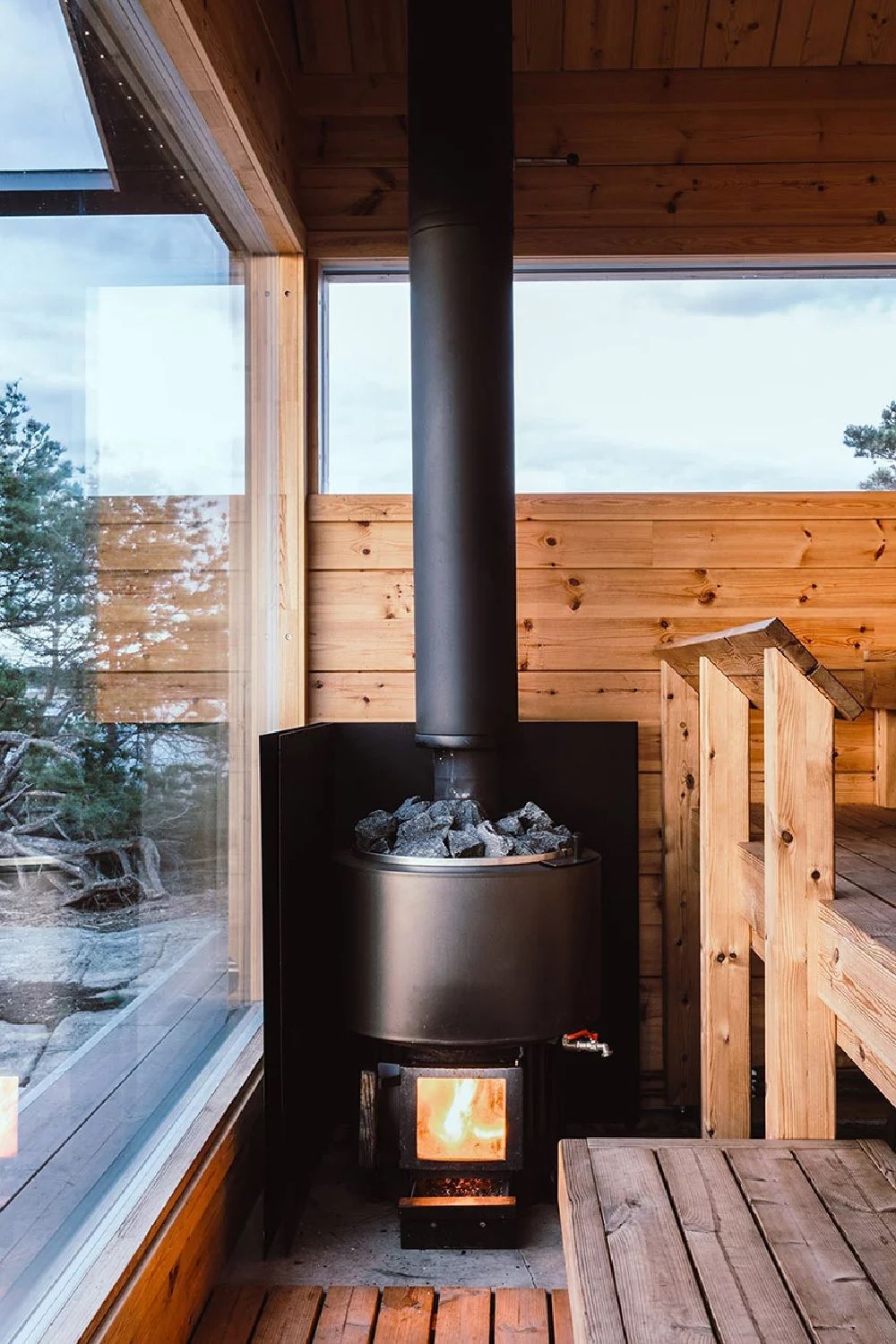 Hautamaki e Selkimaki hanno progettato la loro abitazione in modo che fosse totalmente autosufficiente: i pannelli solari montati sul tetto forniscono energia, mentre l’acqua di mare filtrata viene utilizzata per i lavandini e i servizi igienici. Immancabile la sauna (si stima che in Finlandia ci siano 2,1 milioni di saune) che questa volta non è solo un luogo per la cura del corpo o per incontrare gli amici (come nella tradizione nordica). Infatti, la sua stufa regala l'acqua calda corrente alla casa e fornisce riscaldamento ai pavimenti.