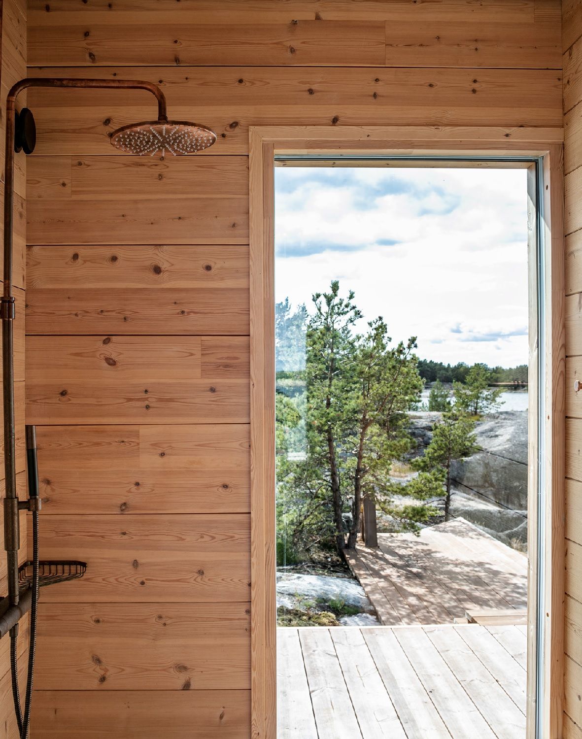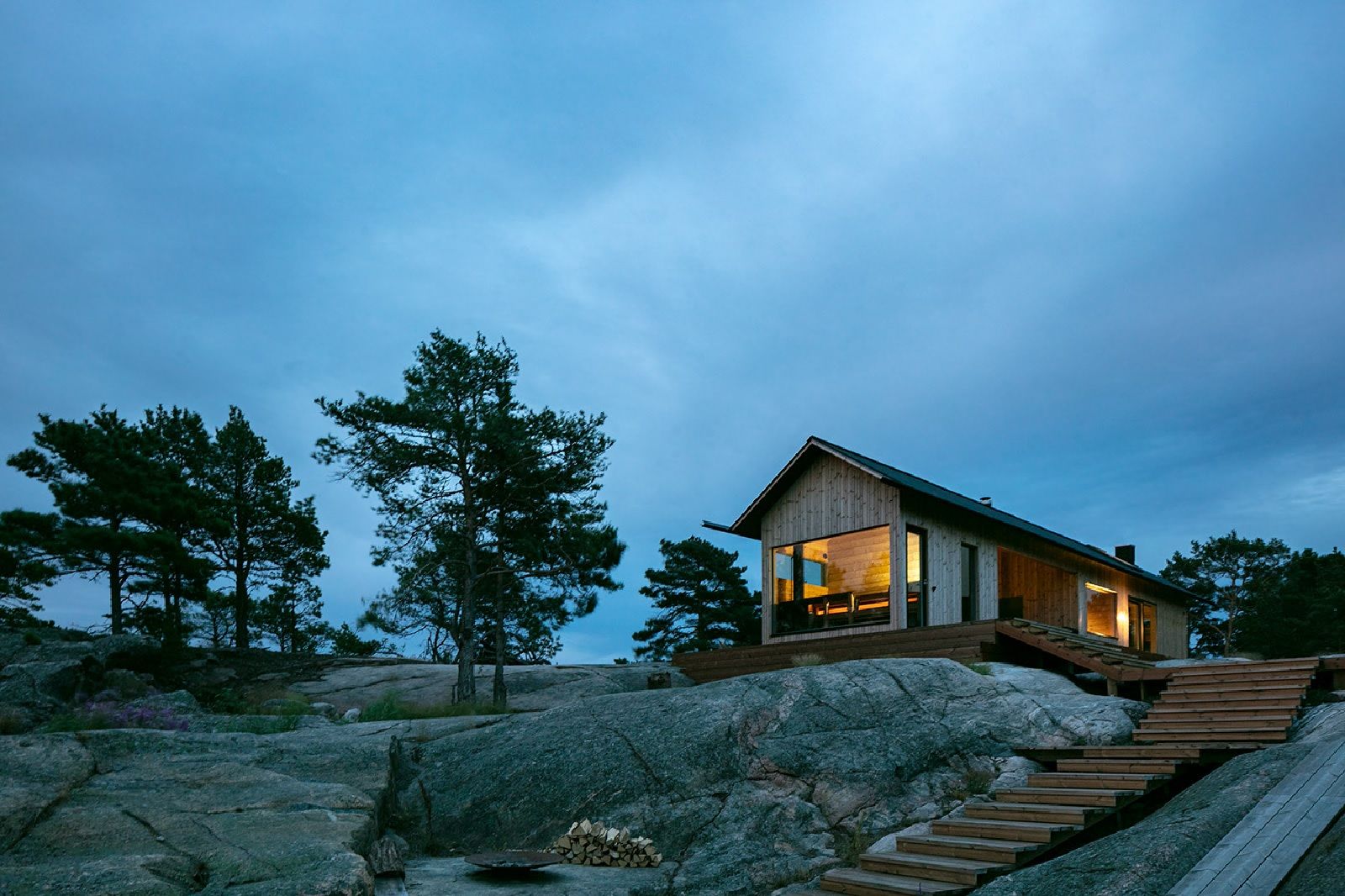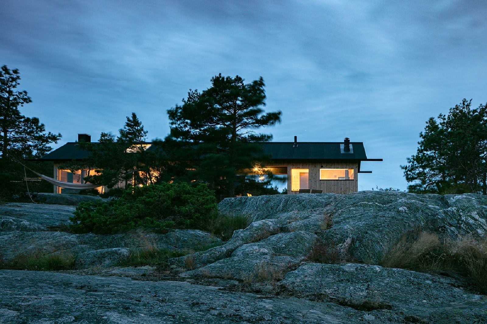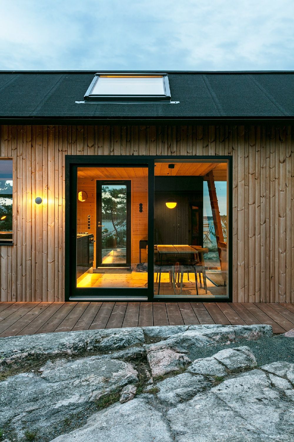 Project Ö è un piccolo complesso di 70m² totali composto da due cabine principali, un'officina e una sauna posizionate in cima a una terrazza di legno e caratterizzate da uno spazio esterno coperto che separa le camere da letto dalla zona giorno. Una scelta di design che, spiega la coppia, “rende omaggio all'estetica tradizionale dell'arcipelago finlandese" e "consente di avere ampie superfici vetrate con viste variabili”, ideali per ammirare i bellissimi tramonti che si riflettono sul mare. I due designer raccontano che le cabine del Project Ö possono ospitare un massimo di 10 persone:
