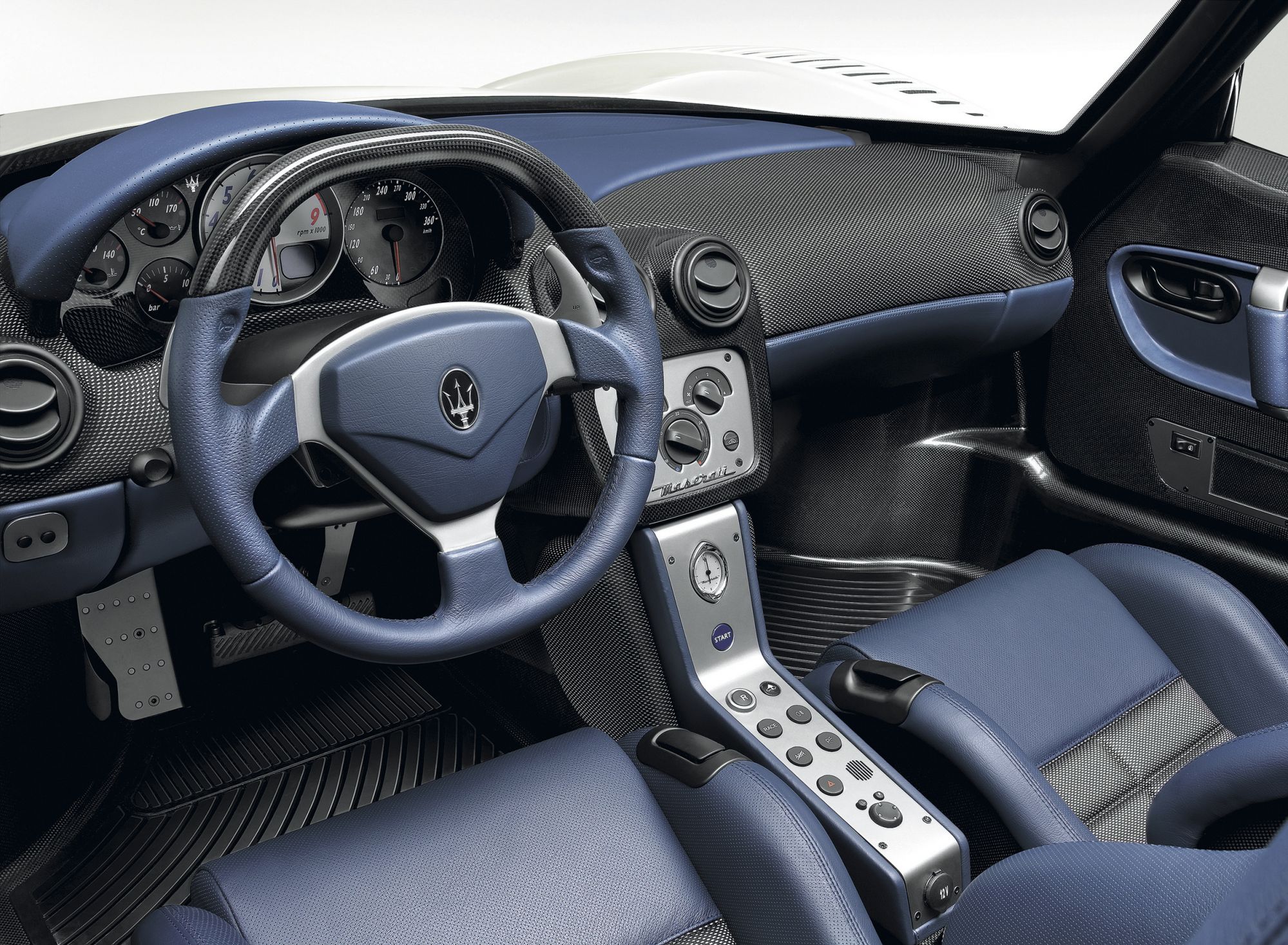 La Maserati MC12 Stradale è una delle supercar più estreme – e un po’ folli – mai realizzate, nata con il contributo di Michael Schumacher. Venne prodotta in solo 50 esemplari e venduta al pubblico ad un prezzo di 720.000 euro. La MC12 non tradì lo spirito Maserati che voleva qualsiasi automobile marchiata con il Tridente rifinita con cura. Negli interni troviamo infatti rivestimenti in pelle blu, numerosi componenti in carbonio e particolari in Brightex, un materiale sintetico considerato troppo raffinato e costoso persino per l’industria della moda. L’assenza di un sistema di radio o lettore CD costringe con orgoglio i fortunati passeggeri a godere unicamente del sound del V12.