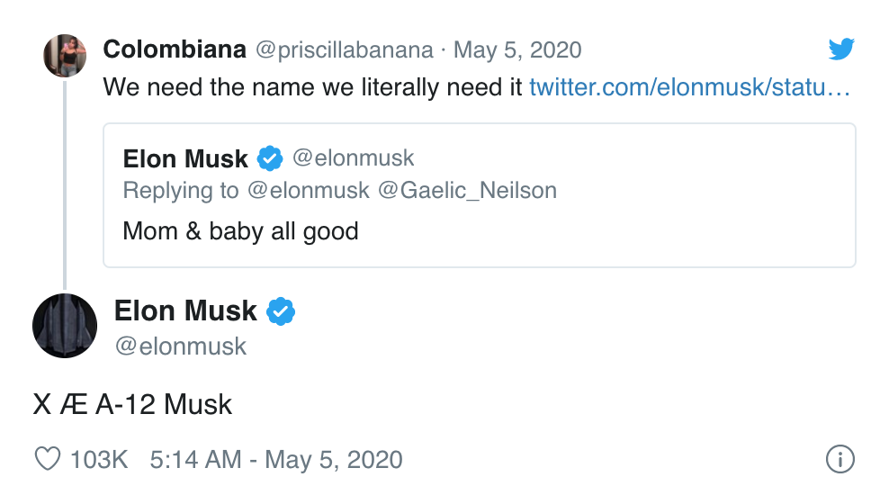 Nelle ultime ore una strana formula è entrata in tendenza su Twitter: X Æ A-12. Non si tratta di un codice top secret soffiato ai servizi segreti americani, nemmeno di una nuova formula matematica, ma "semplicemente" del nome che Elon Musk e Grimes hanno dato al loro primogenit*.