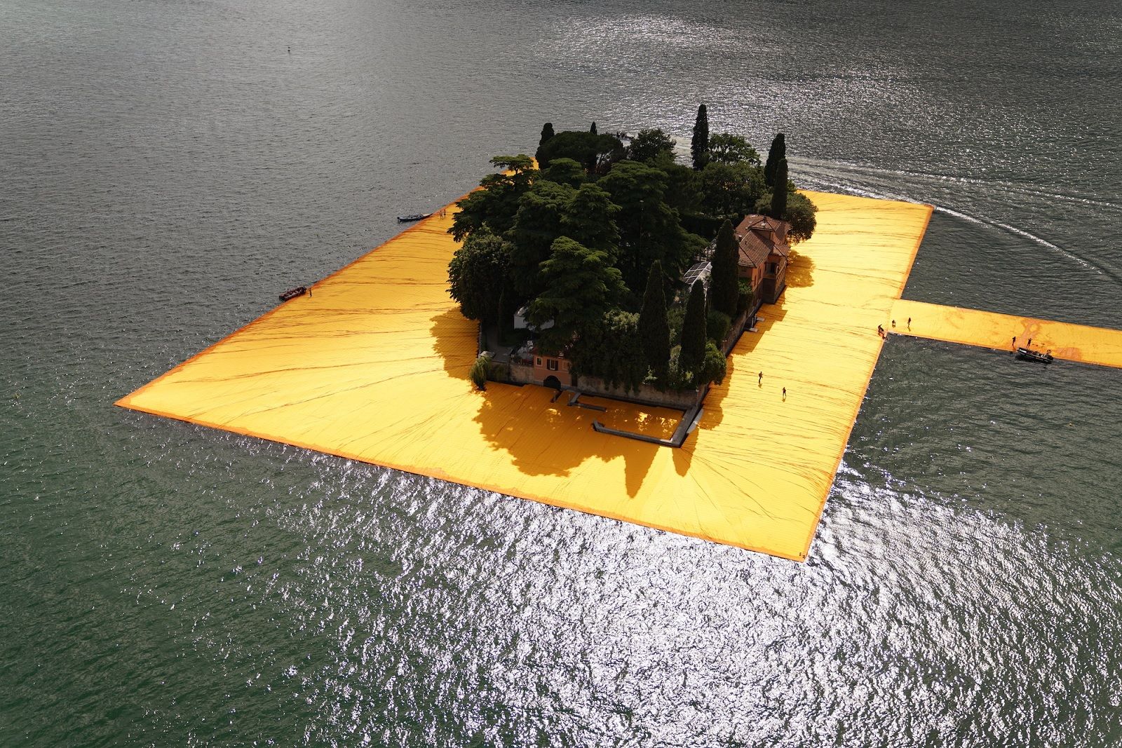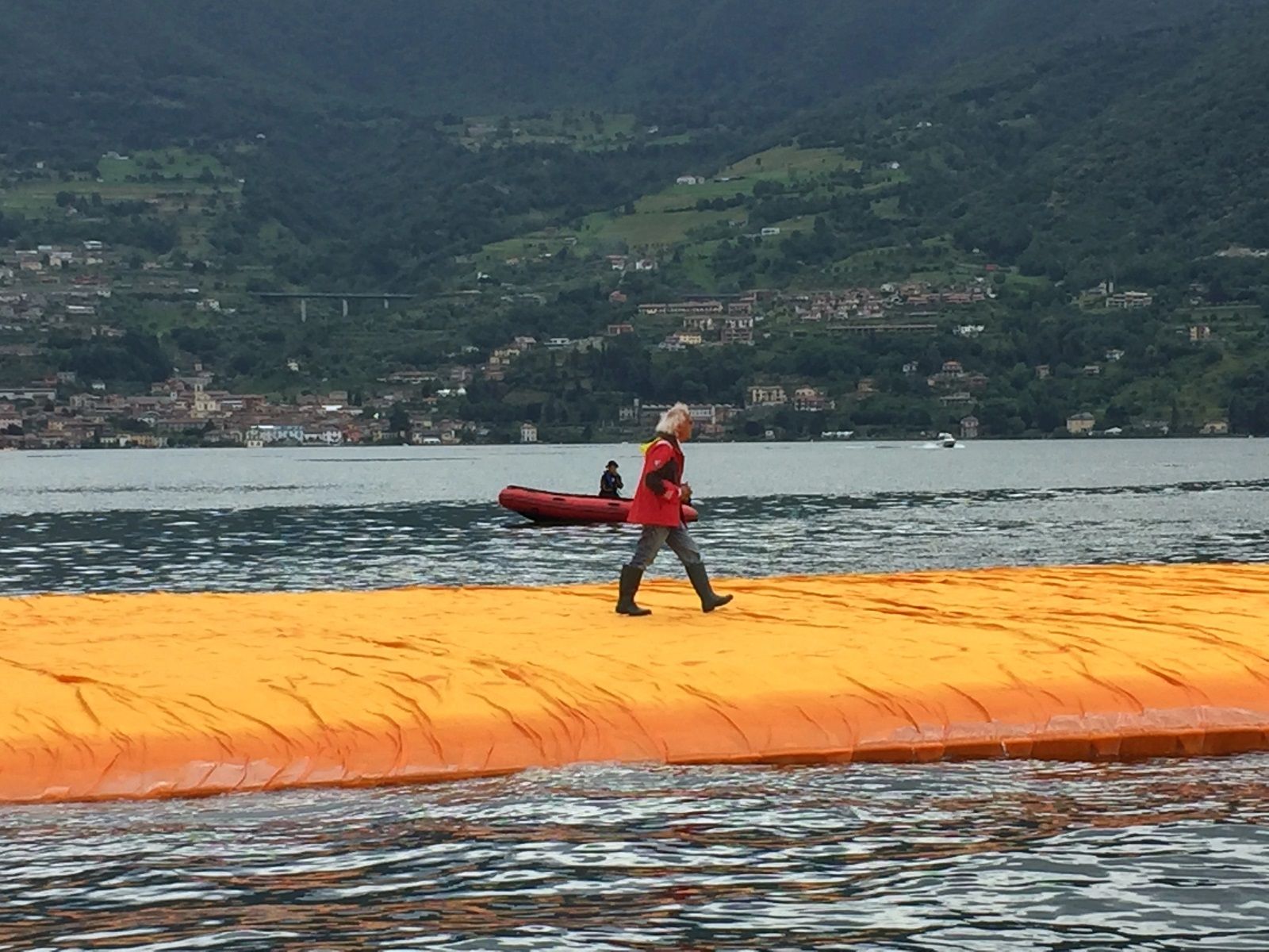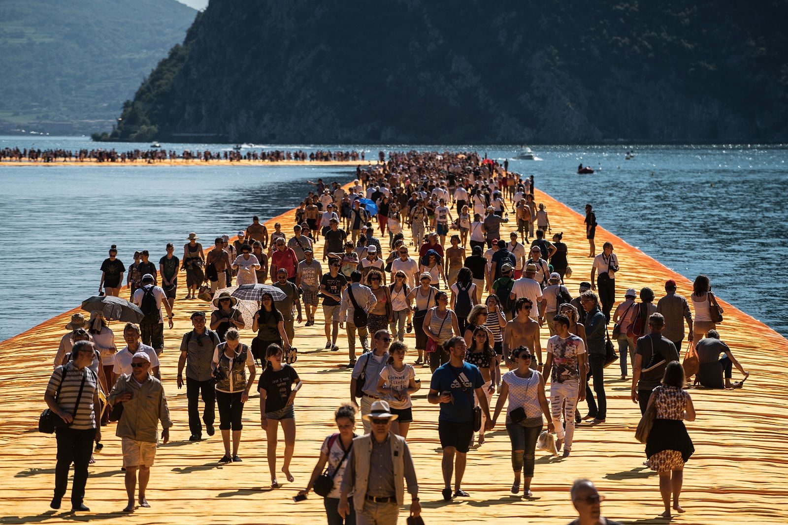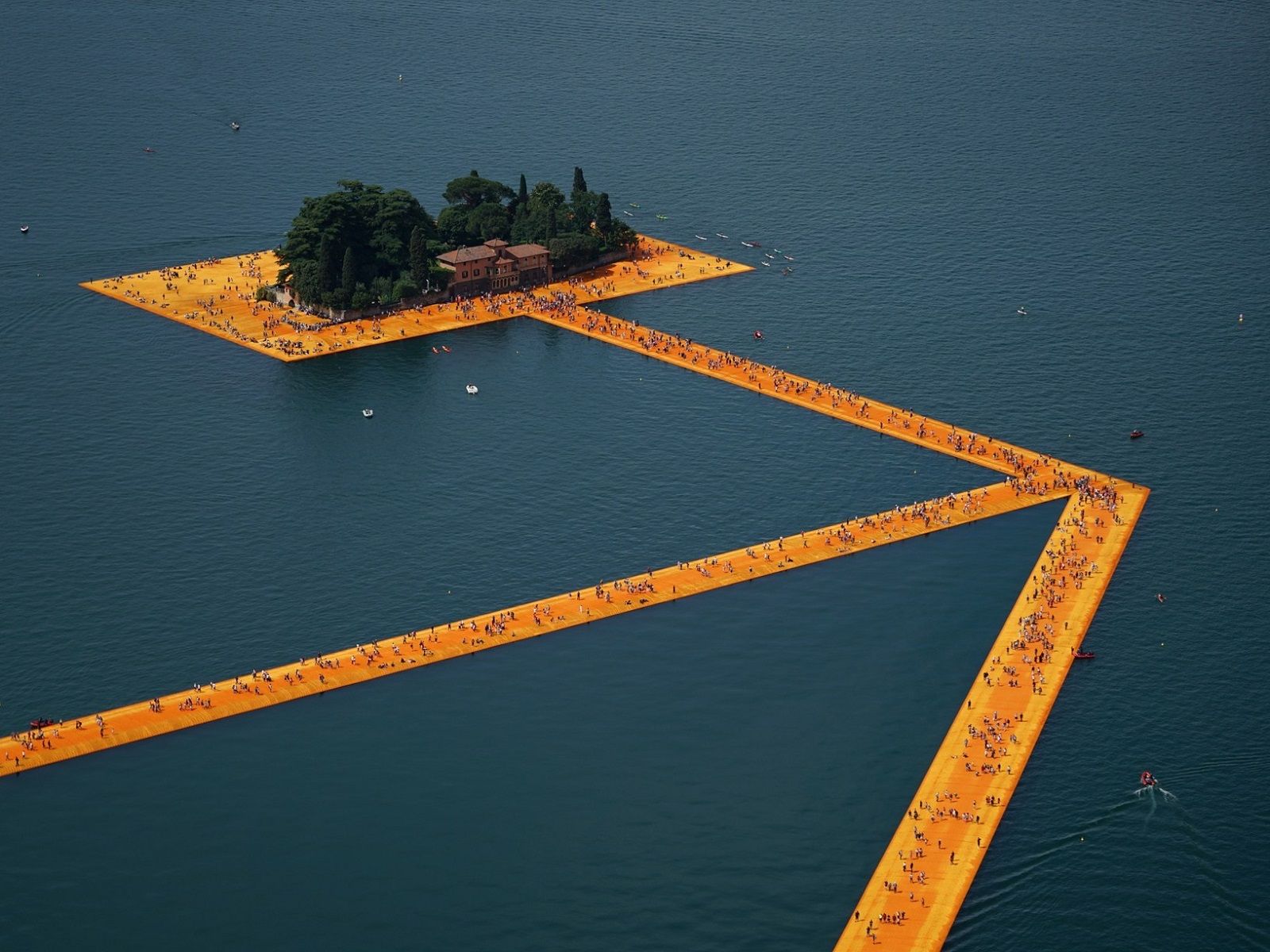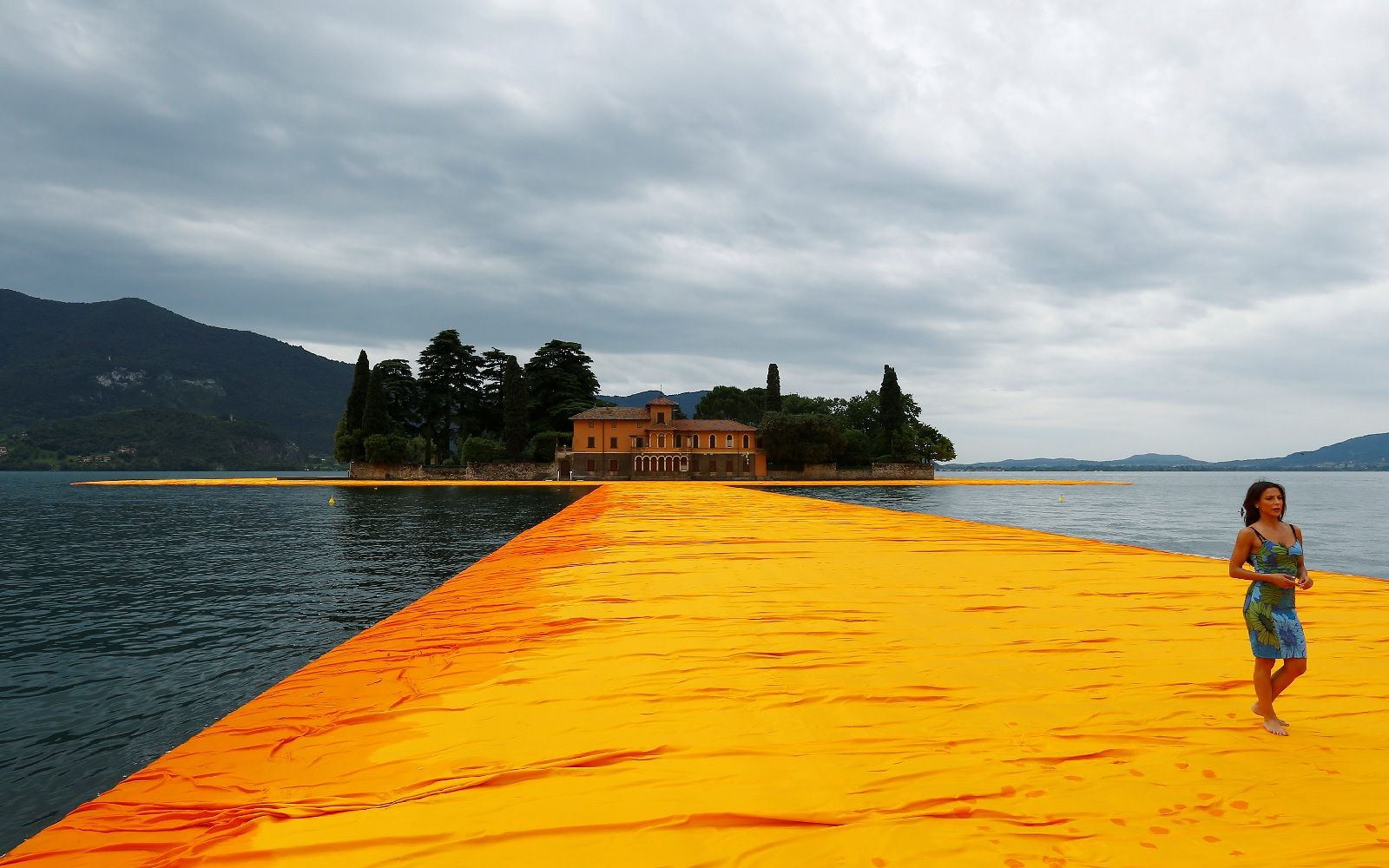 Una lunghissima passerella gialla sul lago lombardo che regalava l'impressione di camminare sull'acqua. The Floating Pears è stata attraversata da 1 milione e 300 mila persone in sole tre settimane.