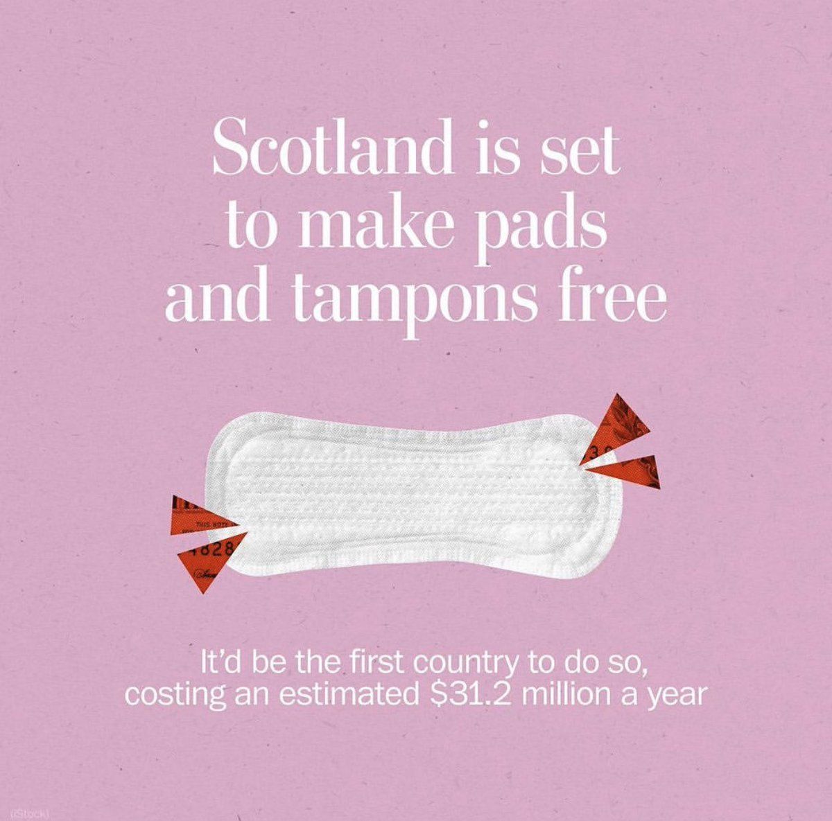 Resta ancora altissimo il numero di paesi in cui non solo le ragazze devono subire discriminazioni nei giorni del ciclo, o vengono costrette a saltare la scuola, allontanate dalla casa di famiglia perché considerate impure, o che ancora non hanno i mezzi economici per potersi permettere assorbenti e annessi. Nonostante tutto dei passi nella giusta direzione sono stati fatti. La Scozia, ad esempio, nel 2018 è stato il primo paese a fornire assorbenti gratis nelle scuole e nelle università, seguito un paio di anni dopo dal Regno Unito.