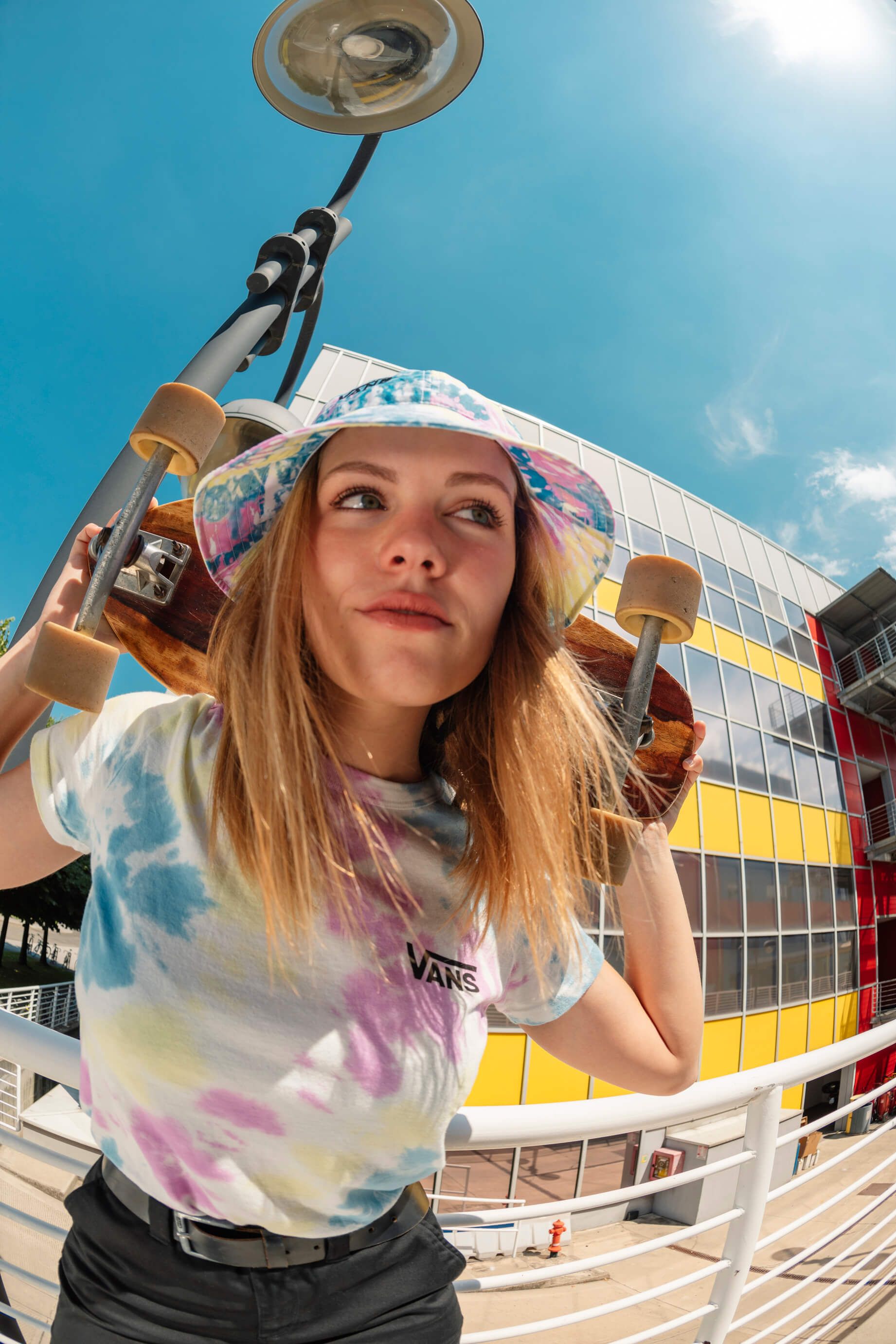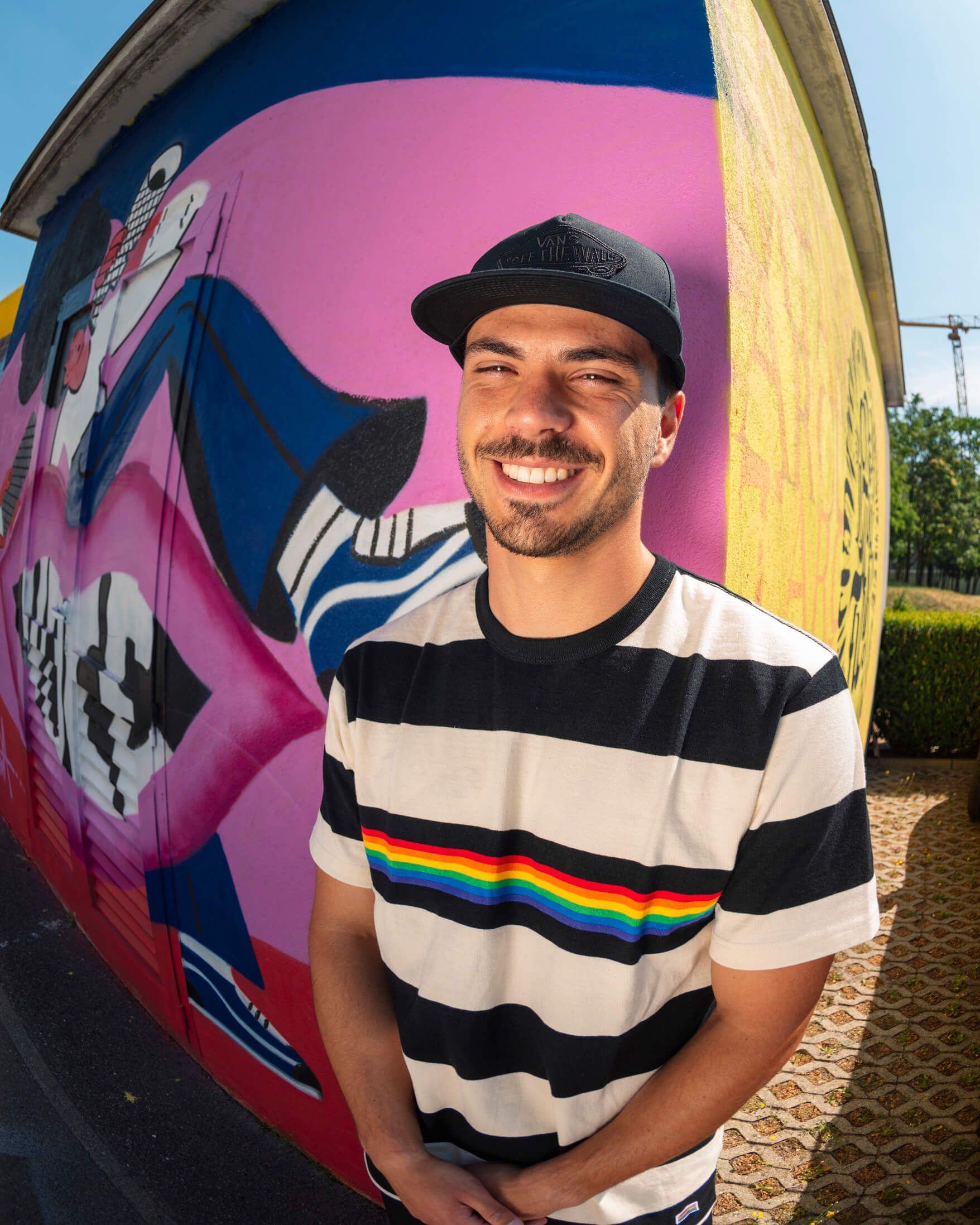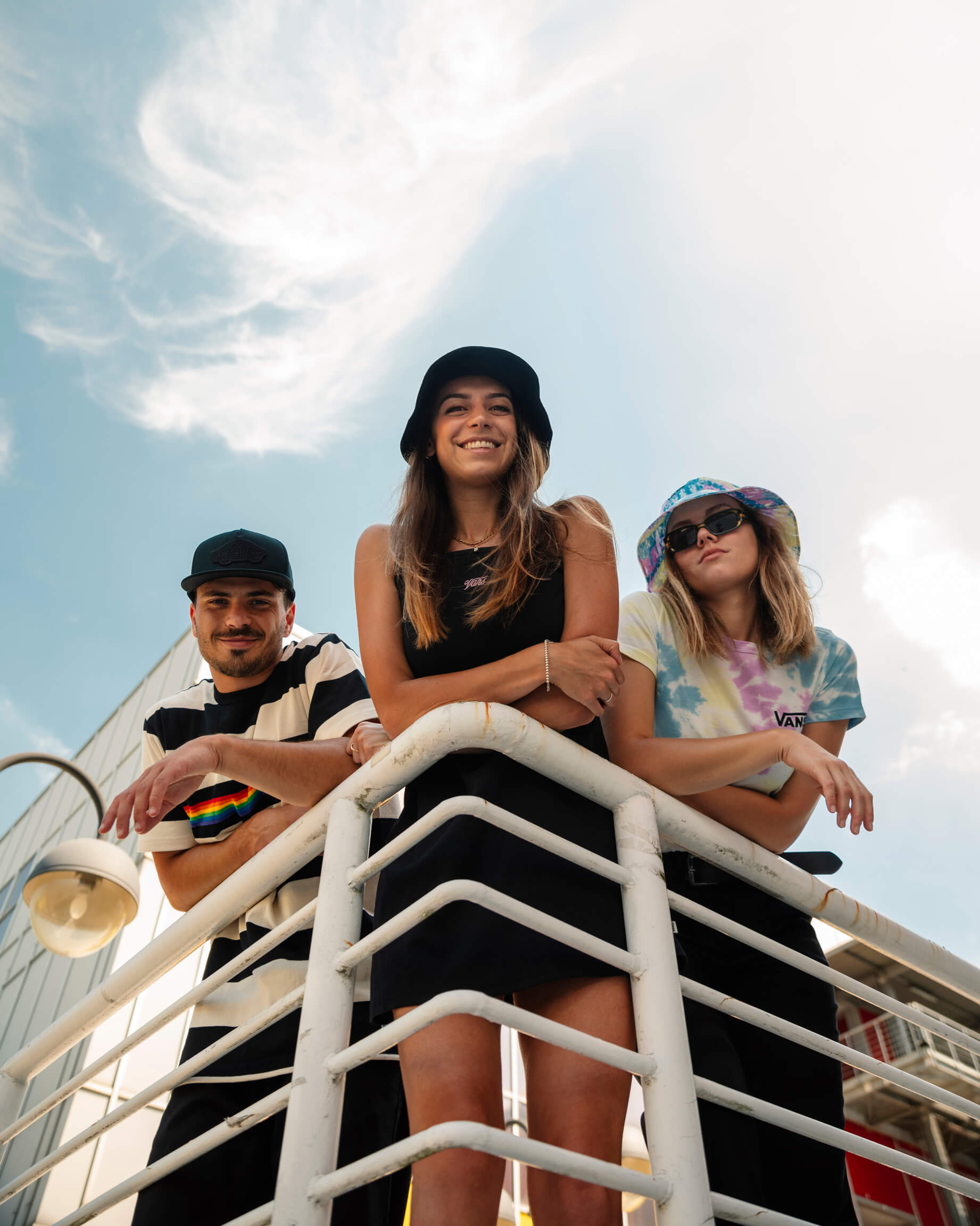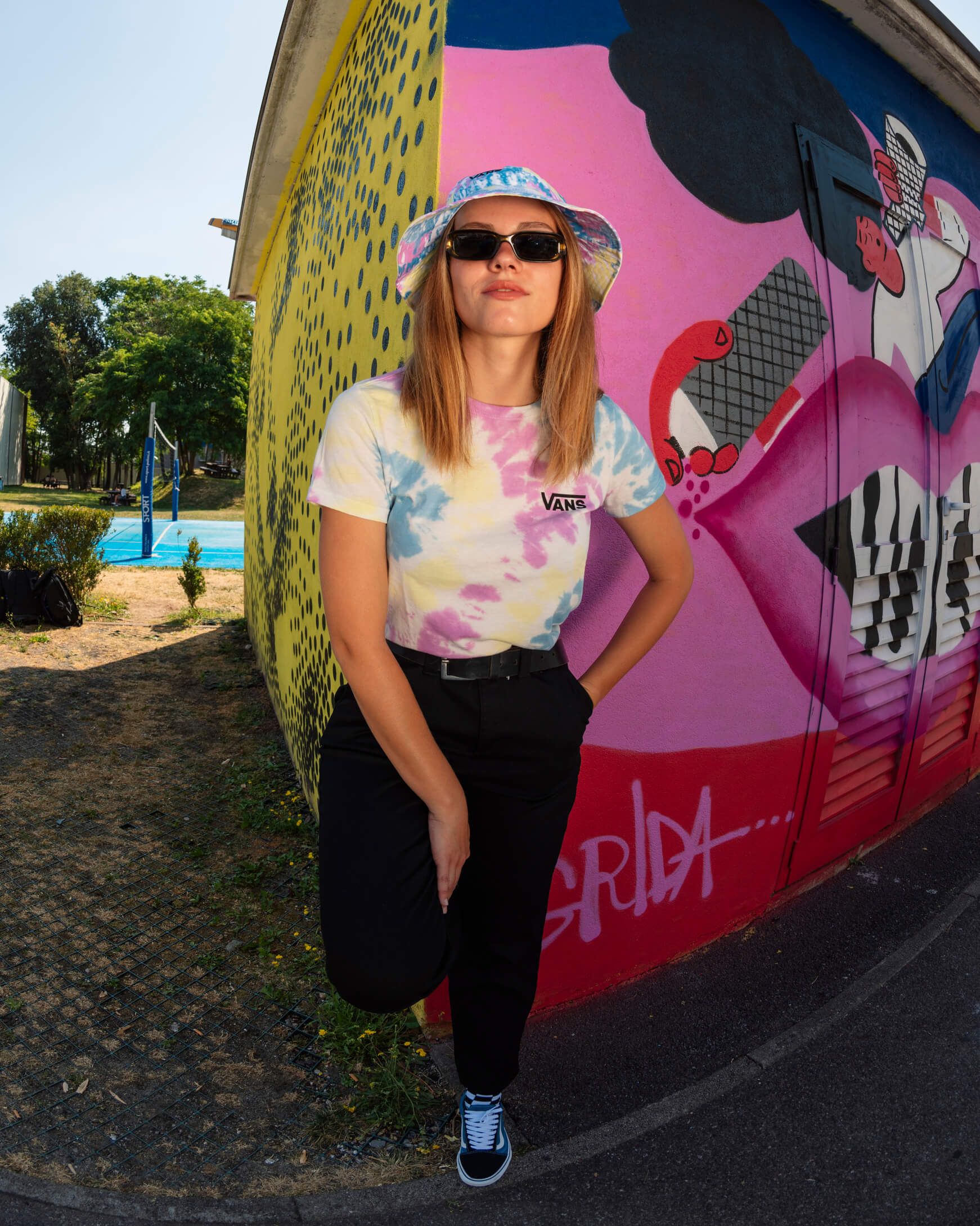 Abbiamo incontrato il trio in total look Vans proprio davanti a Voce, l’opera realizzata nel mezzo del campus e ispirata ai valori del femminismo: “Abbiamo cercato di fare qualcosa che fosse inclusivo e in cui tutti potessero riconoscersi indipendentemente dal genere. Le parole chiave sono energia, grida e voce: l’idea è di spingere le persone a far sentire la propria voce con energia, positività e colori."