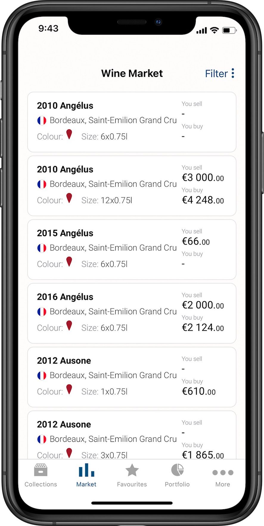 Ispirati dal successo dal successo di piattaforme come StockX, tra le nuove app per il trading del vino c’è Vindome, una delle più semplici e chiare da usare che offre la possibilità di entrare rapidamente nel mercato grazie ad investimenti attraverso due tipologie di approccio. La modalità Collections offre l’opportunità di accedere ad assortimenti di vini suddivisi per budget ed orizzonti temporali di investimento calibrati. Una modalità ideata principalmente per i neofiti, che consente di conoscere i vini e le principali meccaniche del mercato e di iniziare a creare un portfolio equilibrato di fine wines. Vindome Live Market permette invece di operare in un vero e proprio wine market in tempo reale, navigando fra centinaia di etichette e dove è possibile acquistare direttamente al prezzo di mercato o fare un’offerta, senza investimenti minimi richiesti.