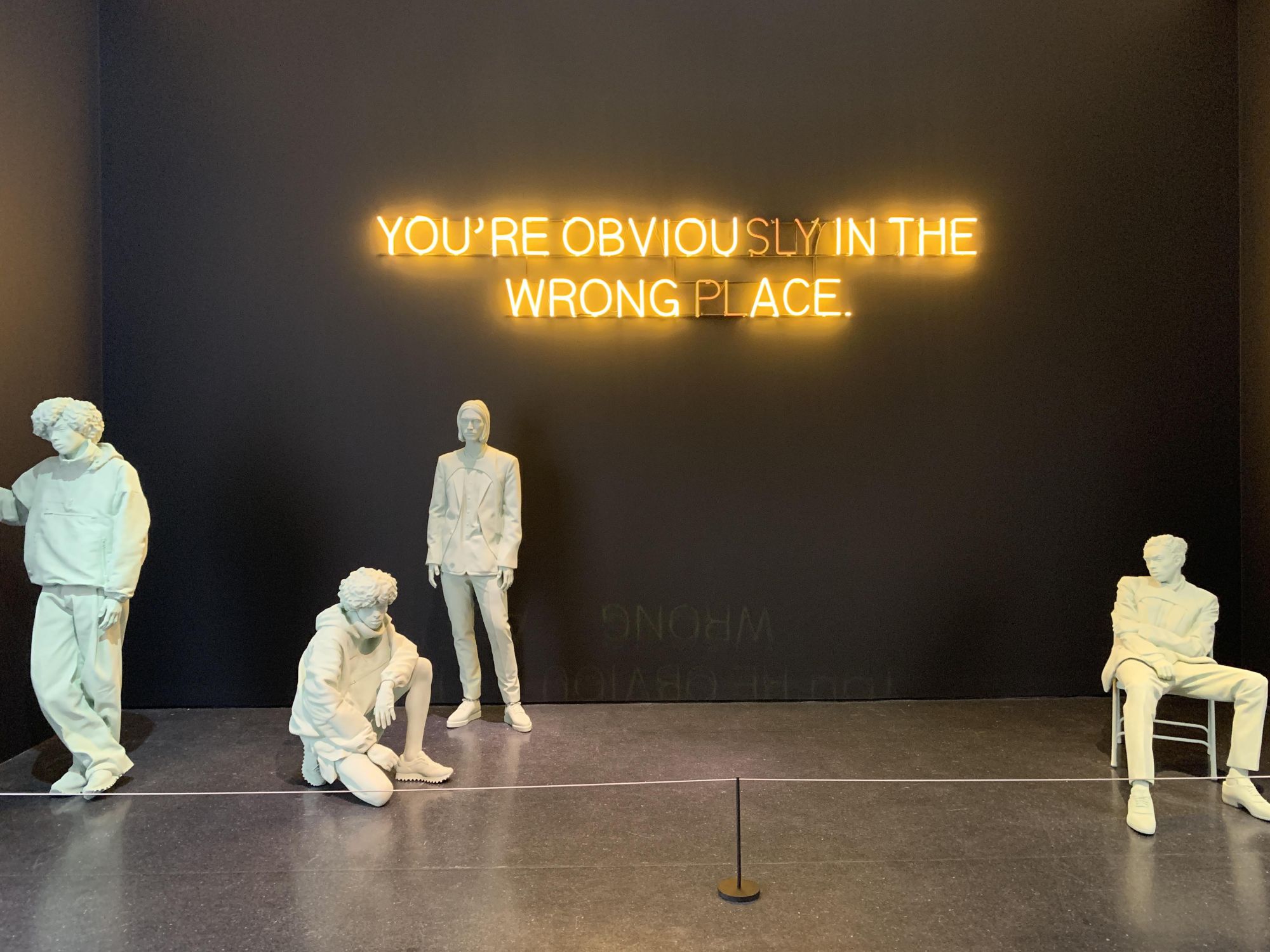 Cosa succede quando a gentrificare un quartiere sono gli afroamericani? Dove si posiziona l’arte nel processo di riappropriazione degli spazi? Cosa succede se si prova a utilizzare l’arte nera come commodities per aumentare il valore del proprio brand? Quando Brianna Cartwright, partner di Anthony McCoy - il nuovo protagonista di Candyman - e gallerista, viene invitata al MCA di Chicago per discutere di potenziali sinergie lavorative, finisce con il parlare di una possibile mostra del suo compagno davanti all’opera che forse più d’ogni altra ha rappresentato la gentrificazione dell’arte moderna: un gigantesco neon luminoso raffigurante la frase “You’re obviously in the wrong place”, parte dell'installazione di Virgil Abloh per la sua personale “Figures of Speech” tenuta proprio nel museo della sua città d’origine.
