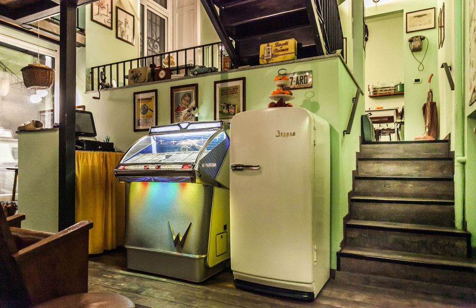 Tutto ci riporta alla familiarità di un ambiente in cui, dagli arredi in formica alle stoviglie spaiate, tutto grida anni ‘60. Oltre l'arredo originale di quegli anni il punto forte di questo intimo locale sono le ricette, rivisitate con gusto contemporaneo, comprensive di pane (le introvabili “michette” sfornate esclusivamente per il piccolo locale da uno storico fornaio di Milano) e di caffè rigorosamente preparato con la mitica Moka Bialetti, da sorseggiare circondati da alcuni degli oggetti e elettrodomestici che hanno fatto la storia del design, dal jukebox al telefono Bigrigio.
