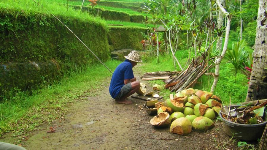 Percorro strade dissestate, attendo che un branco di vacche attraversino la strada e la visione di tante istantanee che prendono spunto dal colorato spettacolo della natura mi trasportano nel colorato universo dell’anima della Bali che avevo sognato. L'eccitazione è fortissima, non so, come vedere Mcqueen tornare in passerella e ripulire i bozzetti di Sara Burton. Una spiaggia bianco perla , contaminata solo da tracce di sabbia nera vulcanica, acque turchesi che fanno strizzare gli occhi, un unica piccola struttura in bambù che serve pesce alla griglia, Coca cola e Cocco. Uccelli, scimmie , scoiattoli e rettili vivono liberi, alberi che crescono fino al mare ed un quieto silenzio che finalmente mi da il benvenuto.