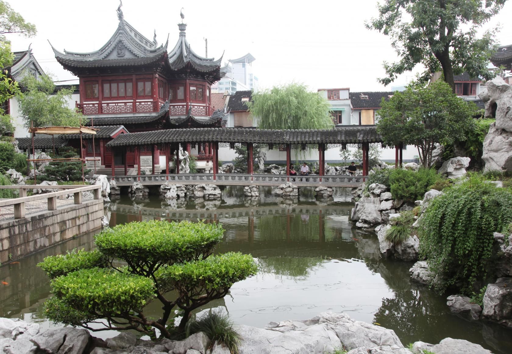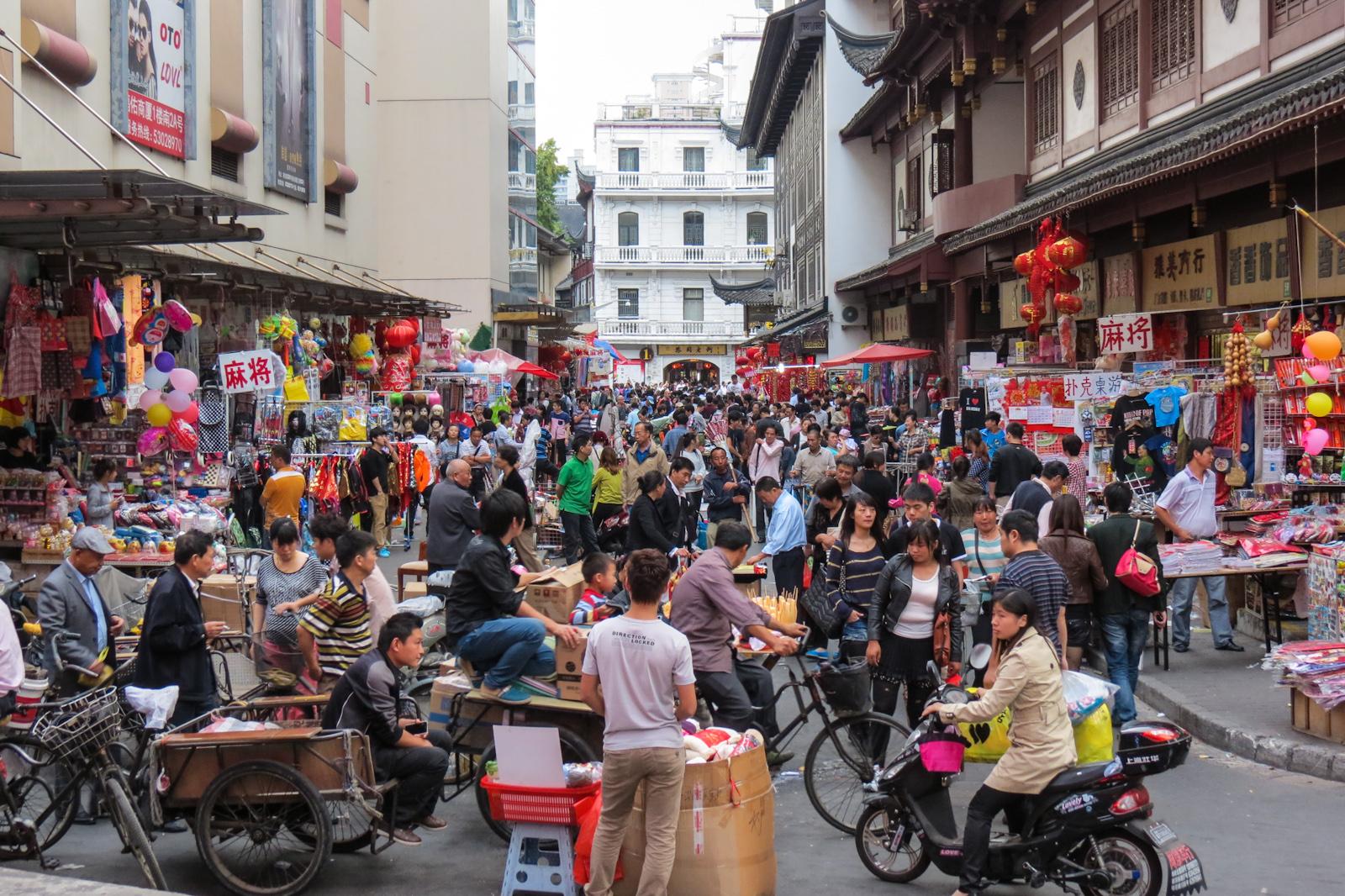 In Yuyuan Garden invece, come in altri quartieri non ancora interessati dalla crescita economica, tutto ha un aspetto diverso. I grattacieli lasciano spazio ad edifici molto più bassi e a volte malmessi che sembrano non appartenere a quel lusso sfrenato che il centro finanziario, con la sua imponenza, sembra gridare a tutto il mondo. I ristoranti sono piccole carriole che vendono "jiaozi", tipici ravioli cinesi al vapore, frutta, carne e qualsiasi tipo di cibo commestibile da poter fare caramellato o sulla piastra. Senza dimenticare la pelle di pollo e la banana fritta, letteralmente adorate dai cinesi. Tutto ovviamente a prezzi stracciati.
