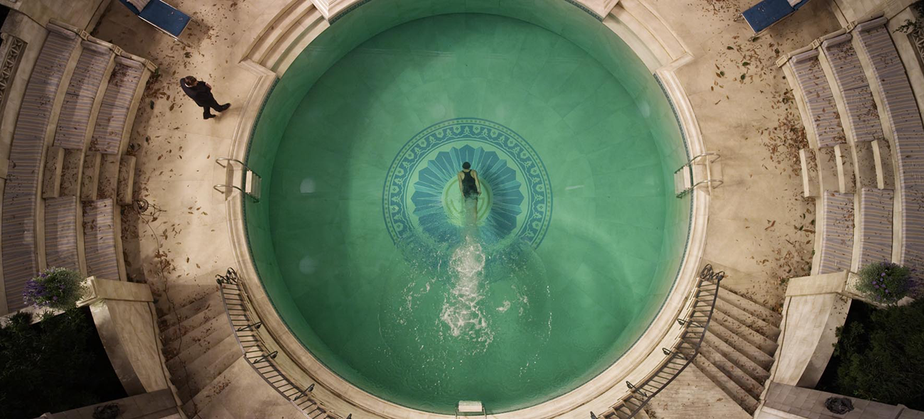 Uno dei grandi classici del cinema americano, si apre con il cadavere del protagonista, Joe Gillis, che galleggia sul pelo dell’acqua in una piscina di una villa sul Sunset Boulevard – los Angeles. La piscina come luogo del delitto, come testimone silenziosa in un noir che è un lungo flashback rivissuto in prima persona dal personaggio di cui facciamo la conoscenza da prono, sul pelo dell’acqua, nella scena iniziale.