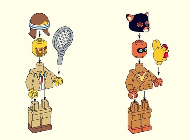 Se i protagonisti dei film di Wes Anderson fossero pipotti LEGO, sarebbero più o meno così.