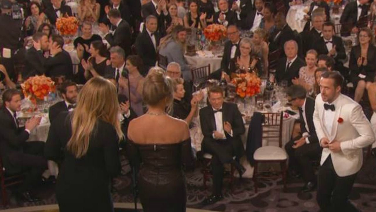 Ryan Gosling ha vinto il premio come Miglior Attore e si è confermato essere l'uomo che tutte noi vorremmo al nostro fianco, dedicando il suo discorso di ringraziamento alla moglie Eva Mendes. Ma mentre Ryan Gosling saliva sul palco per ritirare il premio, il pubblico ha notato e immortalato un bacio appassionato tra gli attori Andrew Garfield e Ryan Reynolds, sotto gli occhi di Blake Lively, la signora Reynolds, molto divertita dalla gag.