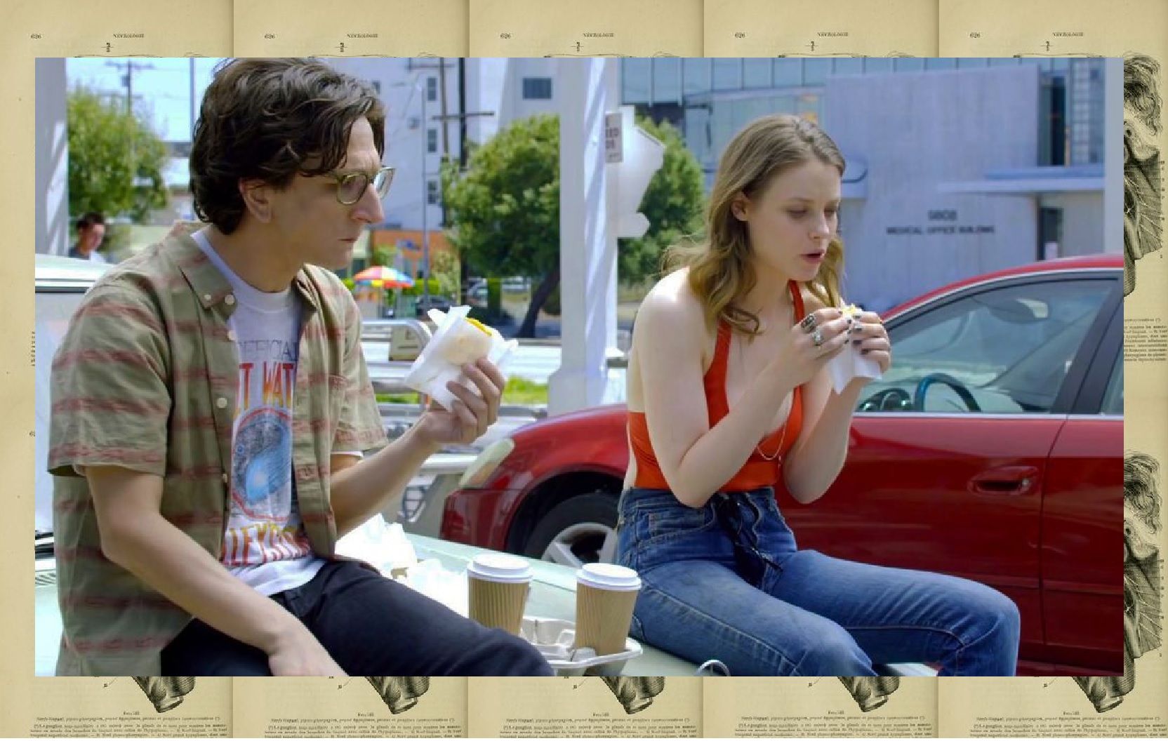 "I'll Fight". I'll go, I'll go, I'll go, I'll go for you. I'll fight, I'll fight, I'll fight, I'll fight for you. I'll kill, I'll kill, I'll kill, I'll kill for you.I'll die, I'll die, I'll die, I'll die for youI will, I will, I will". Jeff Tweedy dei Wilco canta. Gus e Mickey si baciano fuori da un supermercato, tra le buste della spesa poggiate a terra e i distributori di benzina. Lei ha appena confessato di avere una dipendenza da droghe, alcool, sesso, amore e "di aver bisogno di stare da sola, tipo, per un anno, per cercare di venire a capo", a Gus non importa. Sa riempire il suo vuoto. E nessuno dice che sarà facile. La loro è una sbilenca storia d'amore e va bene così. C’è musica tra i due. E c’è nella colonna sonora: Earth, Wind & Fire, Jamie XX, Eternal Summers, Breeders, Eddie Vedder, Violent Femmes, Roy Orbison, Paul McCartney, composizioni originali di Lyle Workman...Suonano le t-shirts con le stampe di The Beach Boys, Circle Jerks o Foo Fighters, ma anche musicisti in carne ed ossa come Mark "E" Everett degli Eels e Jennifer Herrema la frontwoman dei Royal Trux che in Love fanno piccoli cammei.