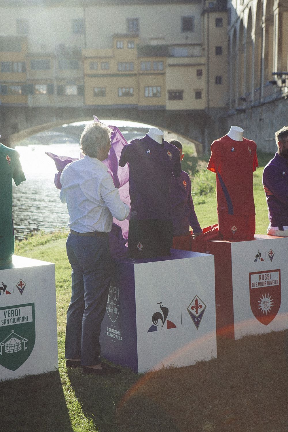 Nella straordinaria location del Circolo Canottieri con vista sul Ponte Vecchio, la Fiorentina e Le Coq Sportif hanno presentato le divise della Viola per la stagione 2018-19. Il connubio tra il brand francese e la Fiorentina celebra per il secondo anno consecutivo la formula delle maglie da trasferta dedicate alla città e al Calcio Storico Fiorentino, che tanto sono state apprezzate dai tifosi la scorsa stagione.