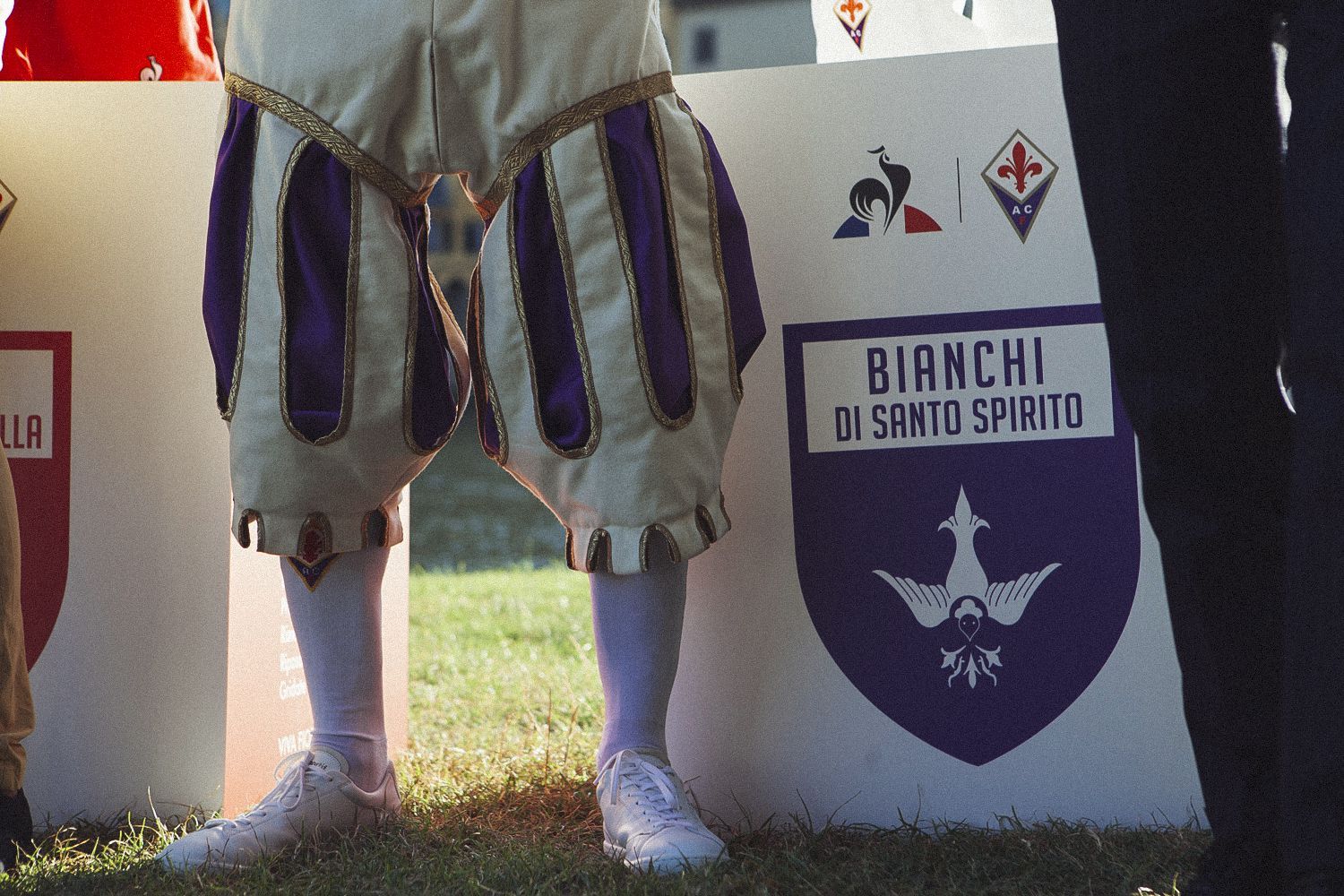 Le divise saranno quattro da trasferta dedicate ai colori dei quattro quartieri storici – bianco, rosso, verde, azzurro – che sono rappresentati su ciascuna maglia dai rispettivi nomi sul retro del colletto e da ciascun simbolo sulla schiena. Ad accomunarle il Saluto alla Voce - le parole che aprono tutte le partite del Calcio Storico - sul fianco destro e le strisce viola che incorniceranno il numero e che insieme all’ampio colletto ricordano lo stile delle divise dei calcianti. Ancora non ci sono notizie riguardo il font che verrà usato sulle maglie - anche se è lecito aspettarsi qualcosa di vintage - e sullo sponsor tecnico che sostiuirà Folletto.