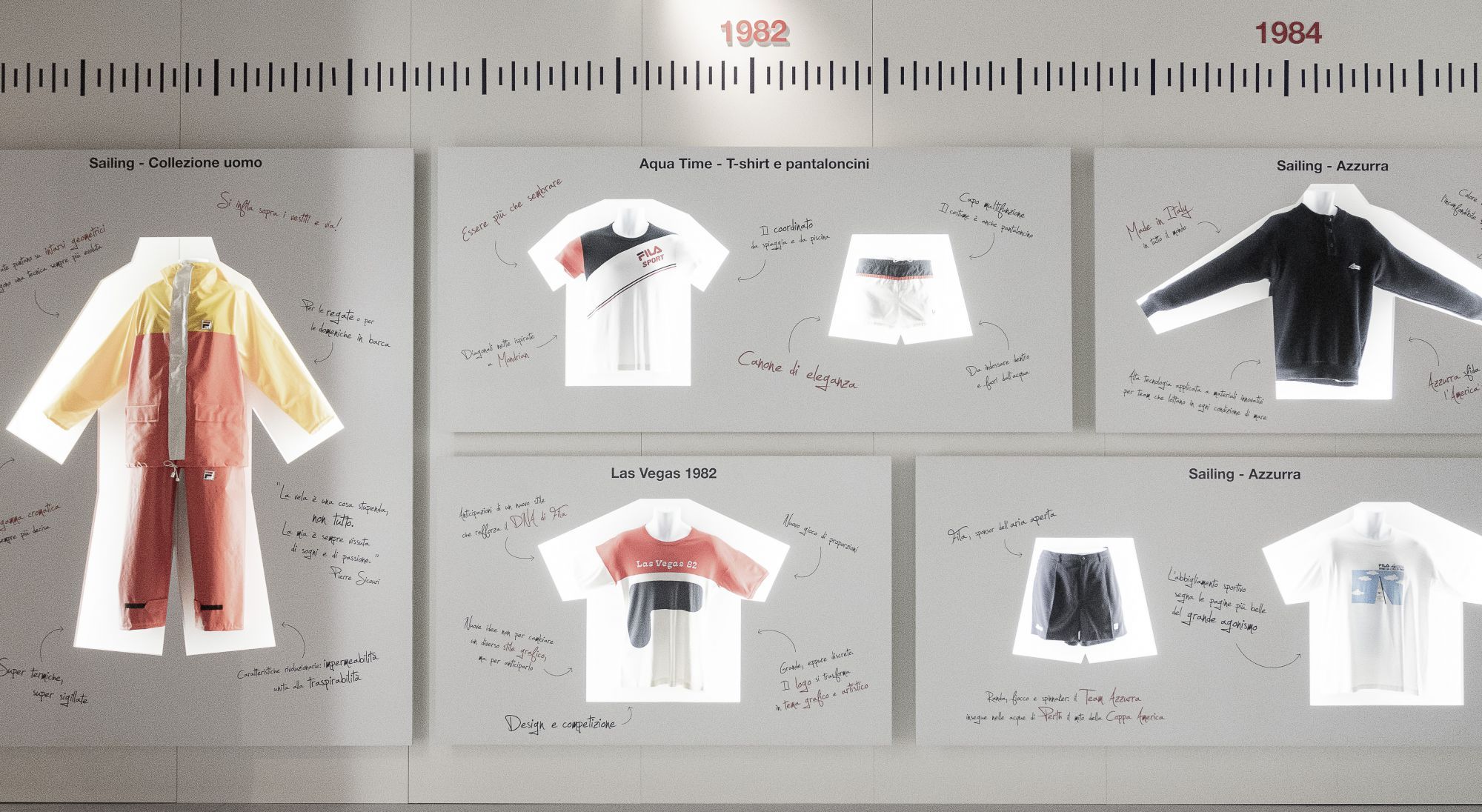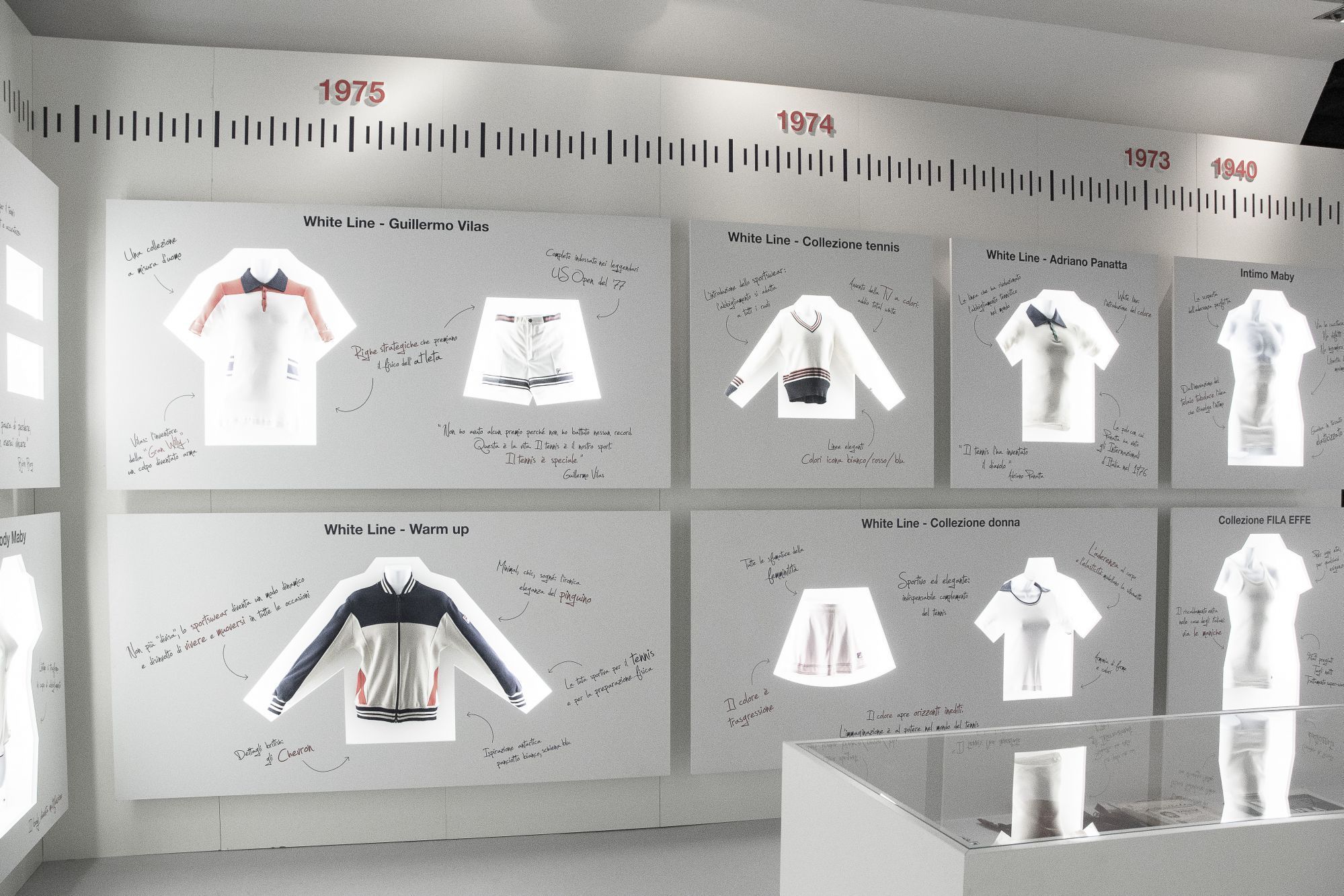 La mostra si sviluppa in stanze diverse, tra installazioni video, immagini d'archivio, e pezzi originali esposti. Il percorso si conclude proprio su una passerella, in cui sono presentati i capi più iconici di FILA, da cui i due direttori creativi, Antonino Ingrasciotta e Josef Graesel, hanno preso ispirazione per quella che sarà la collezione "Iconic" SS19 che debutterà alla Fashion Week.