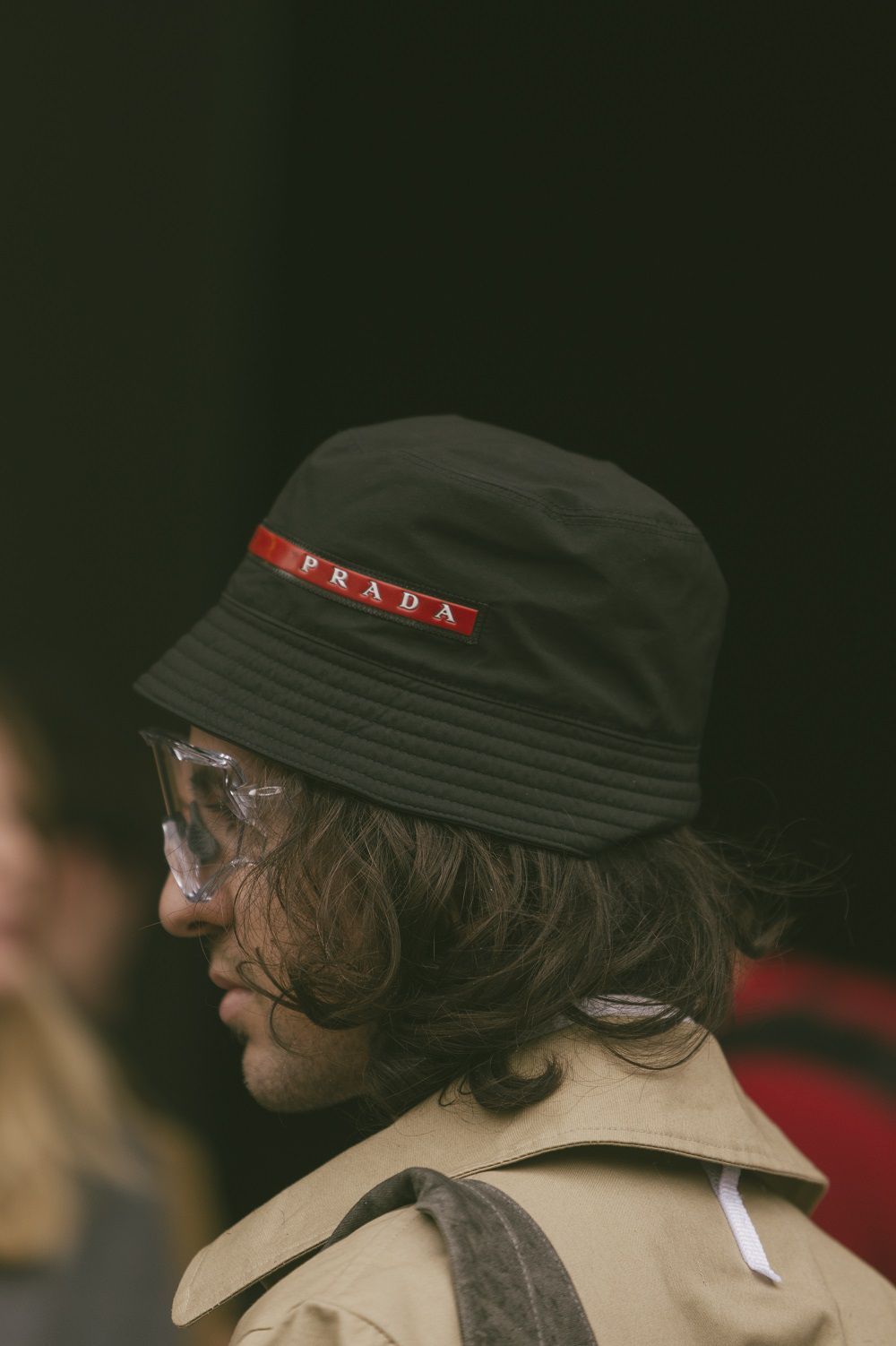 1) Gli accessori fanno la differenza. Via libera, dunque, a bucket hat Prada, a sunglasses Carrera e ai socks a vista;