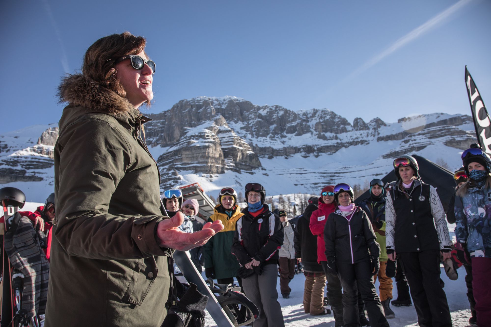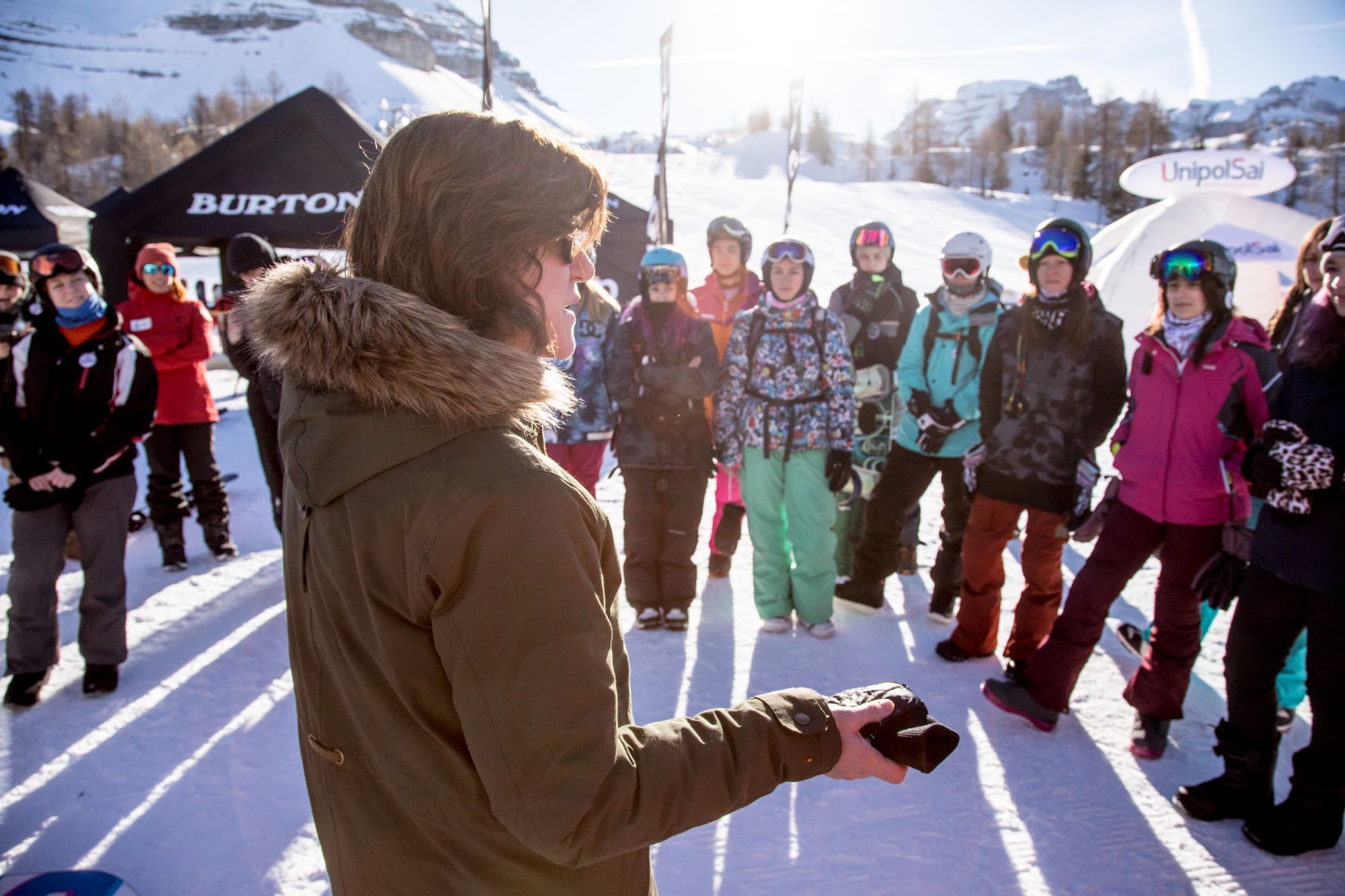 Una delle iniziative più interessanti e coinvolgenti del Burton Mountain Mash è stato il Girl Camp. Una vera e propia lezione di snow per sole donne, alla quale ha partecipato simbolicamente il Co-Ceo e Co-Owner del brand americano: Donna Carpenter. Un modo unico per parlare del ruolo della donna all'interno dell'azienda e dell'importanza della parità dei sessi.