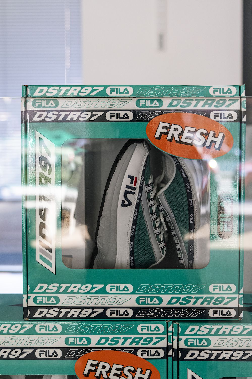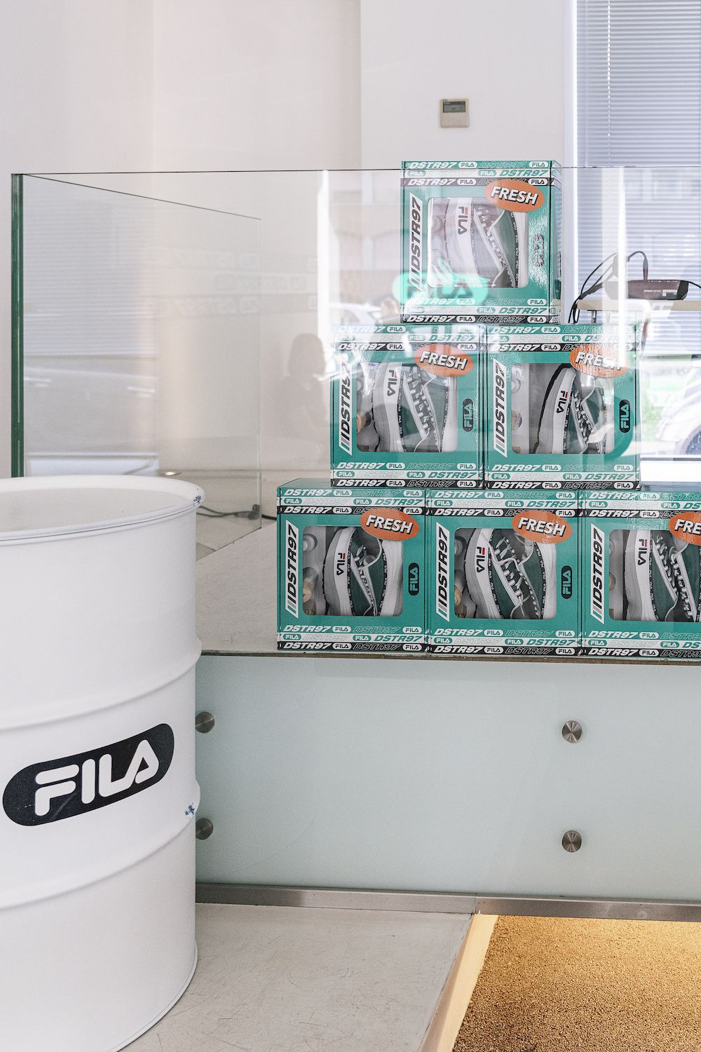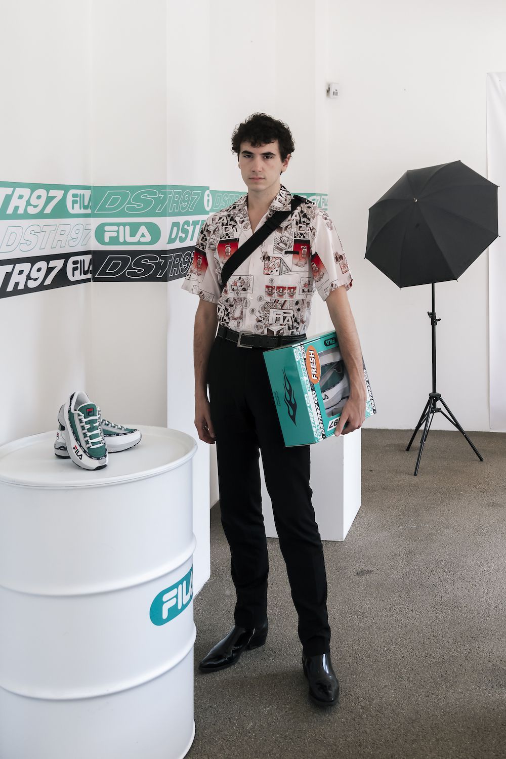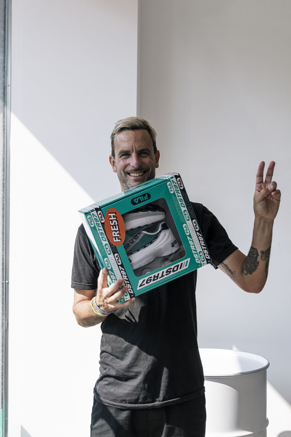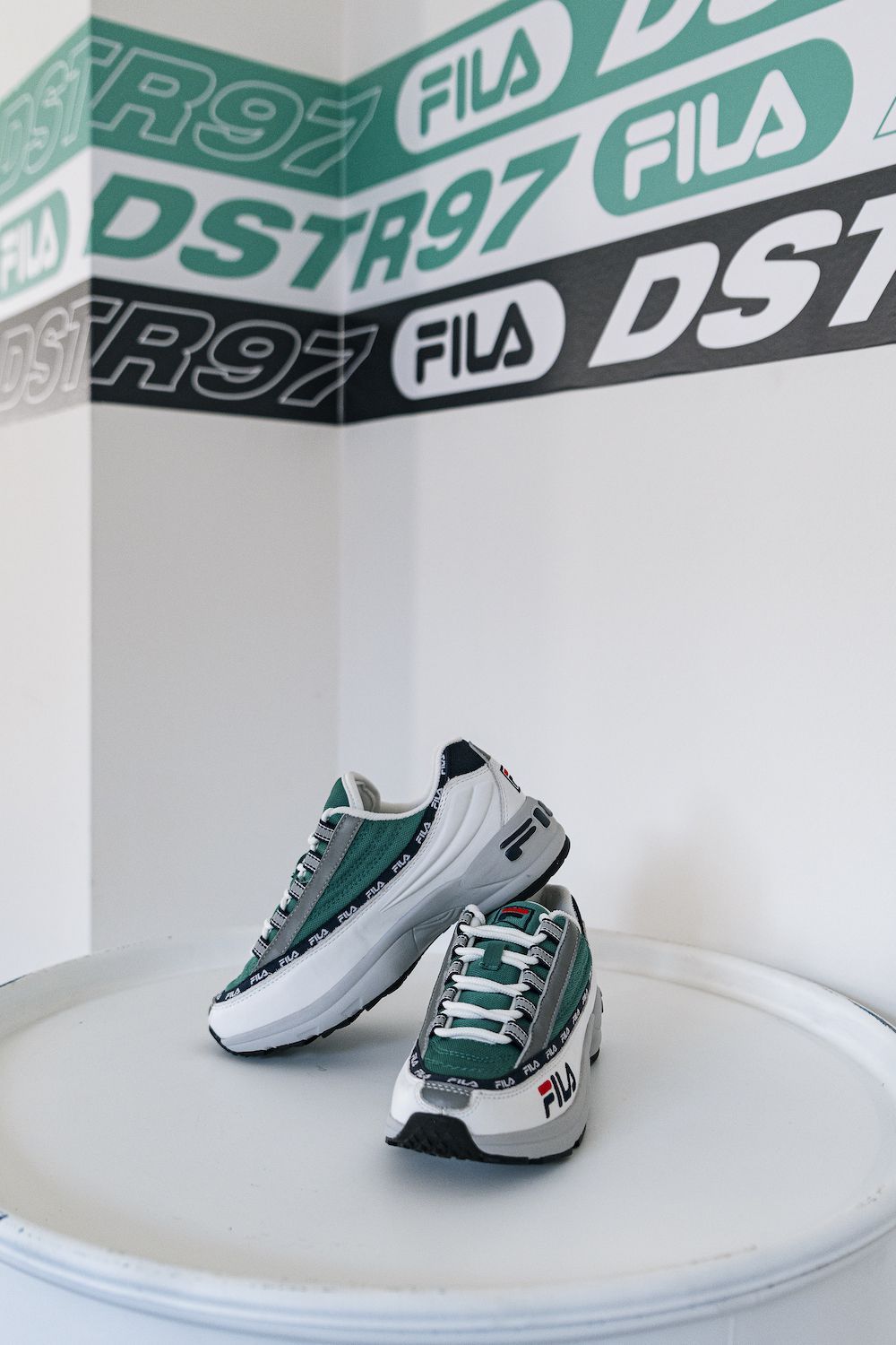 FILA ha voluto celebrare in modo inedito il lancio delle nuove colorway della sua sneaker DSTR97, questa volta declinata nei toni del bianco e del verde. La scarpa è stata regalata in un box speciale, fornito di cleaning kit, ad alcuni ospiti dell'evento.
