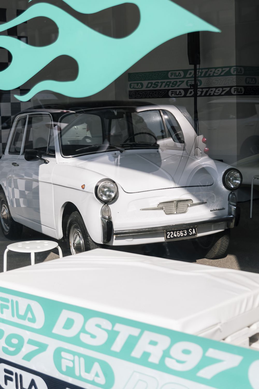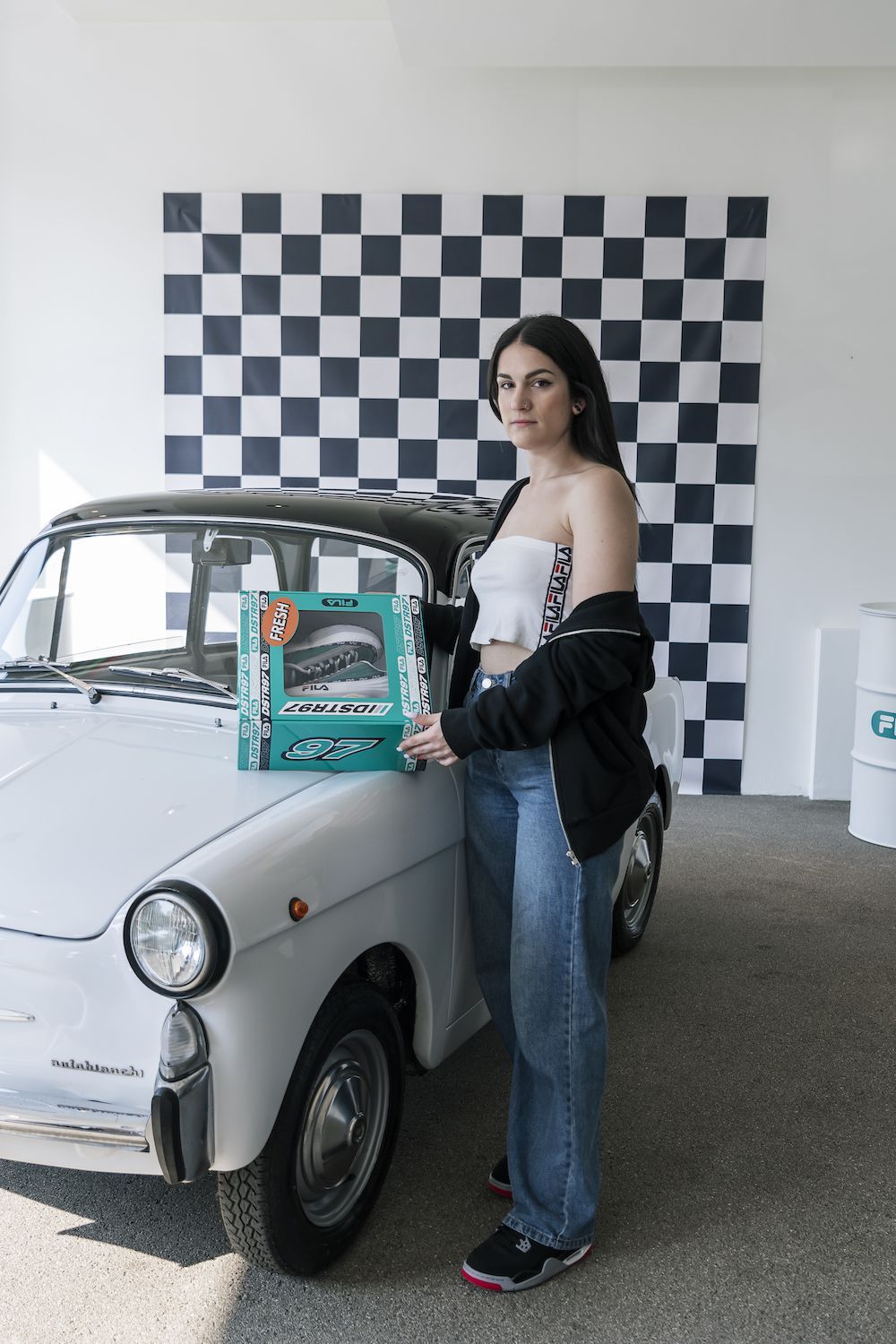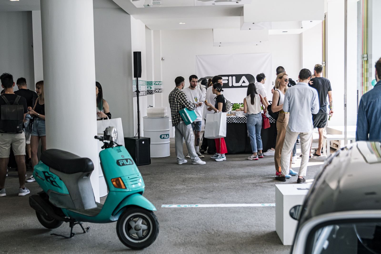 Per sottolineare ulteriormente il rapporto speciale che lega FILA al mondo delle corse e dei motori, il brand ha deciso di organizzare un evento in un vero concessionario di auto, popolato da auto Bianchina vintage. A preparare la colazione ci ha pensato Maurizio Tentella di Spacedelicious, proponendo un menù perfettamente bilanciato tra dolce e salato, accompagnato dai frullati di Macha Cafè.