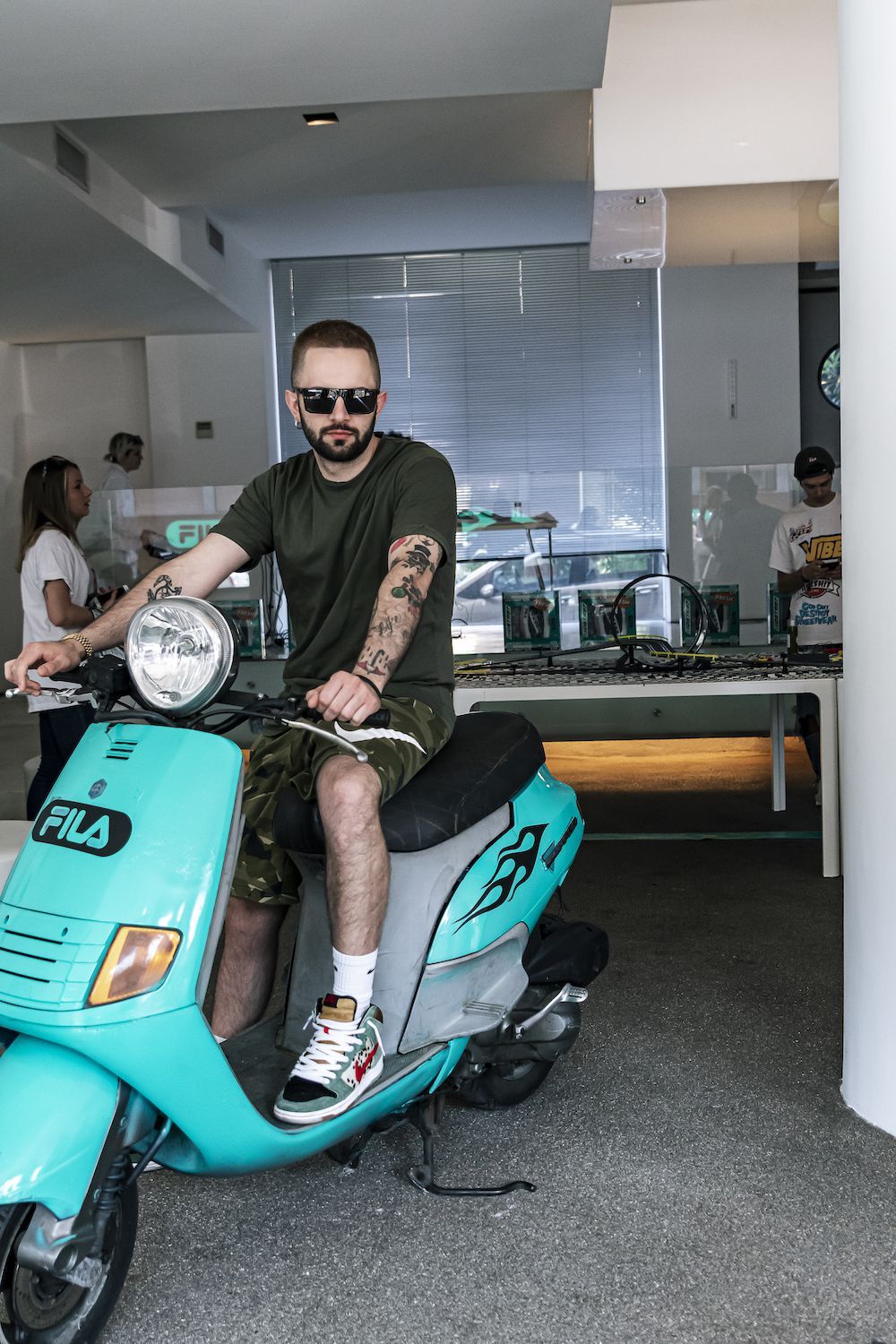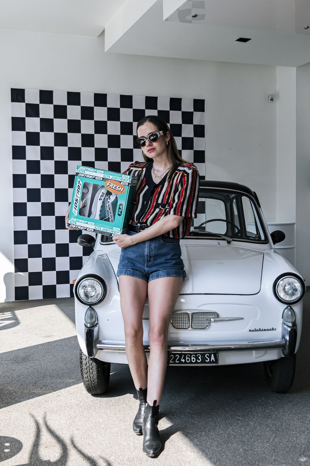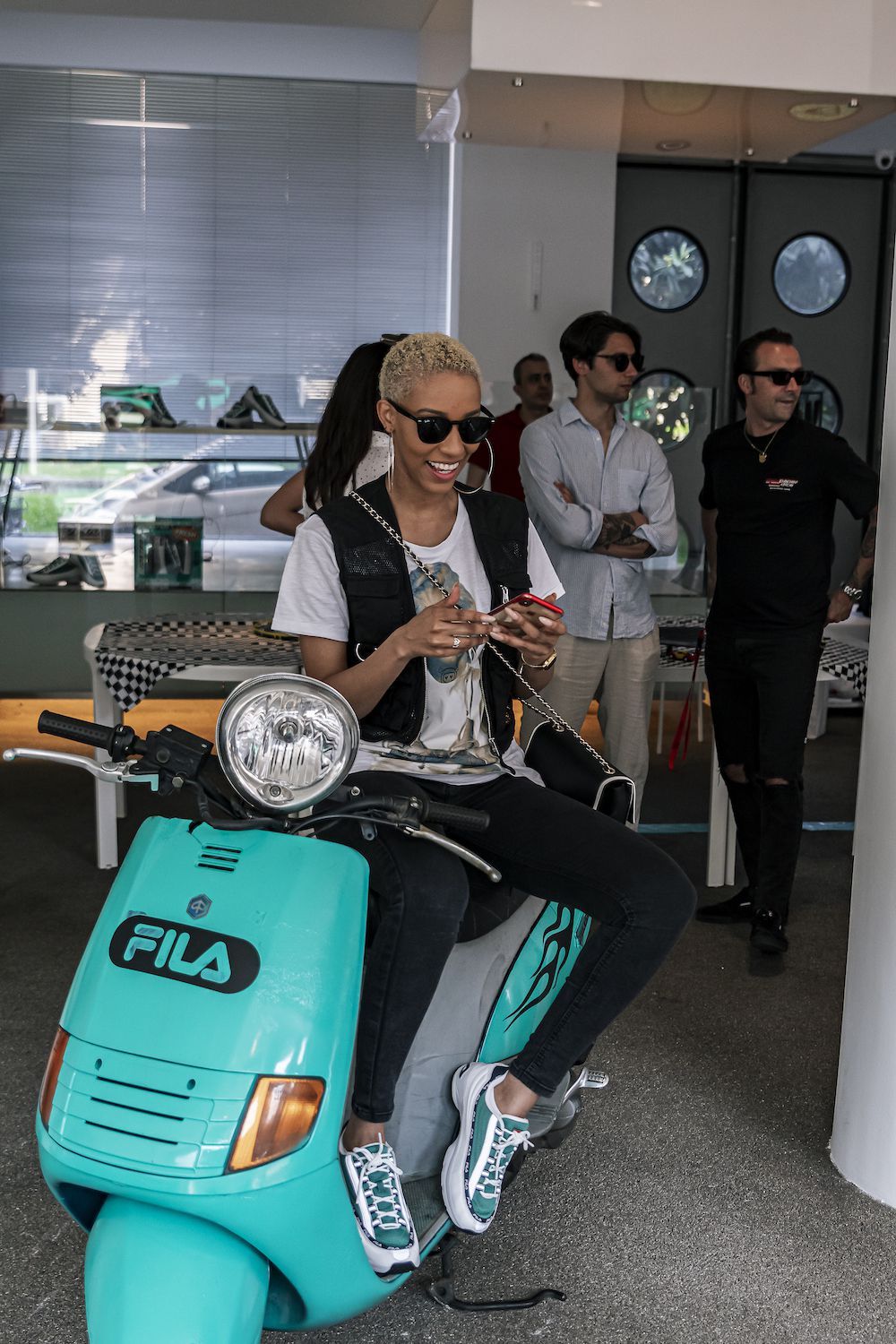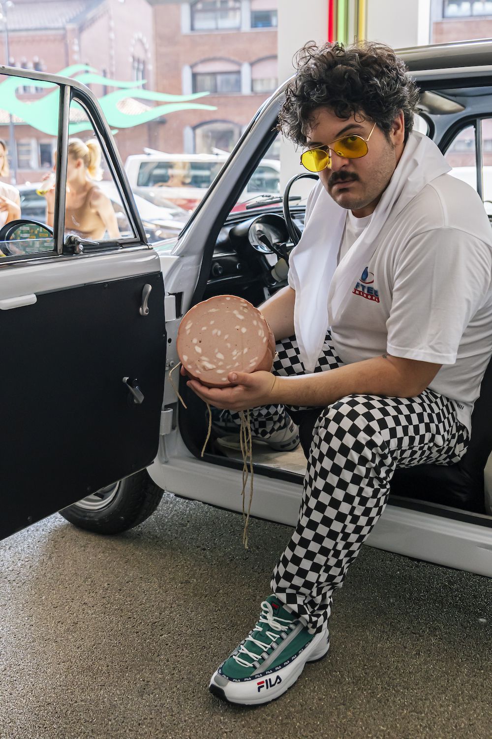 Per sottolineare ulteriormente il rapporto speciale che lega FILA al mondo delle corse e dei motori, il brand ha deciso di organizzare un evento in un vero concessionario di auto, popolato da auto Bianchina vintage. A preparare la colazione ci ha pensato Maurizio Tentella di Spacedelicious, proponendo un menù perfettamente bilanciato tra dolce e salato, accompagnato dai frullati di Macha Cafè.