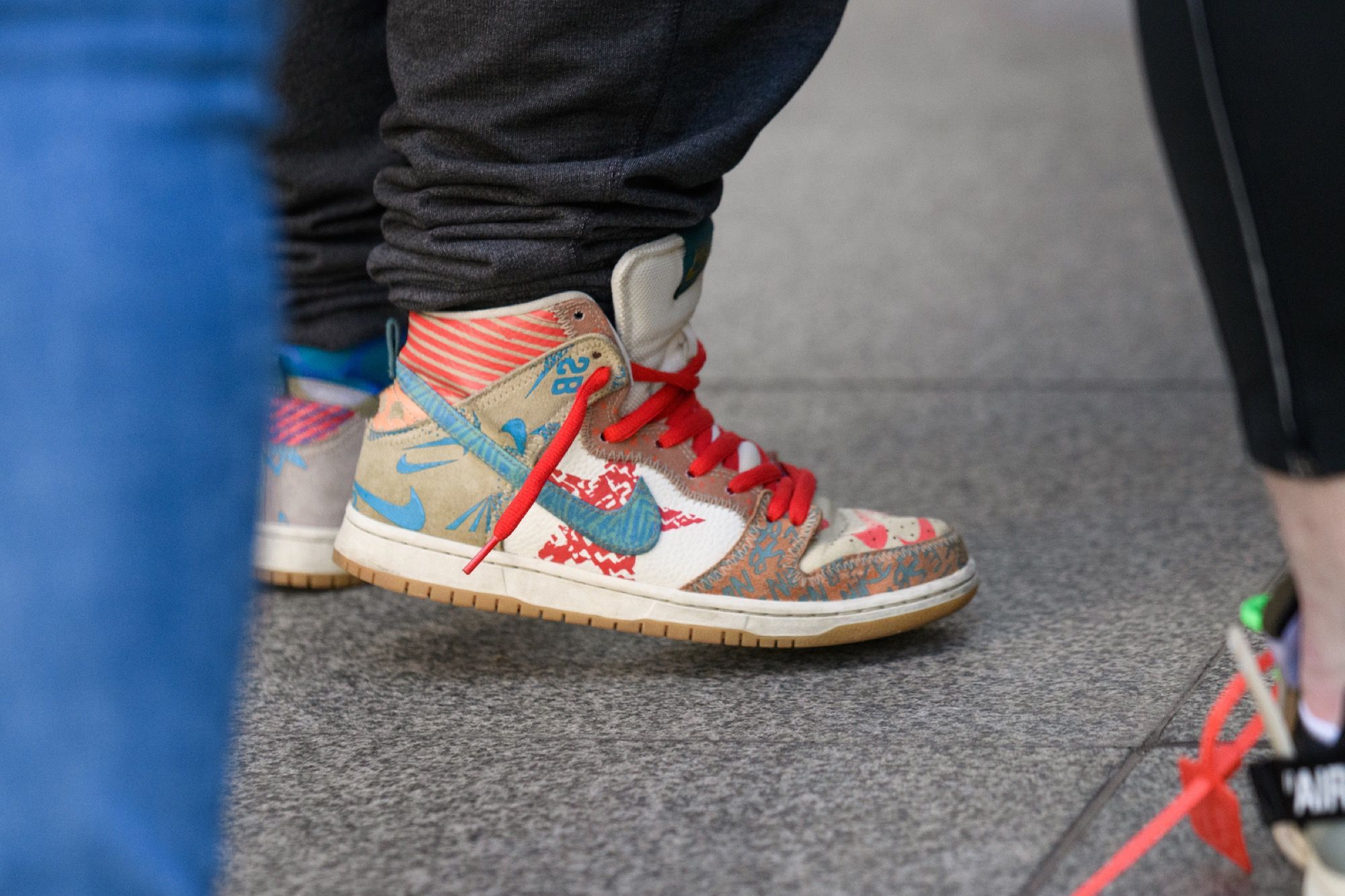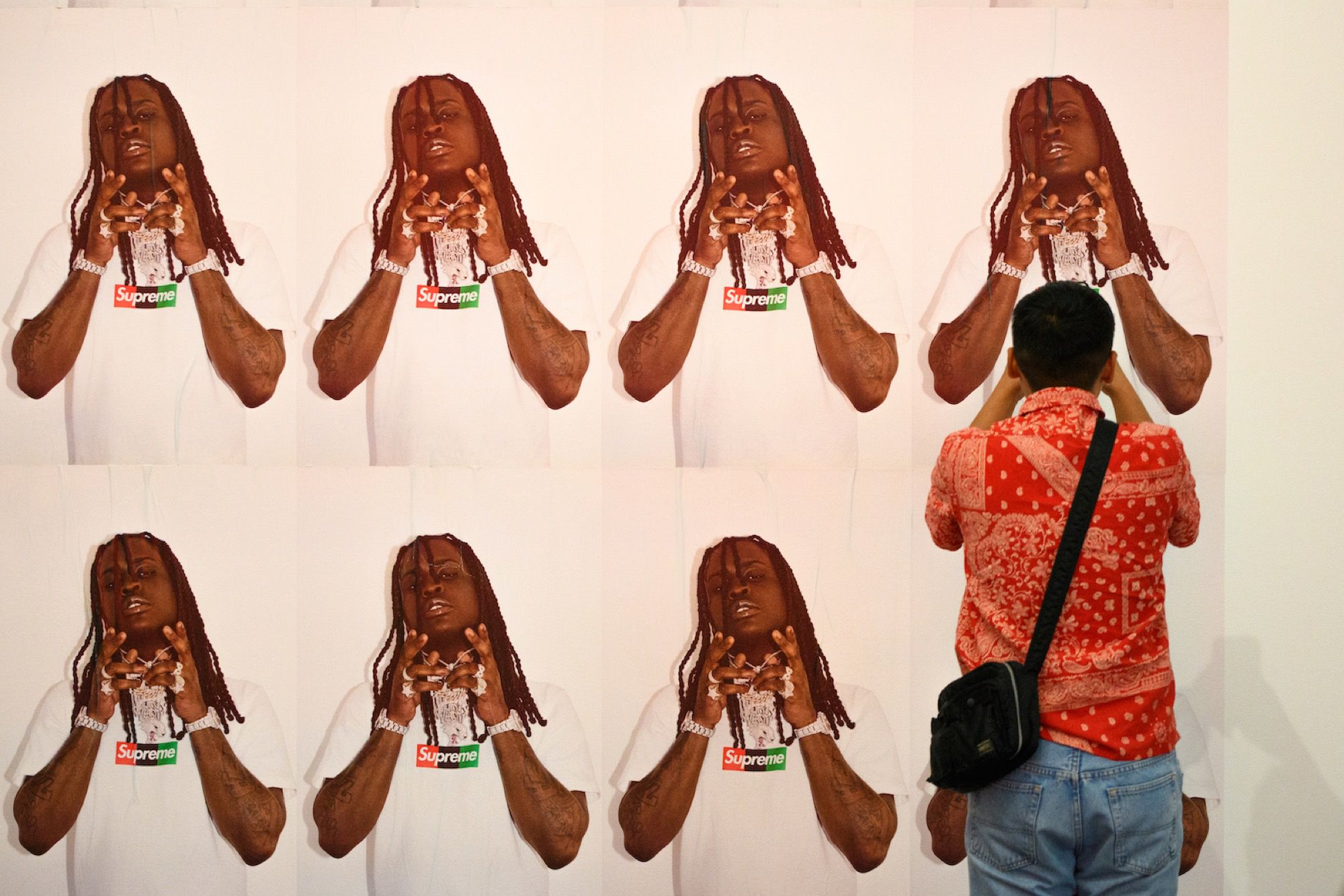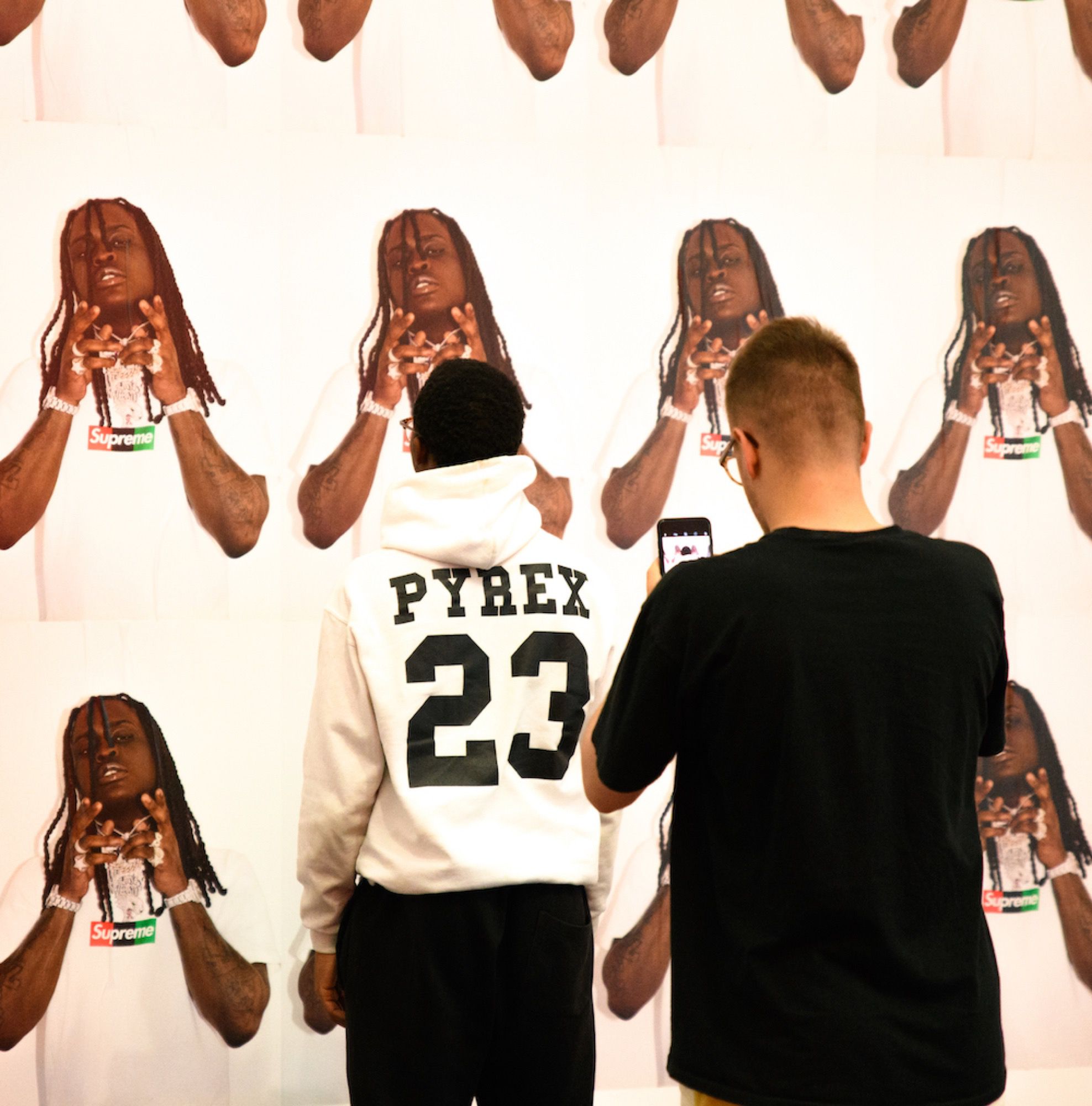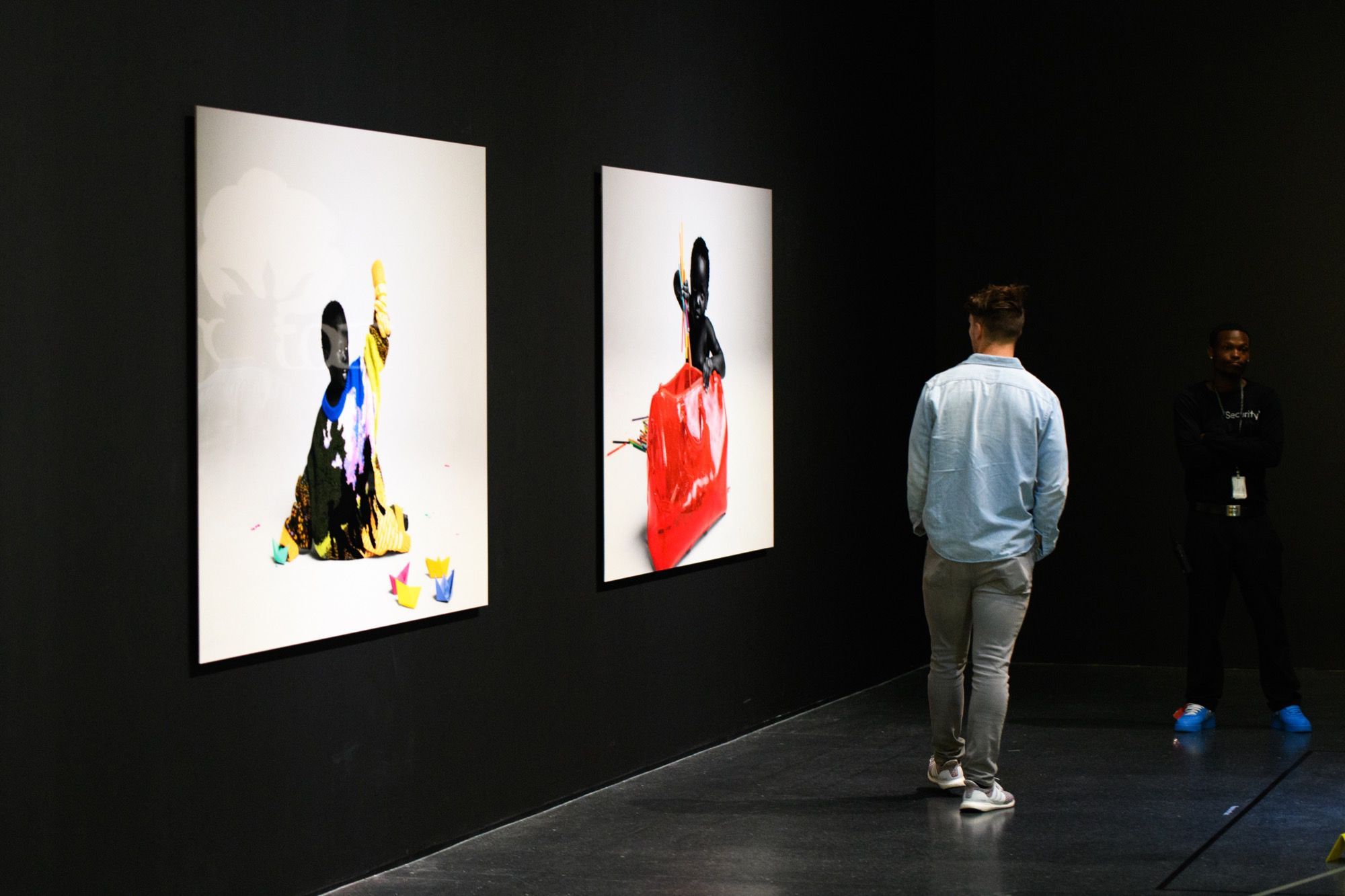 Proprio perché la sua figura è così multiforme la mostra raccoglie oggetti e opere d'arte molto diversi tra loro. Ci sono stampe e quadri che raffigurano le ultime campagne pubblicitarie di Louis Vuitton, vere e proprie installazioni, gli oggetti d'arredo disegnati insieme ad IKEA, la consolle creata per l'occasione con Pioneer DJ, una boxlogo di Supreme mai vista prima, e poi non potevano mancare gli abiti, dal suo primo brand, Pyrex, fino alle ultime creazioni per Louis Vuitton e Off-White. Ma quello che finora ha raccolto la maggior attenzione dei visitatori - in particolare dei fan più giovani di Abloh - è la stanza che ospita le sneaker (tante, molte delle quali inedite) realizzate in collaborazione con Nike.