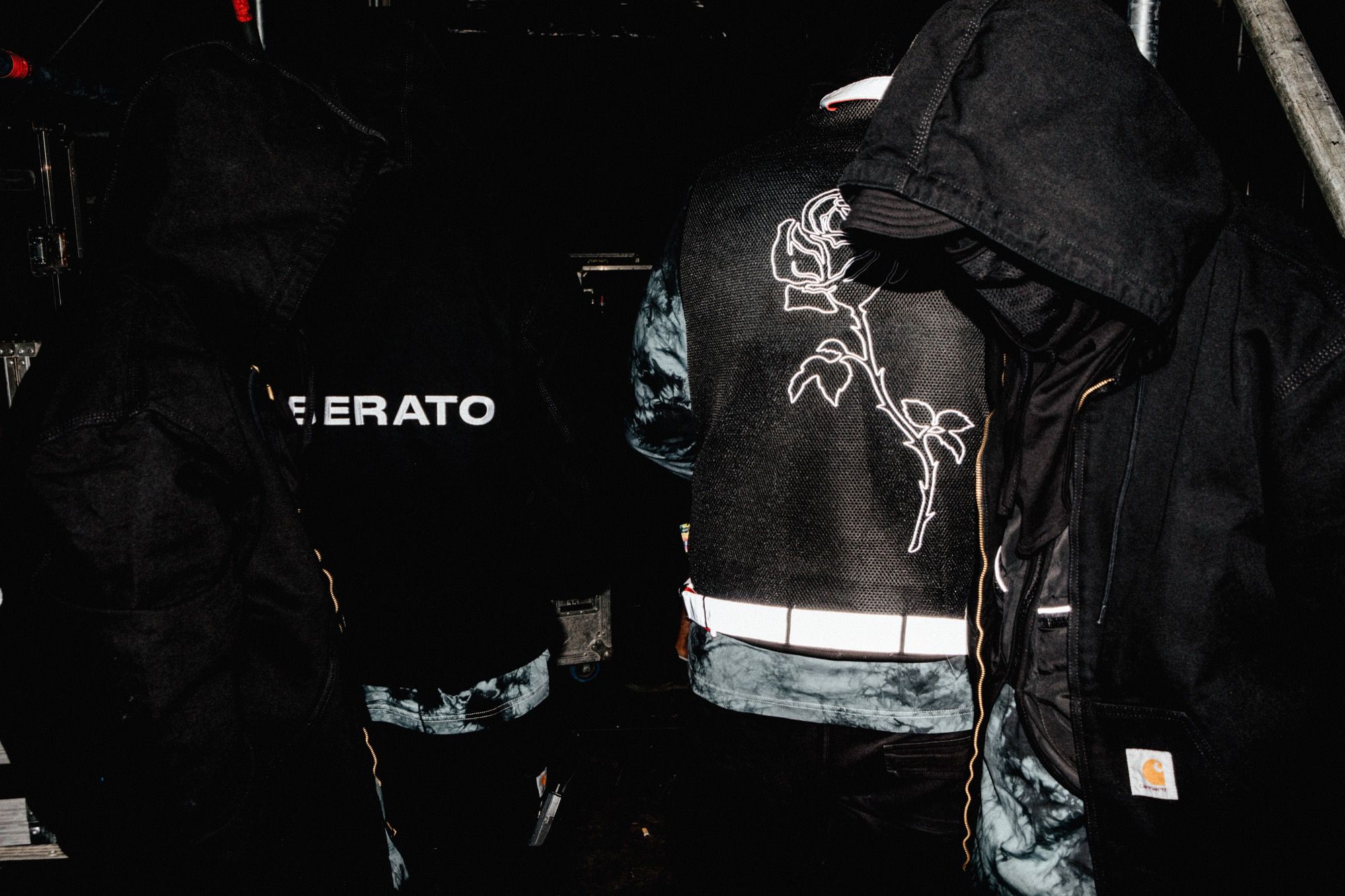 I tre sul palco hanno sfoggiato un nuovo look (styling Antonella Mignogna graphic design that.is.rm): Nike Blazer MID '77 customizzate, cargo pants e bomber Carhartt con la scritta LIBERATO, maglia tie-dye e un utility Vest con la rosa iridescente. La testa e il volto erano celati da una balaclava tie-dye e un hoodie.