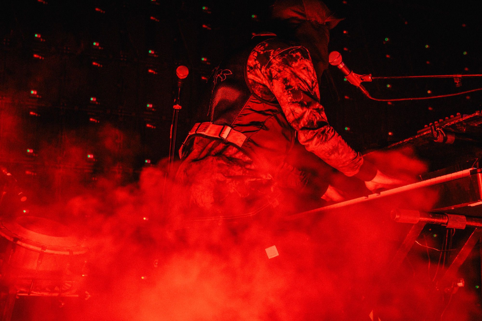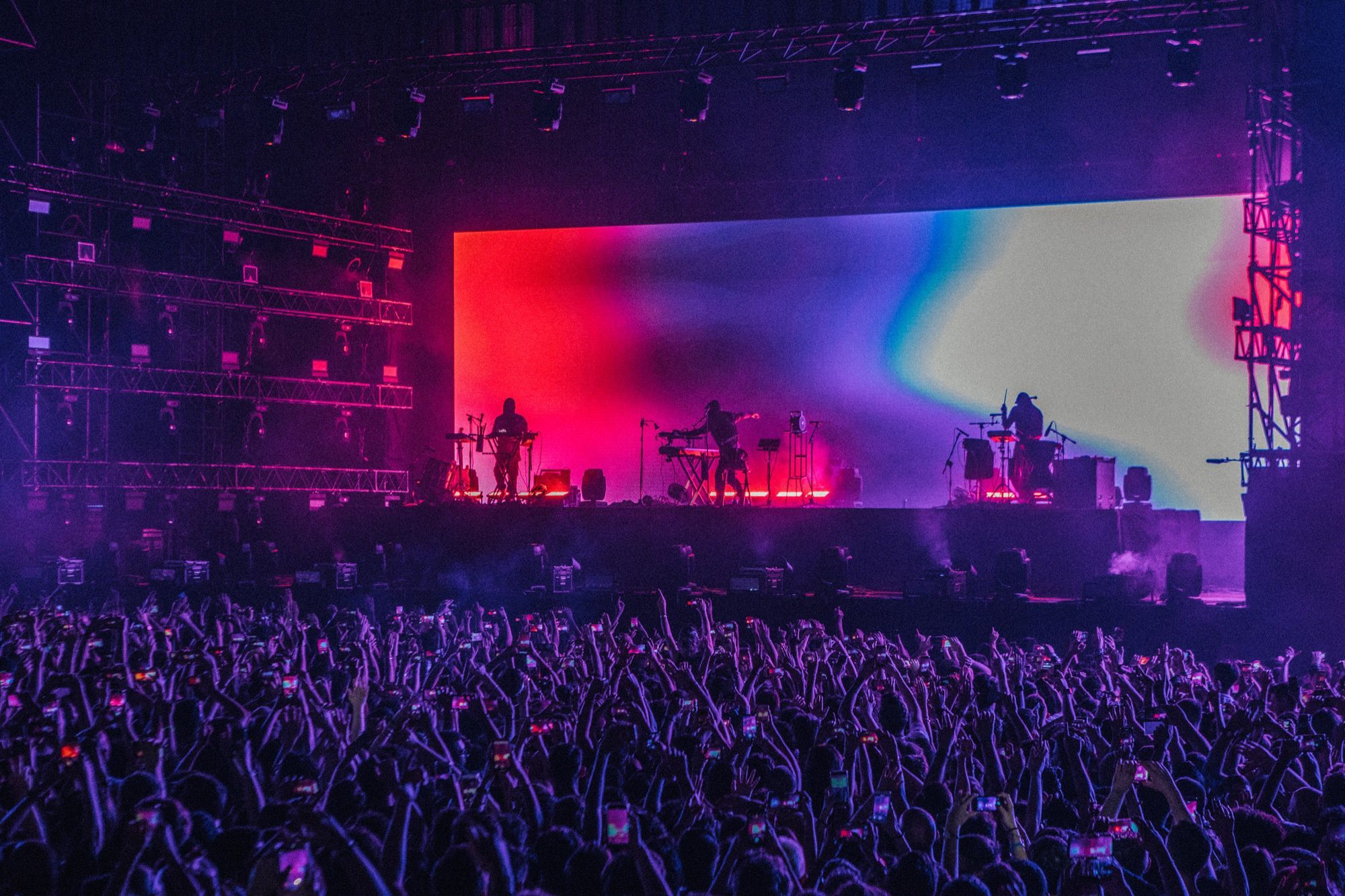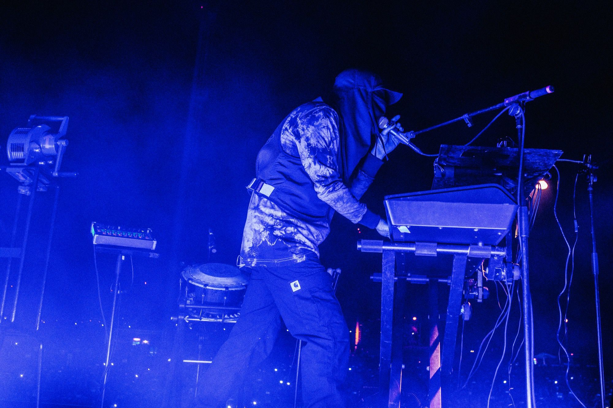 Lo schermo che divide il metaforicamente e fisicamente il pubblico da Liberato rimane lì per tutto il primo pezzo e per TU ME FAJE ASCì PAZZ, anticipato da un ampio intro musicale che viene replicato su tutti i pezzi e regala al live uno spessore diverso. Sugli schermi, uno tra il pubblico e il palco e altri tre attorno, vengono proiettati visual onirici nei quali ci si incanta e perde mentre anche i più romani tra il pubblico ripetono le rime tronche in dialetto napoletano. Le prime note dell'intro di OI MARI' schiudono finalmente la gabbia di schermi, è il momento di comunione fisica tra il pubblico e Liberato, un boato e un mare di telefonini la cui luce cambia al ritmo dei visual sugli schermi realizzati da Quiet Ensemble e Martino Cerati. Liberato invita il pubblico a "Buttàt via chisti cazzo e' telefonì chesta sera ata ballarè", anche lui immagino che si voglia godere l'unico momento di contatto con il pubblico, non filtrato da una pagina Instagram o da un video YouTube.