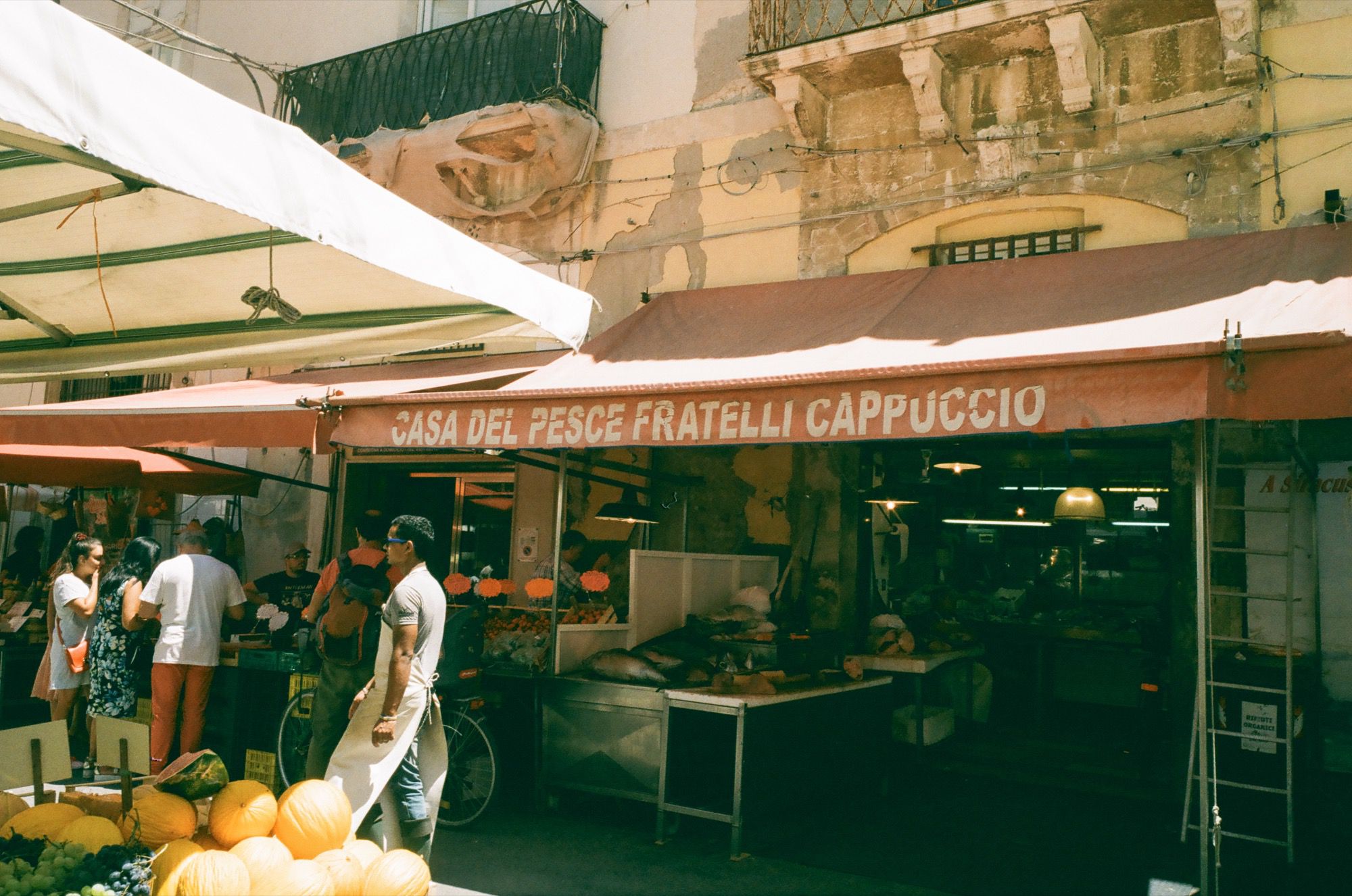Nel dedalo di strade che va a comporre Ortigia, il luogo che più di tutti può vantare un fascino assoluto e senza tempo è il mercato del pesce: volti segnati dal tempo, braccia abbronzate che scaricano la merce, corpi decorati da inchiostro nero, mani esperte tagliano con maestria calamari freschissimi, merluzzi, ostriche e scampi appena pescati.