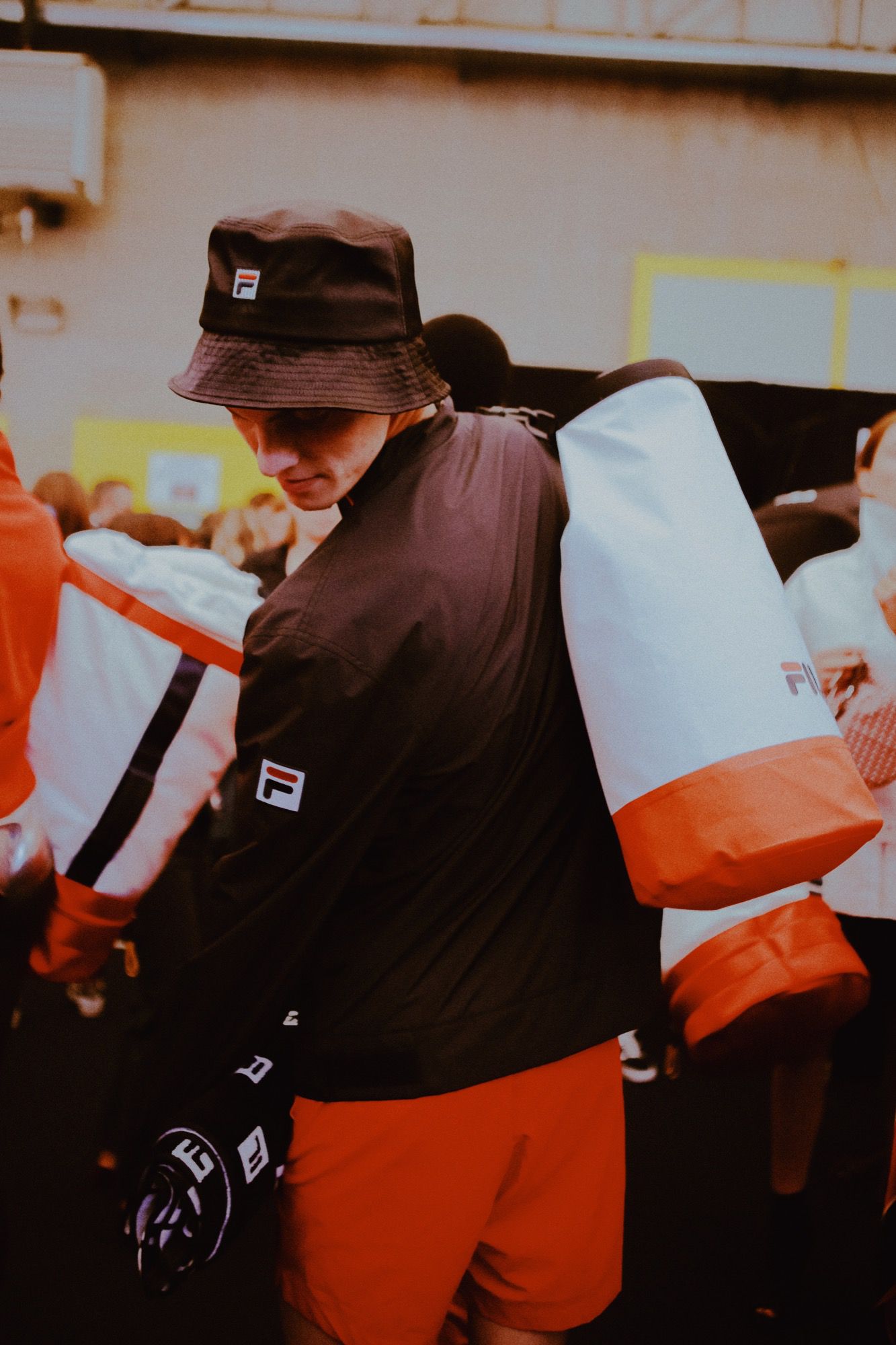 FILA Backstage - Milano Fashion Week S220 Giacche doppiopetto e borsoni da palestra nella nuova collezione di FILA