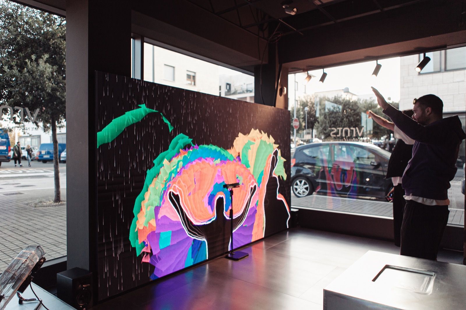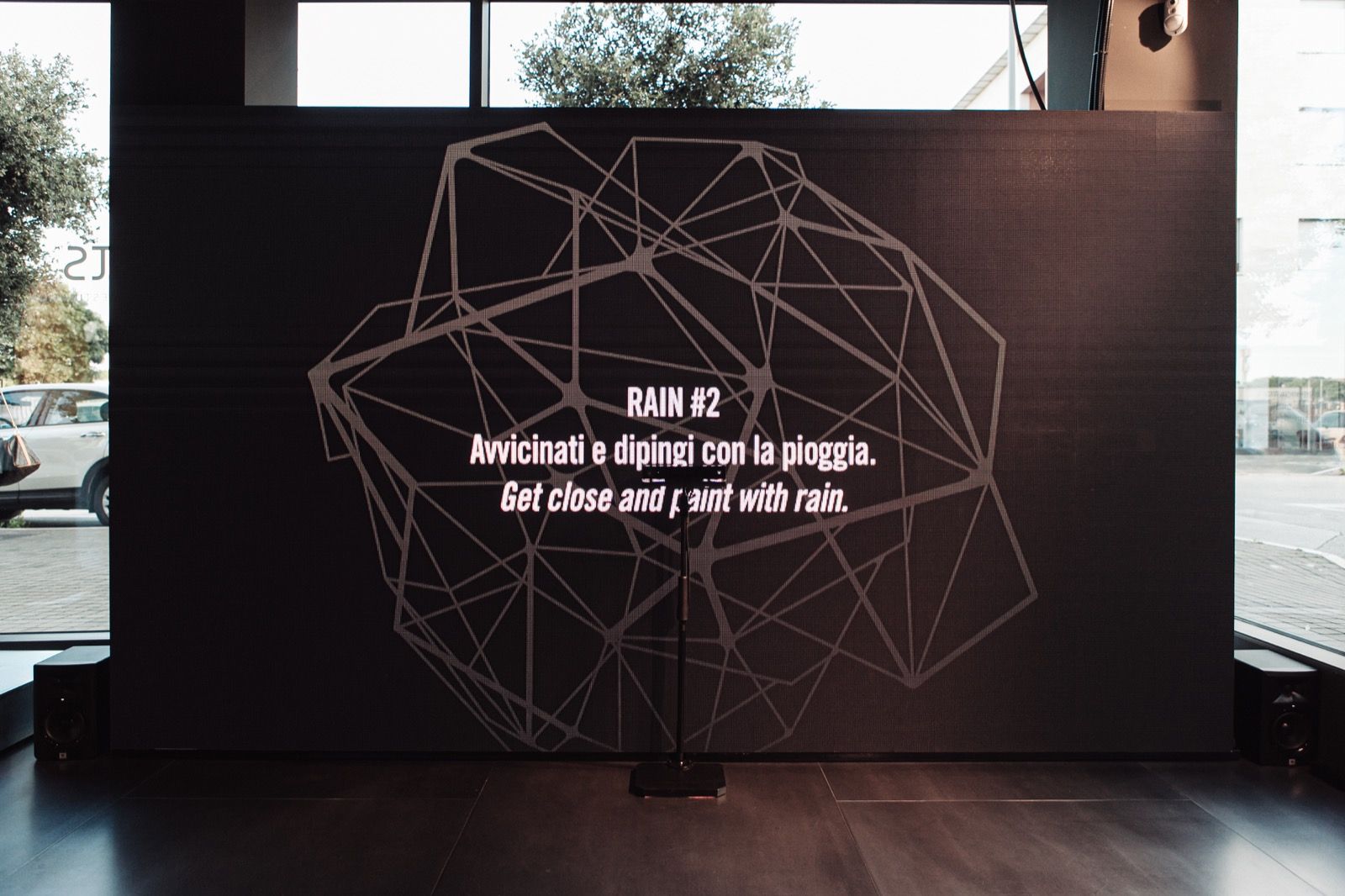 Si tratta di un'installazione video realizzata dall'artista Paolo Scoppola che insieme all’agenzia creativa Pescerosso ha tradotto il claim di GORE-TEX Every day is a perfect day, in Meteomorphosis, “un’esperienza visiva e sensoriale mirata a rendere tangibili le caratteristiche ineguagliabili di GORE-TEX: impermeabilità, traspirabilità e protezione dall’aria, riprodotte graficamente su due megaschermi che illustrano le differenti condizioni climatiche che ognuno di noi affronta quotidianamente”. Ad accompagnare l'installazione ci ha pensato Maurizio Tentella con una selezione di prodotti locali marchigiani secondo il gusto raffinato e italianissimo di SPACEDELICIOUS.