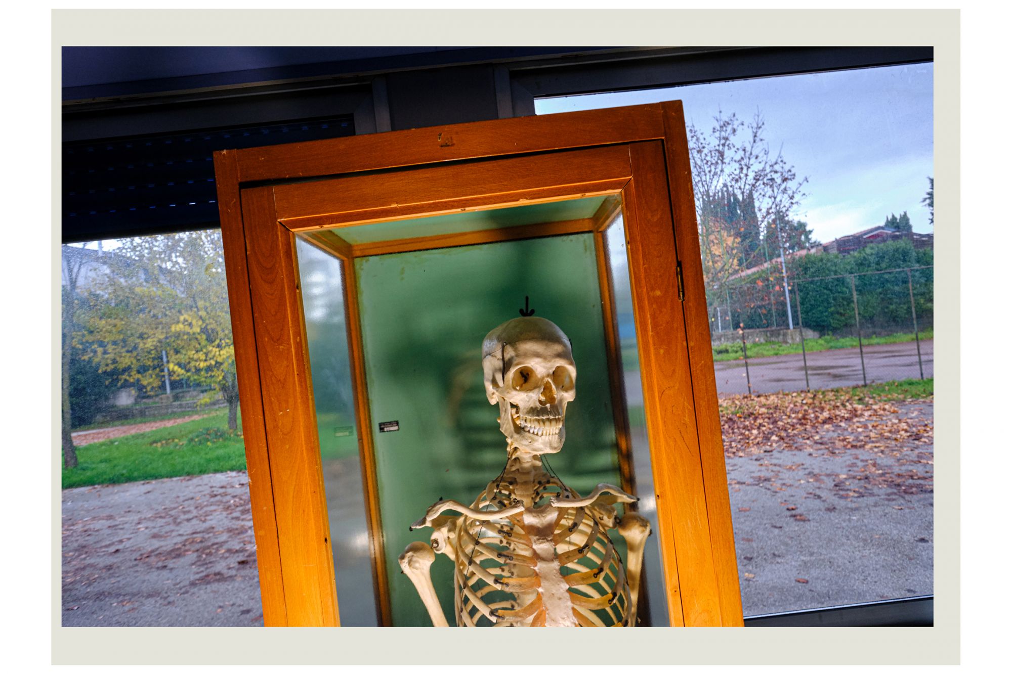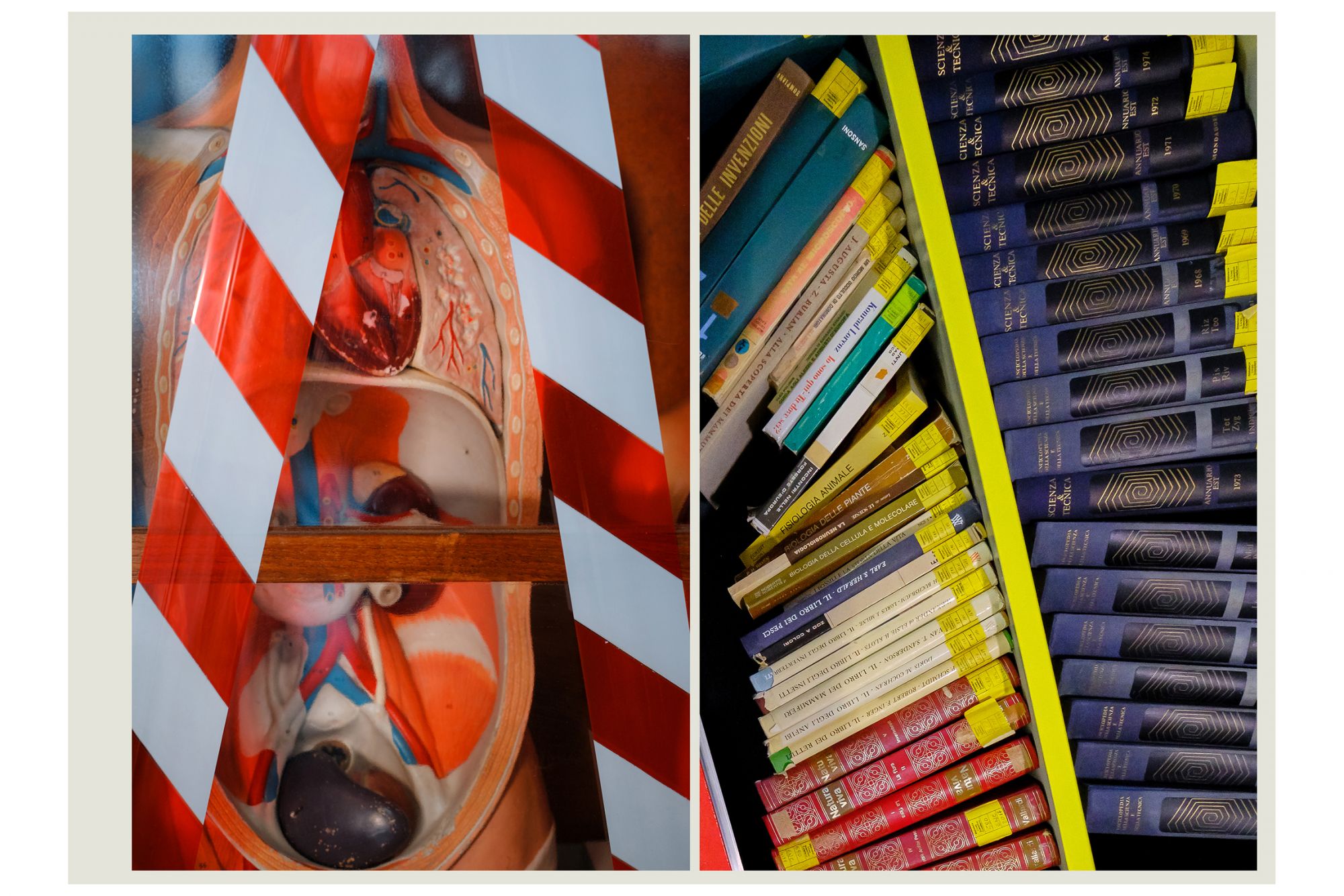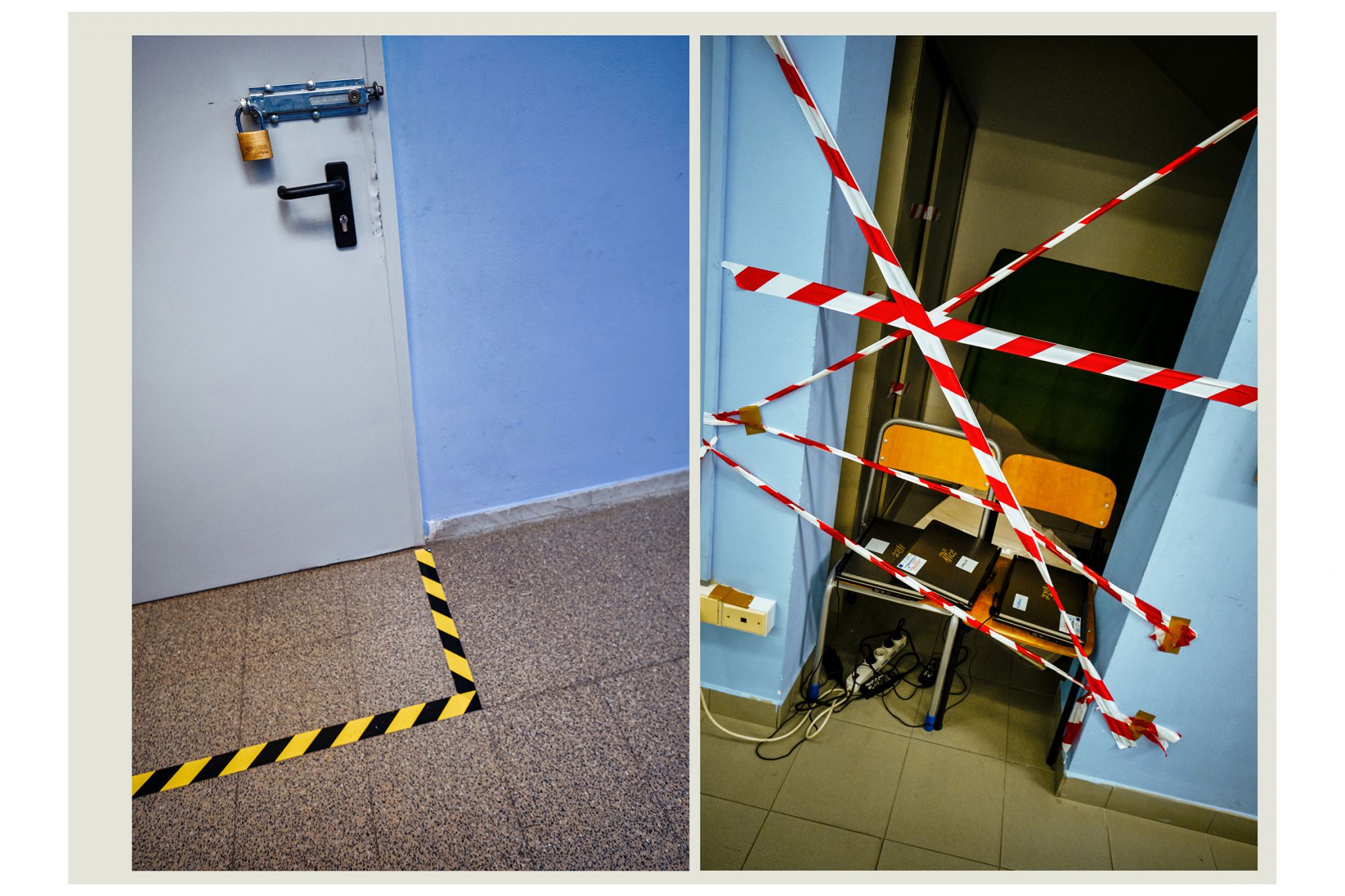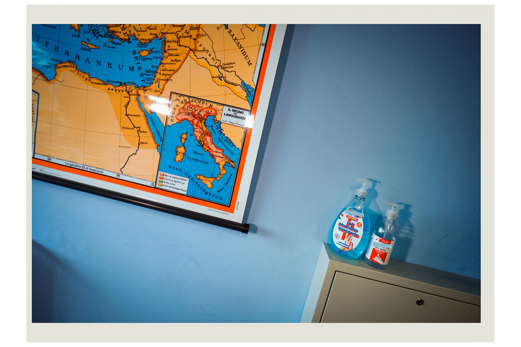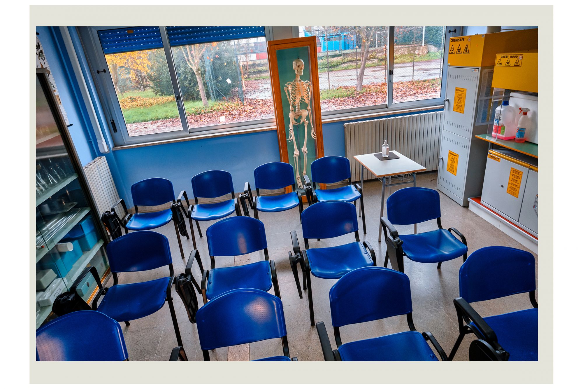 Nella storia dell’arte, fu Edward Hopper a raccontare la solitudine delle grandi metropoli con i suoi quadri, utilizzando in maniera rivoluzionaria lo spazio negativo per raccontare il silenzio e l’assenza. Un’operazione simile a quella compiuta da Luca Giorietto, fotografo della provincia di Roma che ha ritratto le aule e gli androni vuoti del Liceo Guglielmo Marconi di Colleferro, in provincia di Roma, per descrivere macroscopicamente il senso collettivo di inquietudine e confusione che l’Italia ha provato durante il lockdown attraverso una serie di dettagli microscopici: nastri biancorossi che delimitano brutalmente gli spazi prima accessibili, le distanze forzate, aule vuote in cui modelli anatomici e scheletri di plastica sembrano inquietanti memento mori e, da nessuna parte, la presenza umana. Ad accompagnare gli scatti, le parole della cantautrice e scrittrice Etna, nome d’arte di Alessandra Perna, che dice: