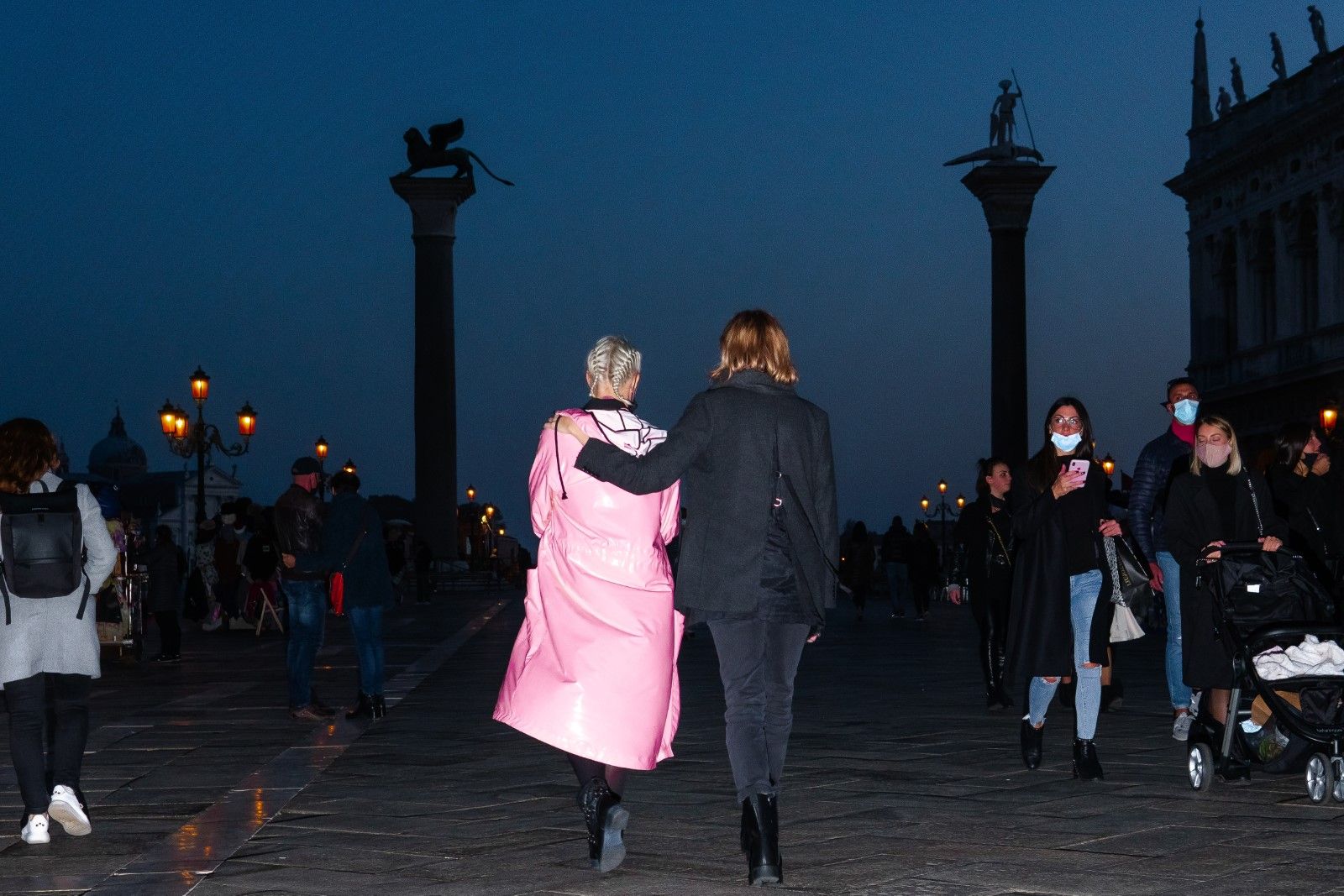 Caffè in piazza San Marco e cigni sul Lido, cortei anti-razzisti a Mestre e mani guantate di lattice in vaporetto – la paura, il disorientamento ma anche l’irresistibile spinta verso la vita. Sono questi i soggetti del racconto fotografico di Eric Scaggiante raccolto nella zine VE2020, creata in collaborazione con l’artista digitale Davide Fossati a.k.a. Abraxas, che ne ha firmato la cover, e impaginata da Marco Cavazzin dello studio creativo Acido Lattico Venezia. Il lockdown raccontato da Eric Scaggiante a.k.a. eric.persona, che ha 21 anni, non perde nulla della sua drammatica attualità ma si colora di eccesso e stravaganza raccontando prima di tutto la vita quotidiana a Venezia e nell’area del suo comune. Nell’introduzione della sua zine Scaggiante racconta:
